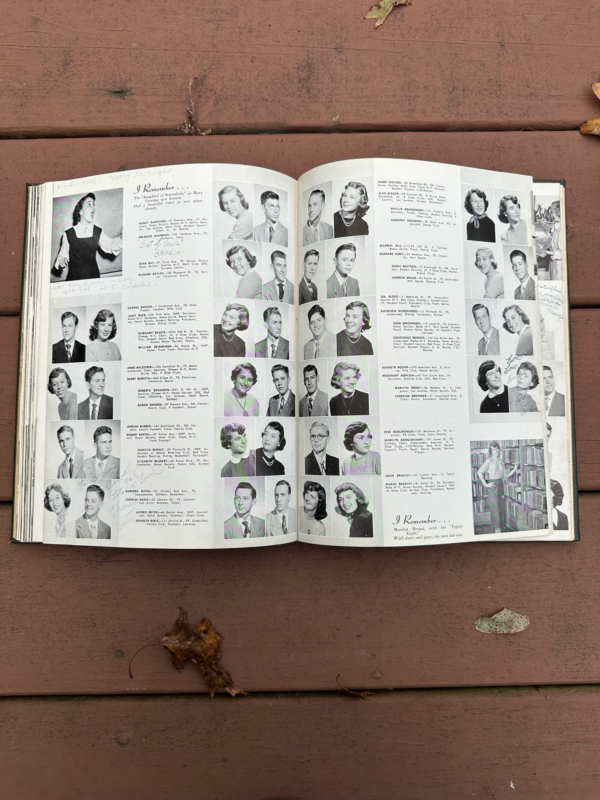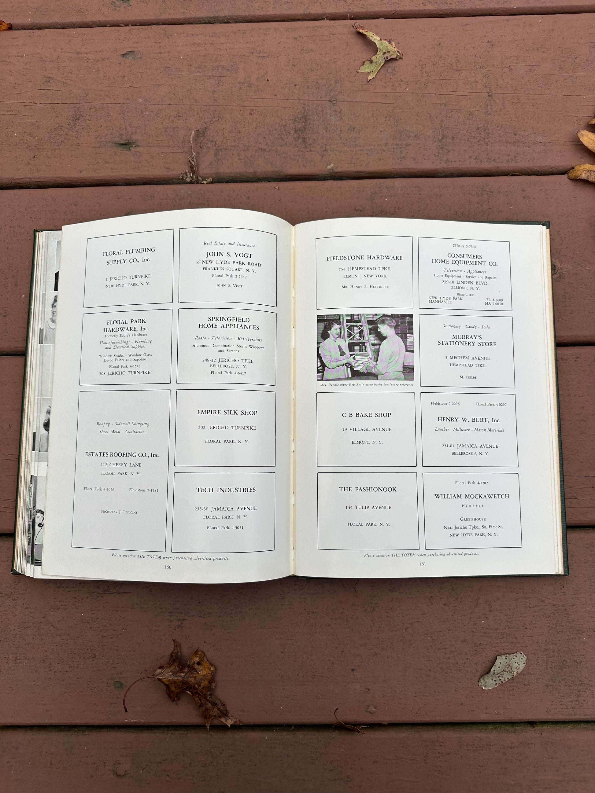 Contains personal inscriptions throughout. Back of yearbook includes ads for local businesses.