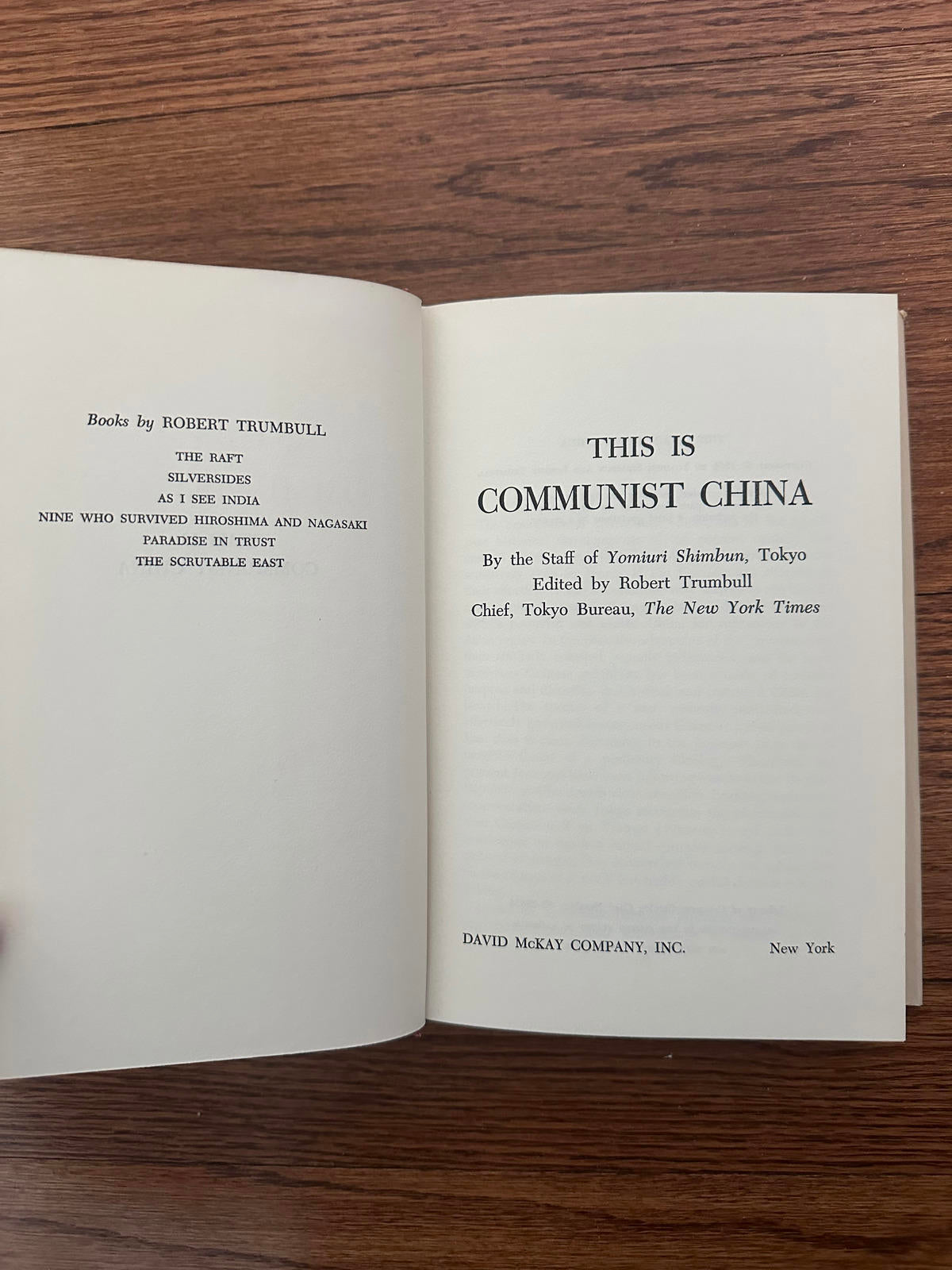 "This is Communist China" by the staff of Yomiuri Shimbun, Tokyo. Edited by Robert Trumbull, Chief, Tokyo Bureau, The New York Times.