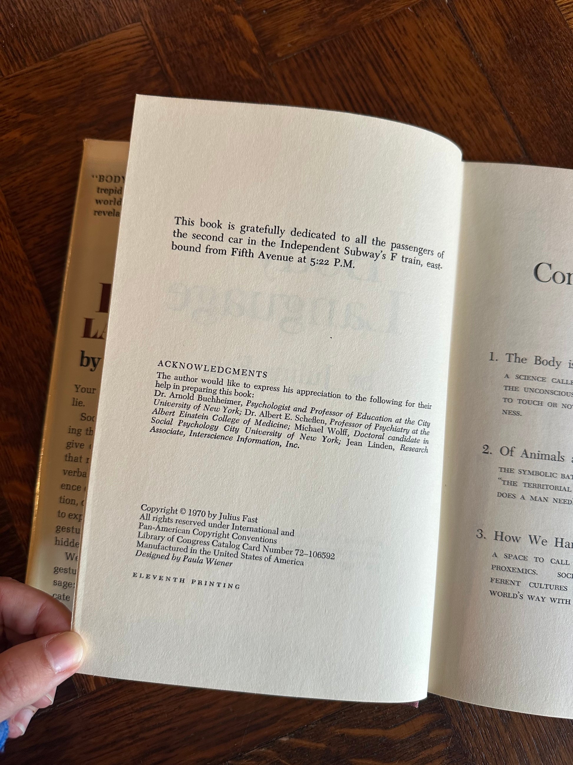 1970 Body Language by Julius Fast Hardcover Book with Dust Jacket