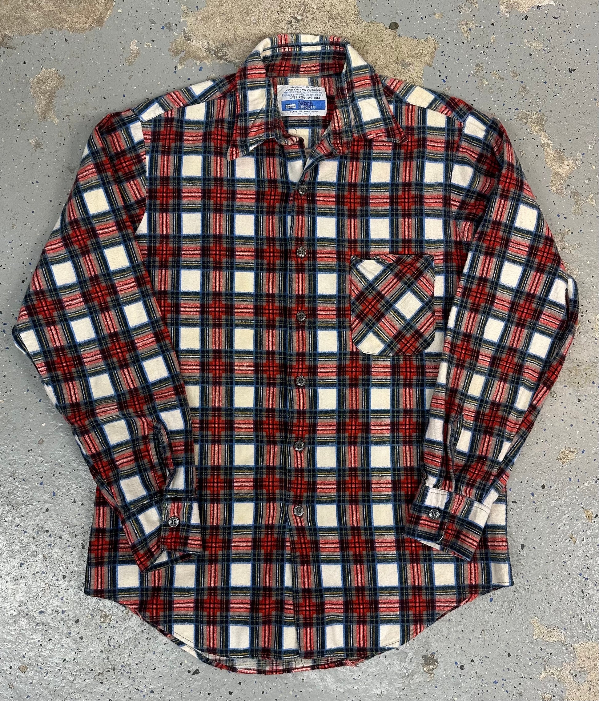 1970s 1980s Sears Work Leisure Plaid Cotton Flannel Shirt