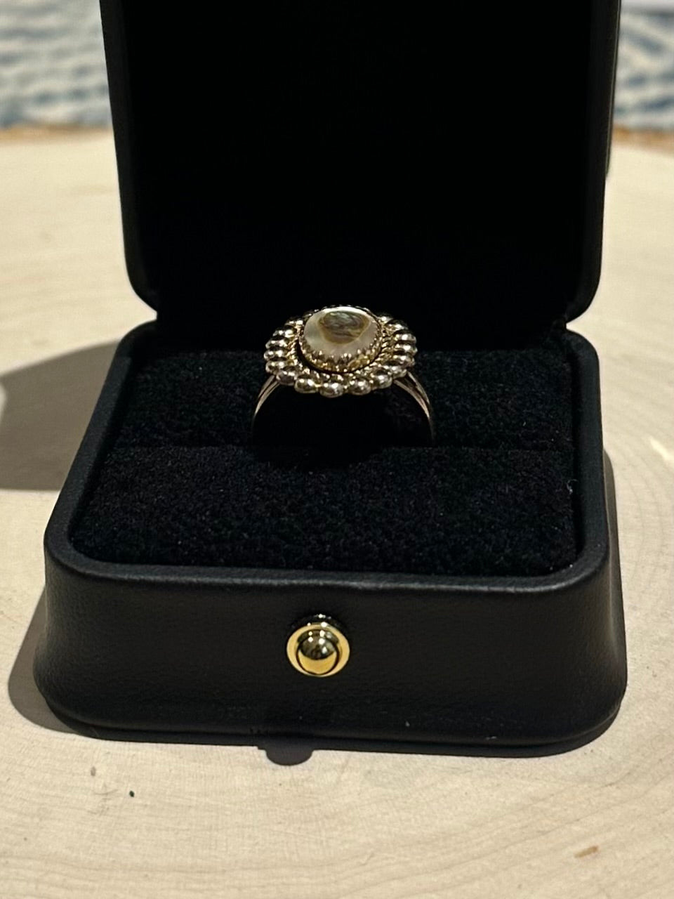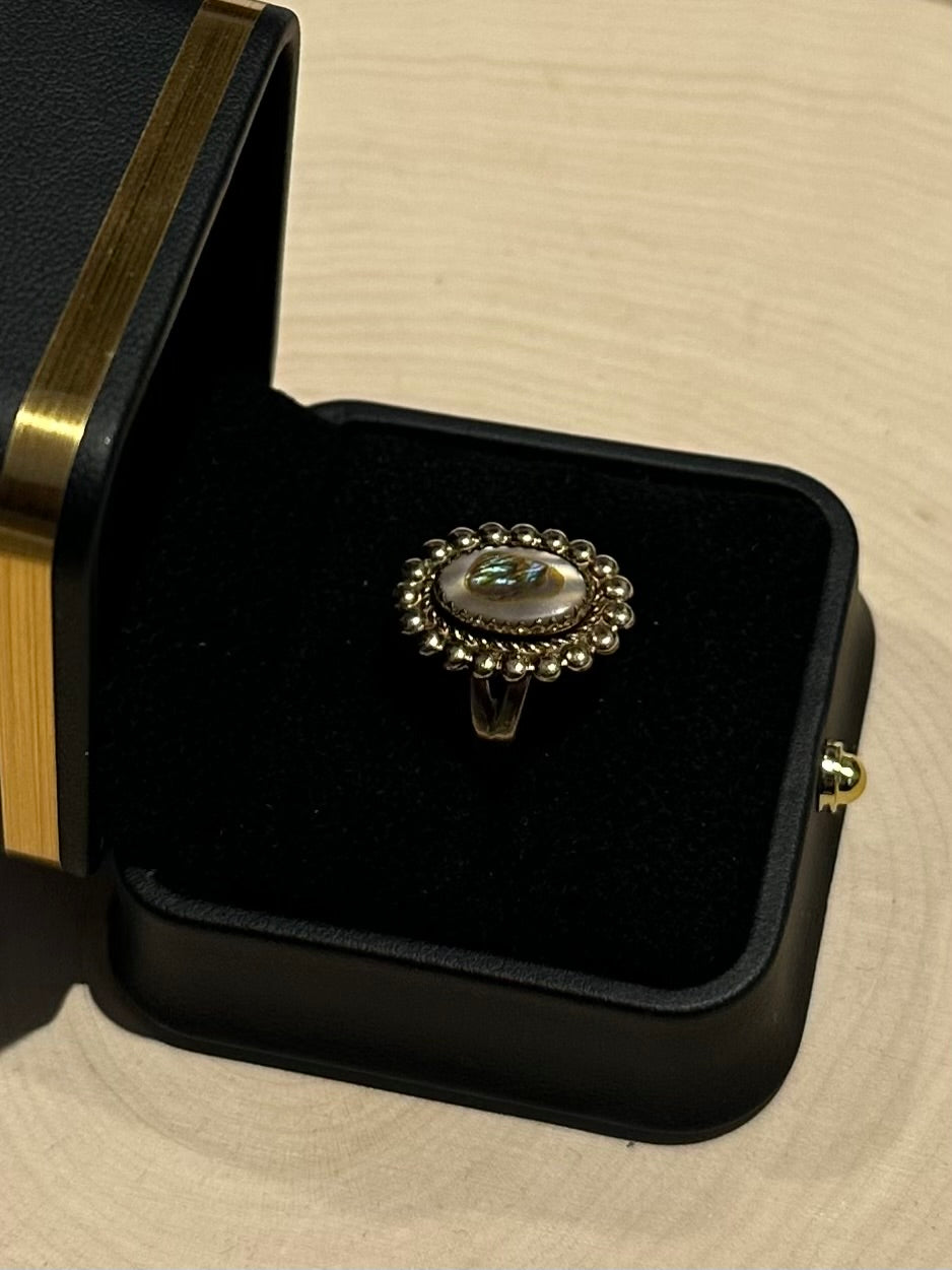 Beautiful 12k gold filled ring with a bezel set abalone shell.