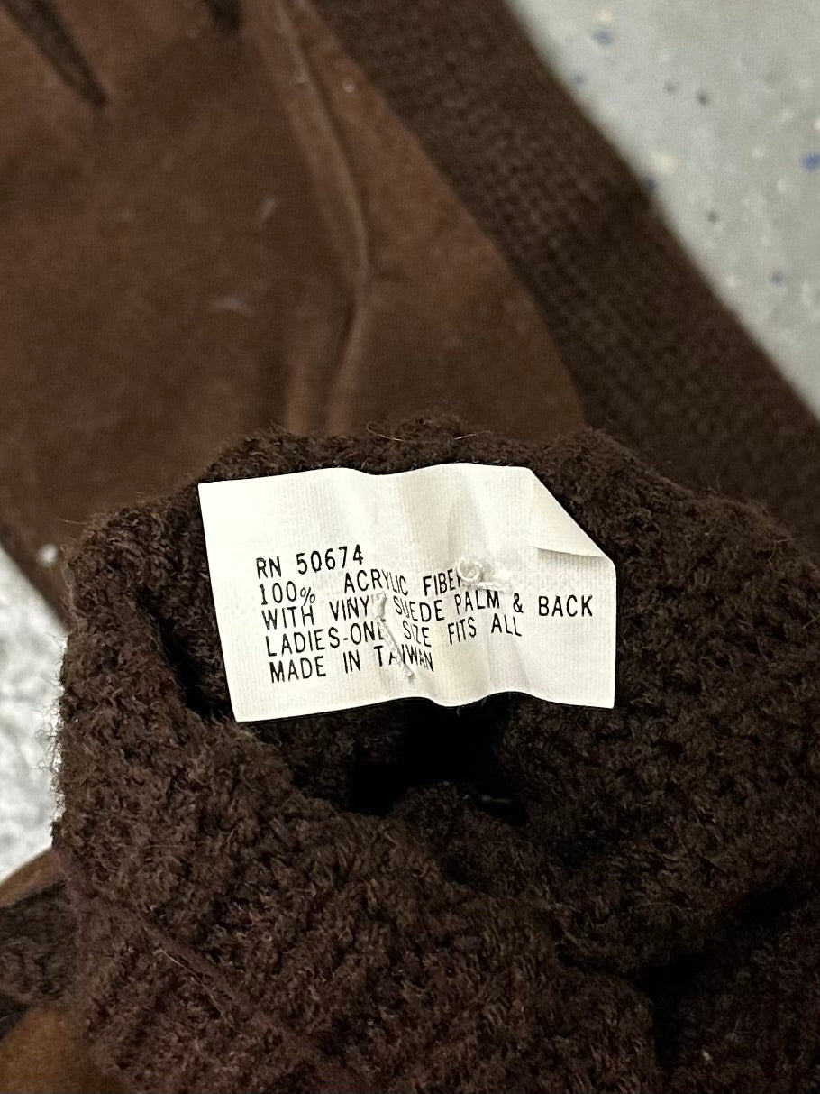 1980s Ladies Brown Acrylic & Vinyl Suede Gloves