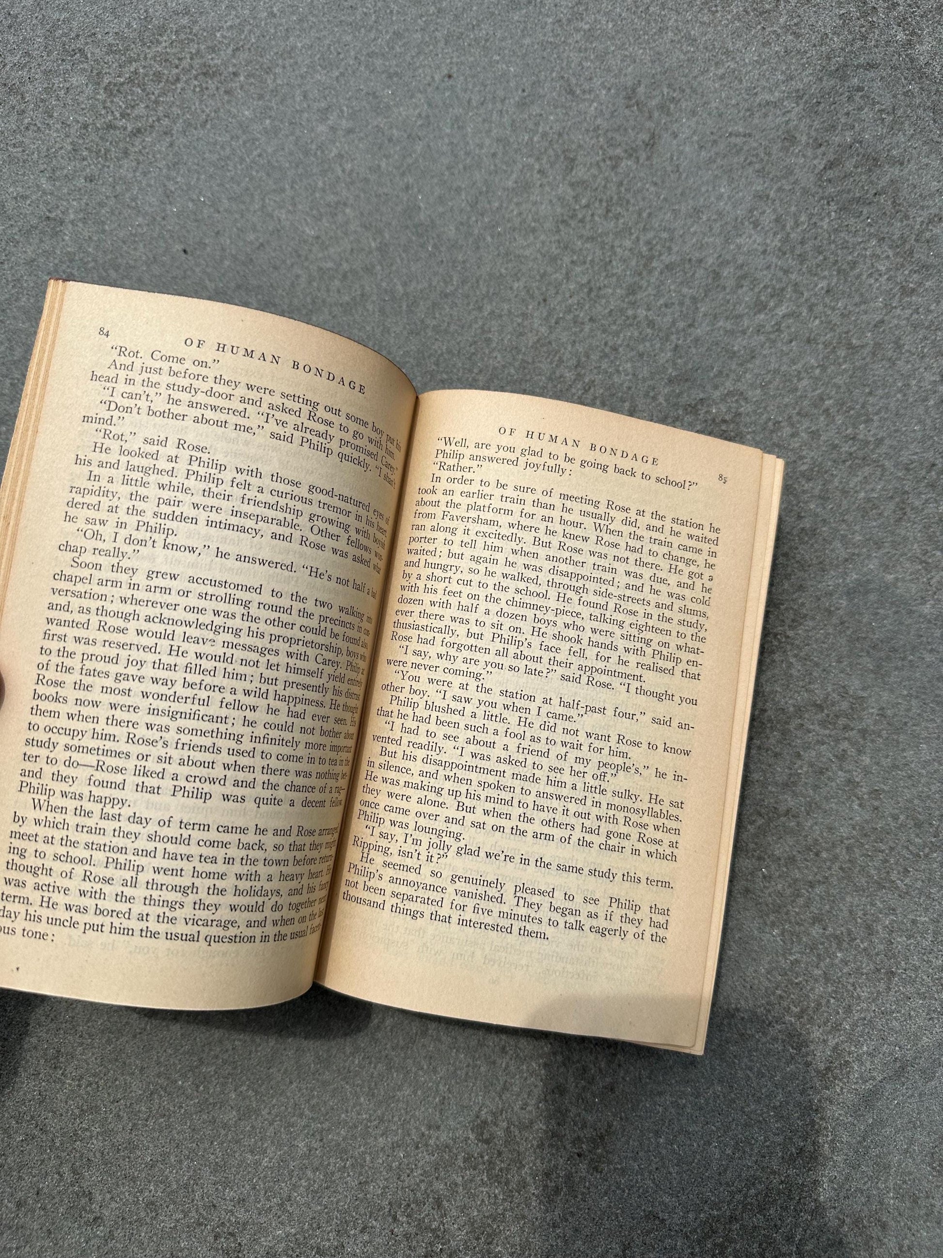 Of Human Bondage is a 1915 novel by W. Somerset Maugham that follows the life of a young man named Philip Carey as he navigates love, art, and the struggles of finding his purpose in life. The novel is generally agreed to be Maugham's masterpiece and to be strongly autobiographical in nature.