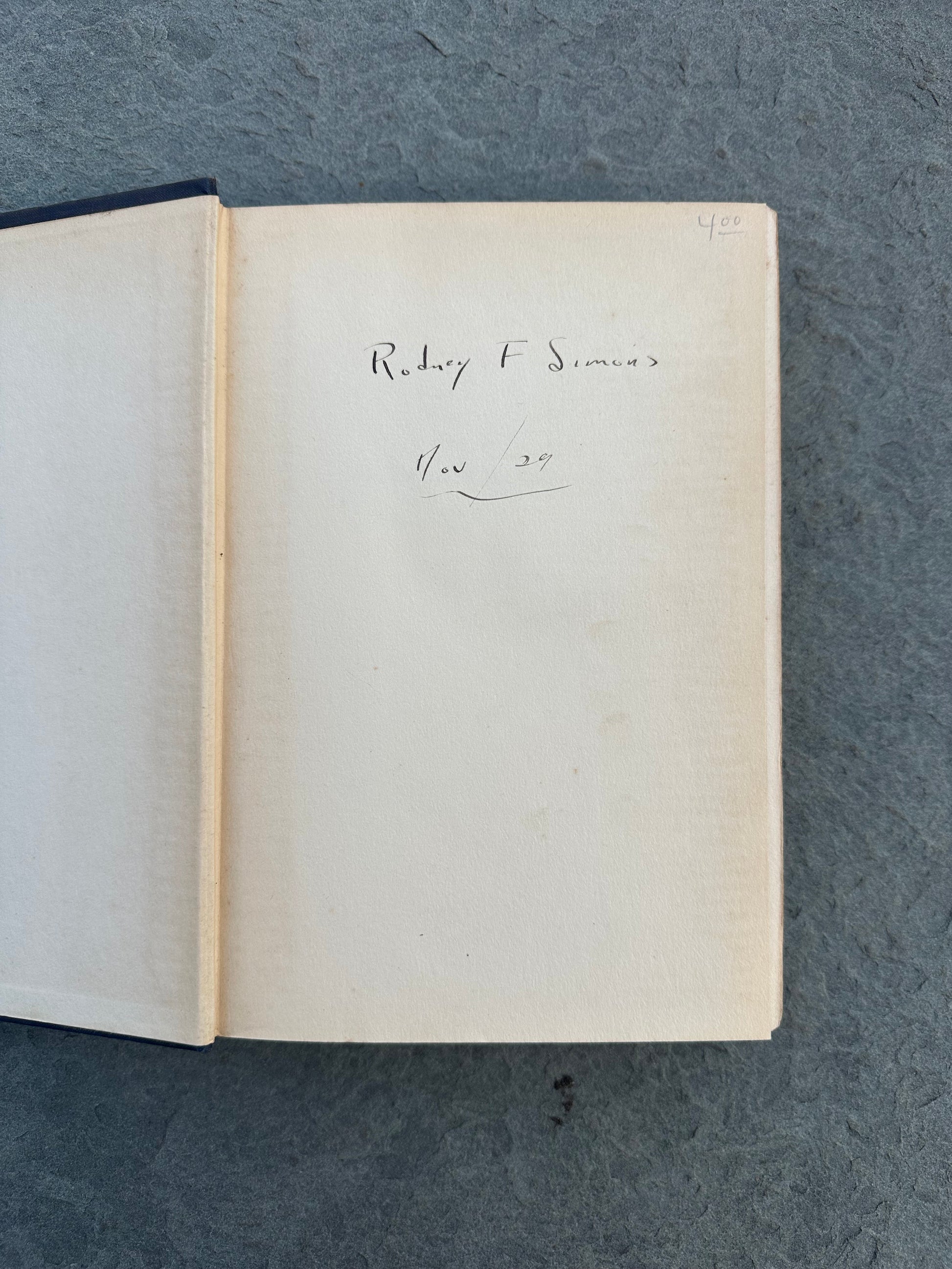Inscribed "Rodney F Simons, Nov / 29"