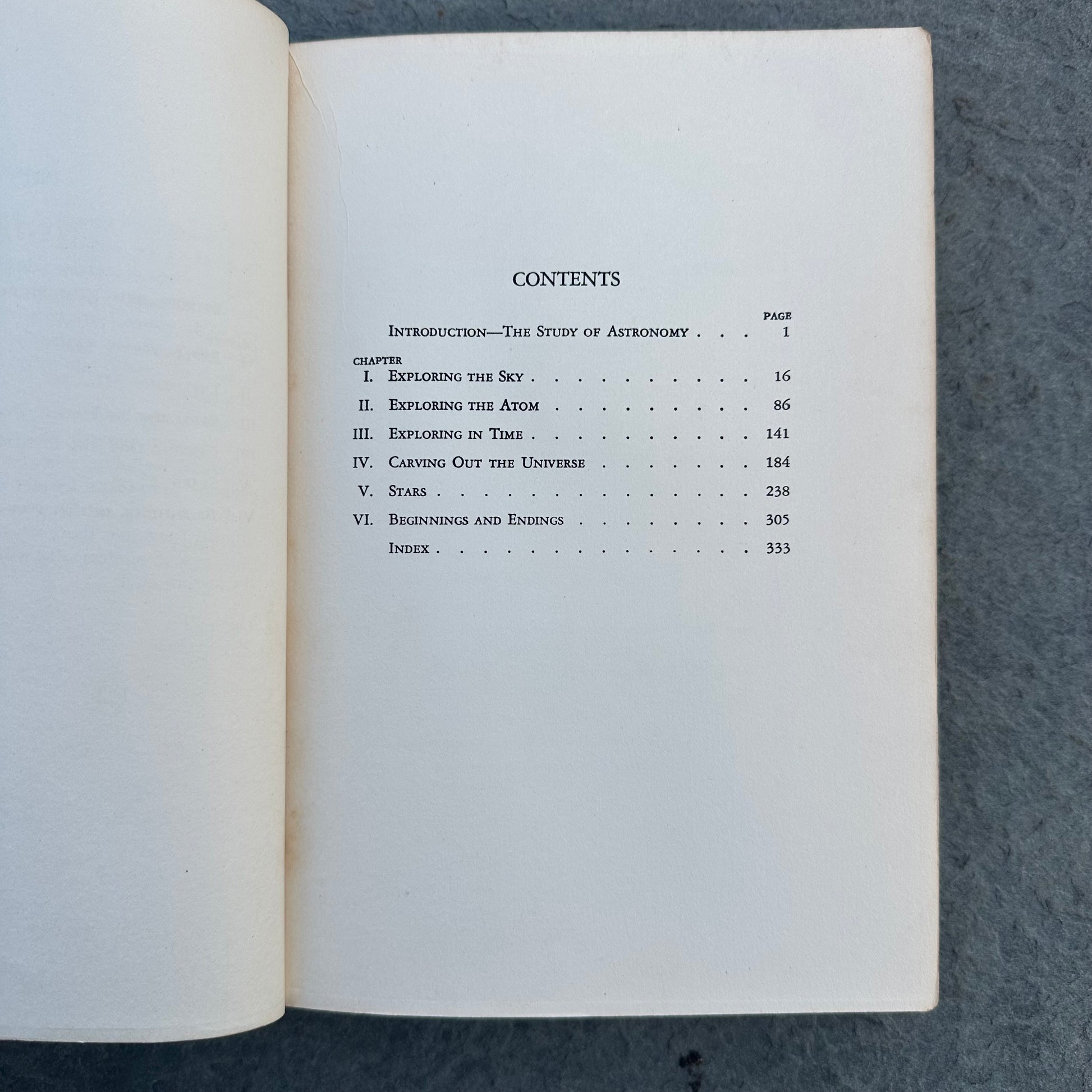 Contents include: Introduction - The Study of Astronomy, Exploring the Sky, Exploring the Atom, Carving Out the Universe, Stars, & Beginning and Endings.