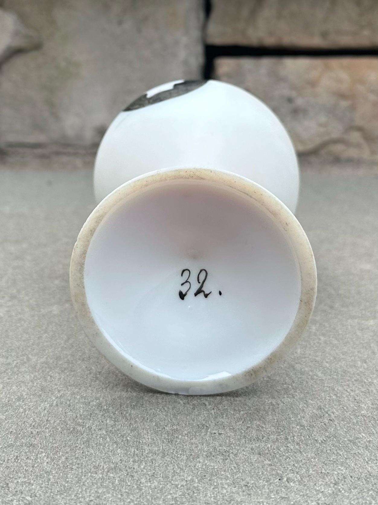 This exquisite antique night service bottle, also known as a “bonne nuit” bottle, is crafted from luxurious white opaline glass.