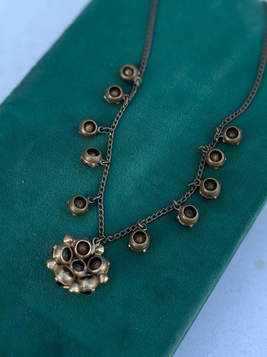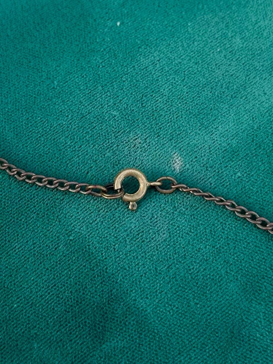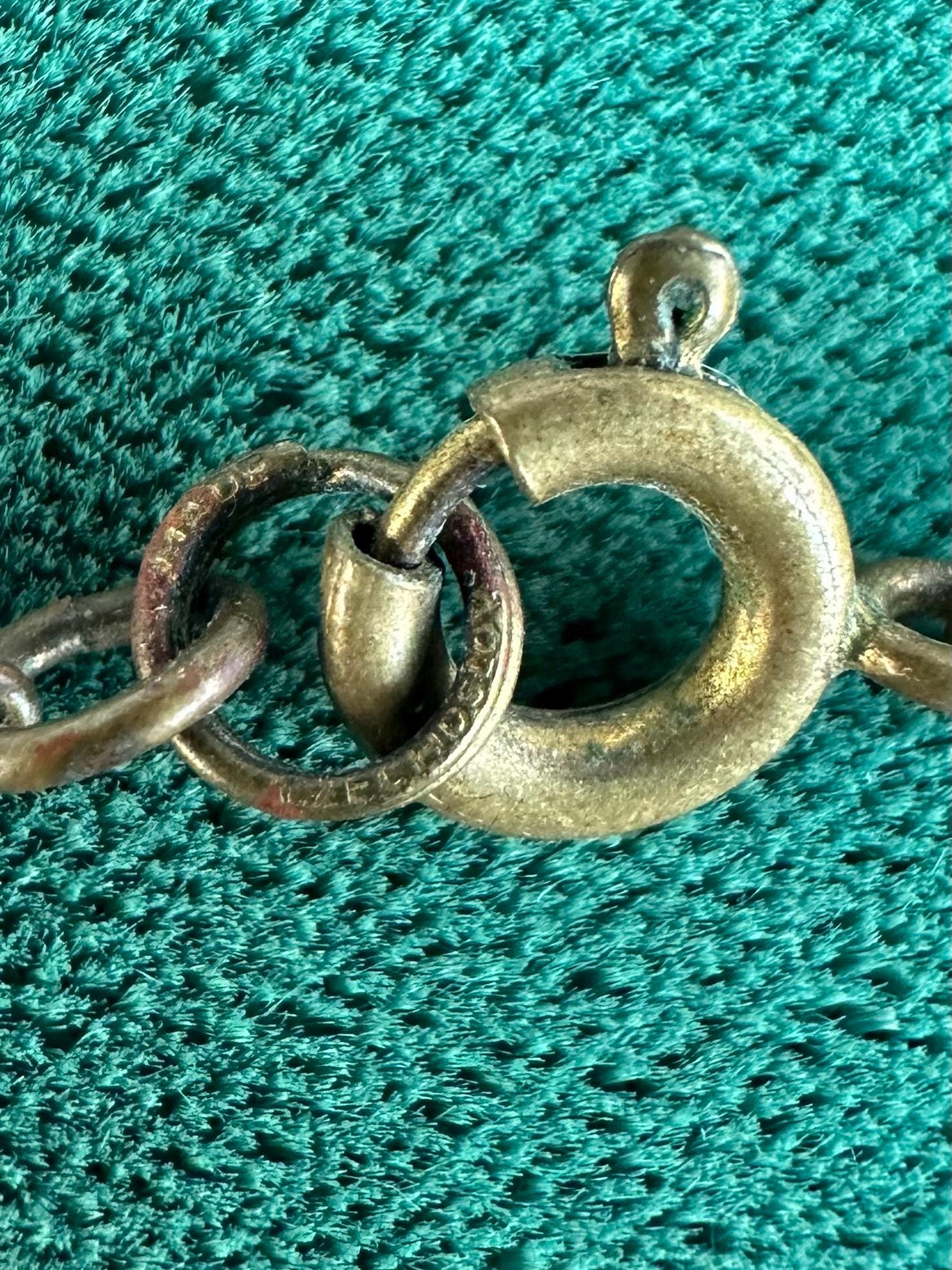 Circa 1930s, possibly earlier. Clasp of chain is stamped “MADE IN CZECHOSLOVAKIA”.
