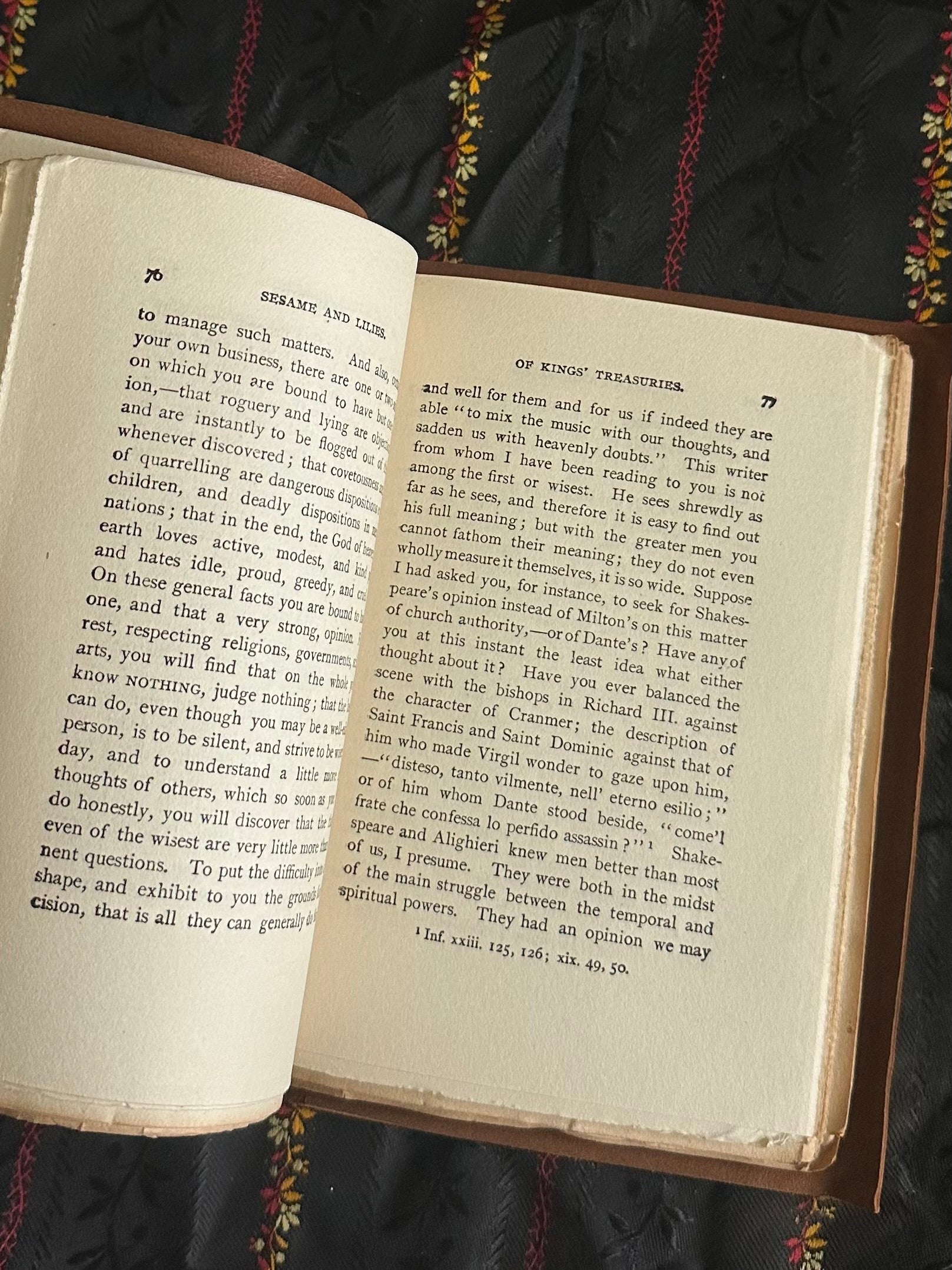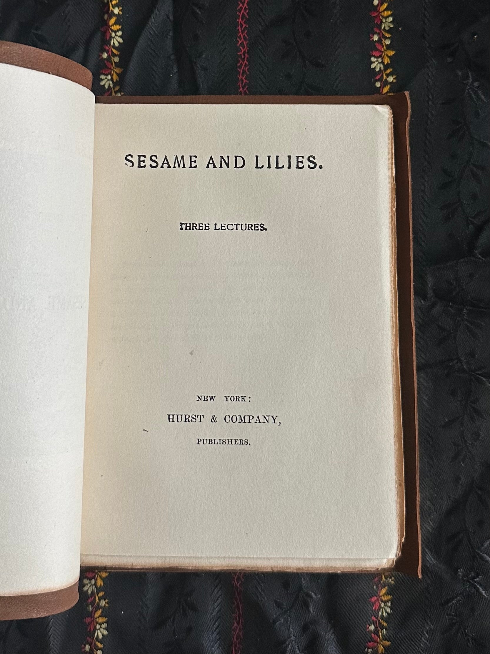 Antique Early 1900s Sesame and Lilies Ooze Calf Leather Bound Book