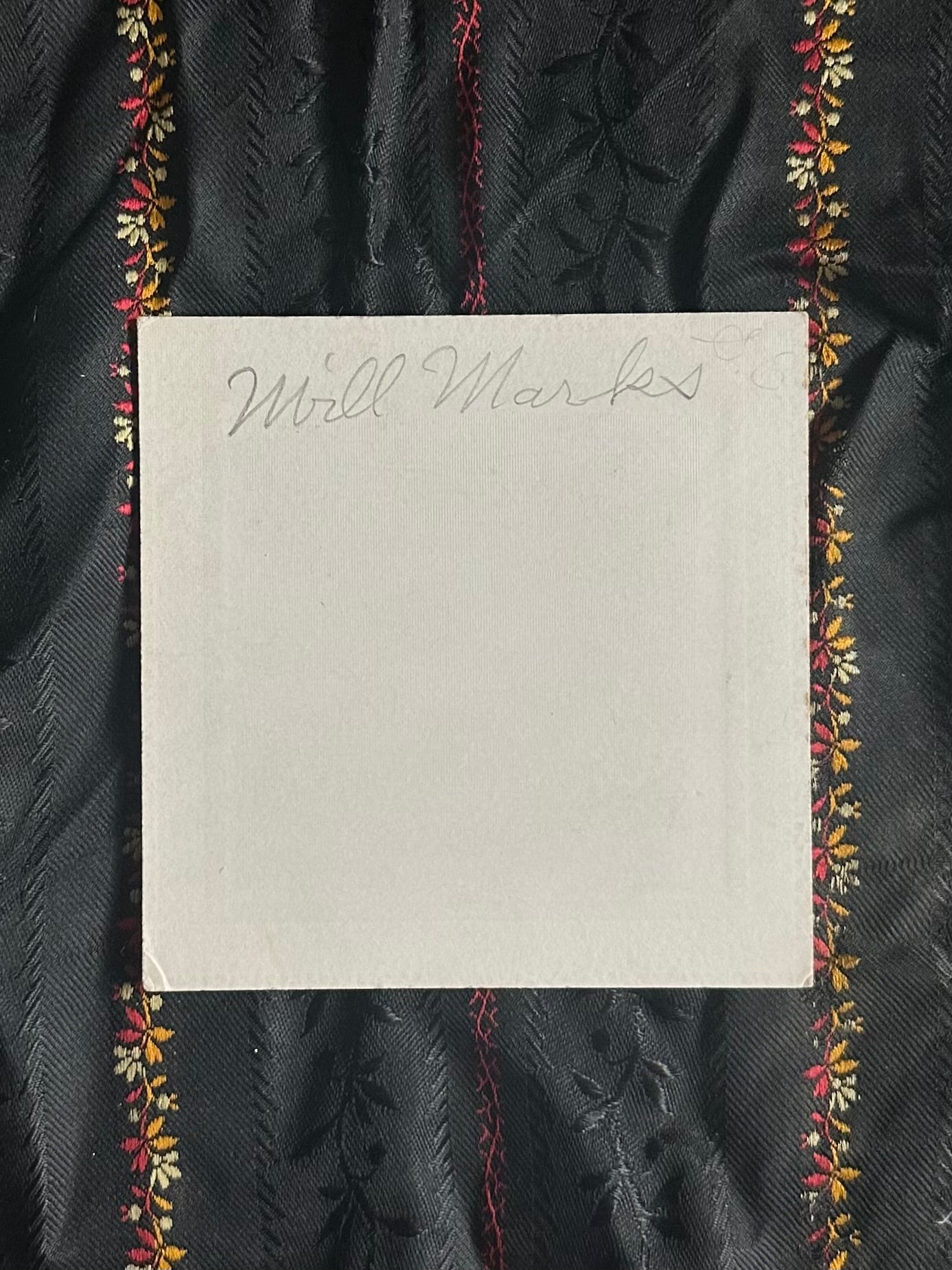 Portrait photo of a young aged man in period garb, possibly a student. Backside of card is inscribed "Will Marks" in pencil.