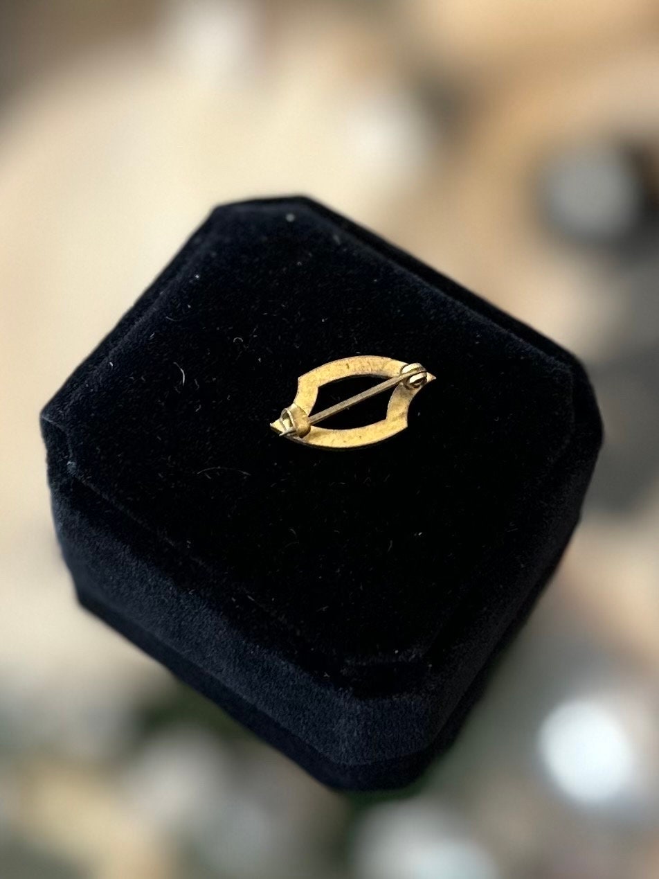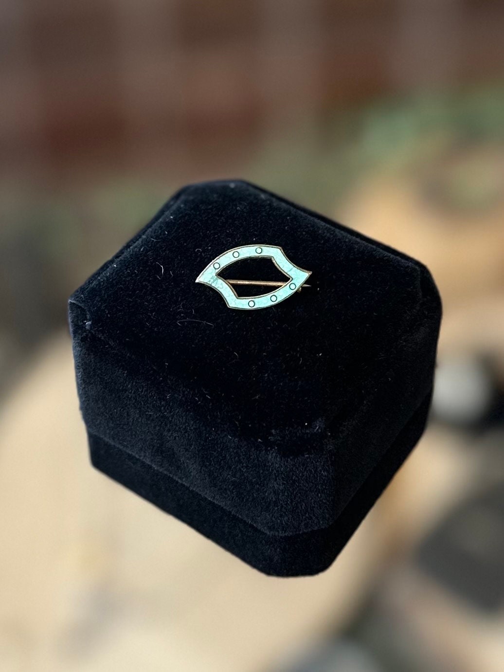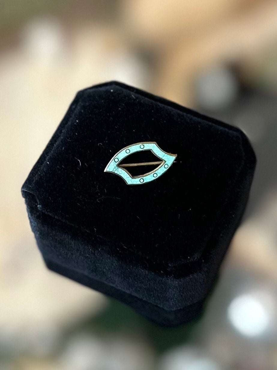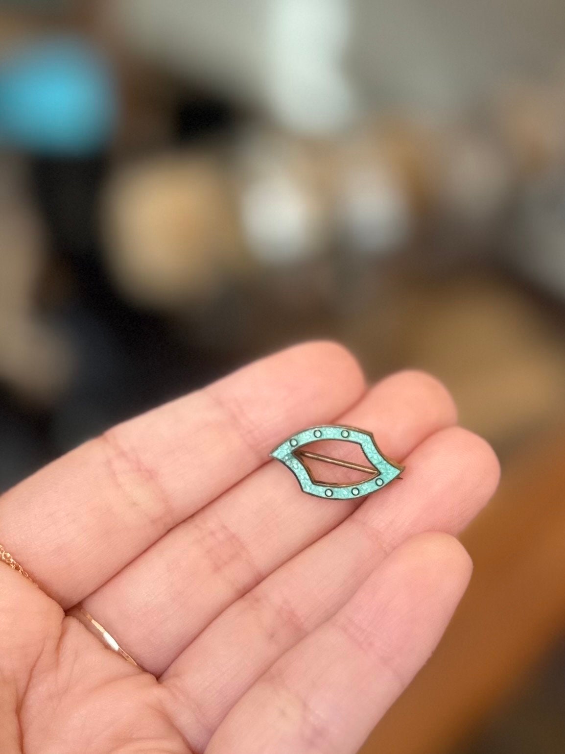 Antique Edwardian Teal Guilloche Enamel & Brass Mini Pin