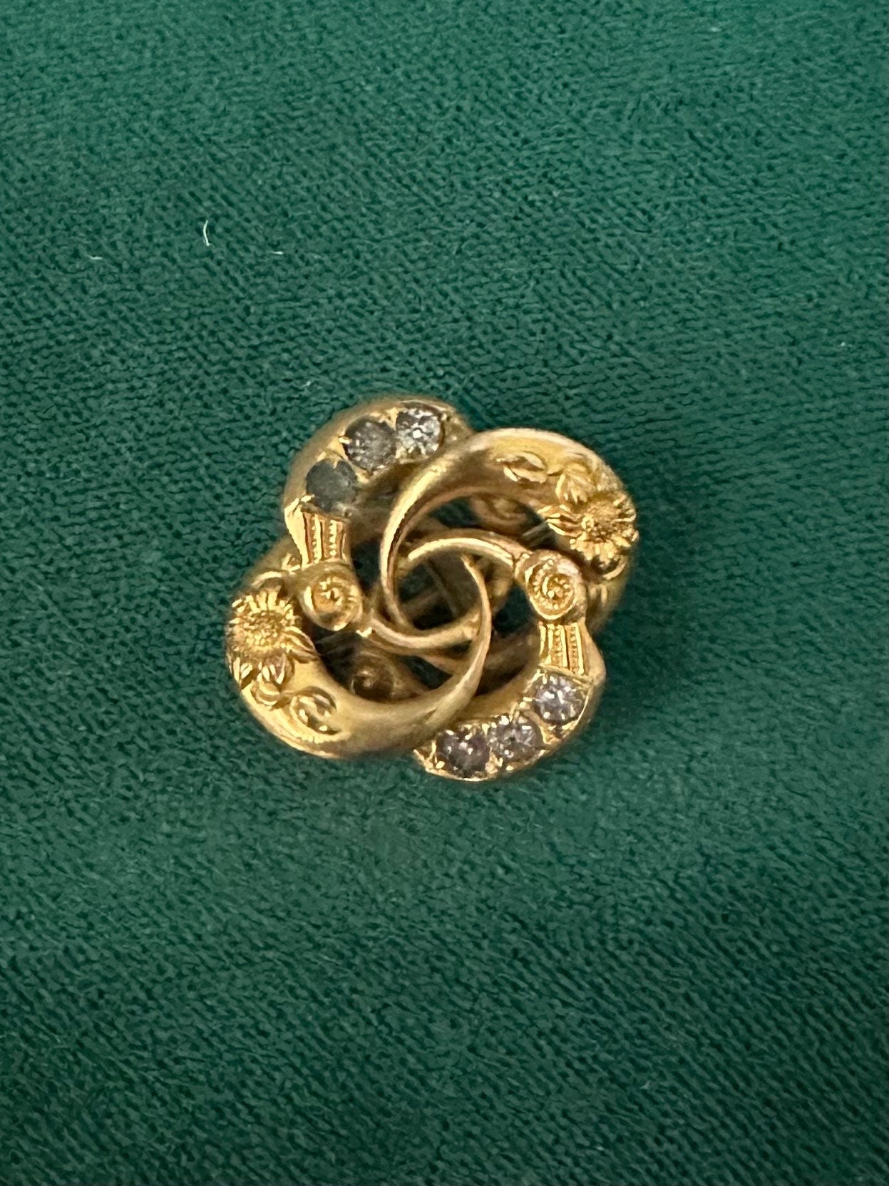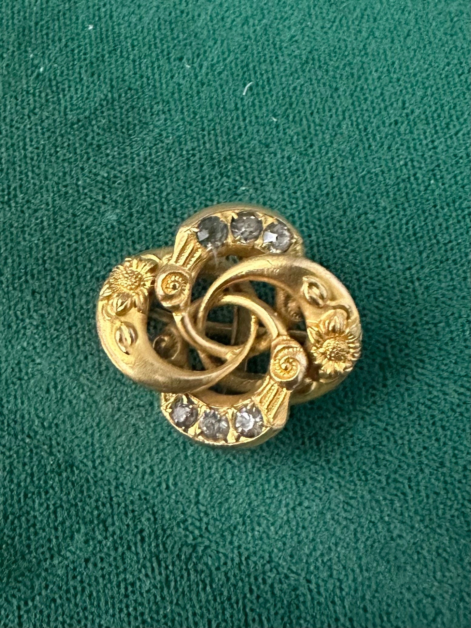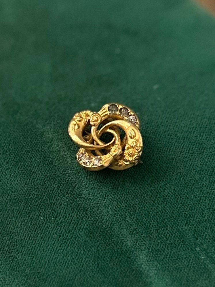 Antique Victorian Gold Tone Rhinestone Floral Love Knot Pin