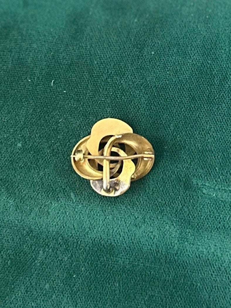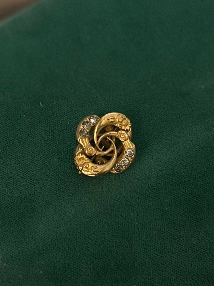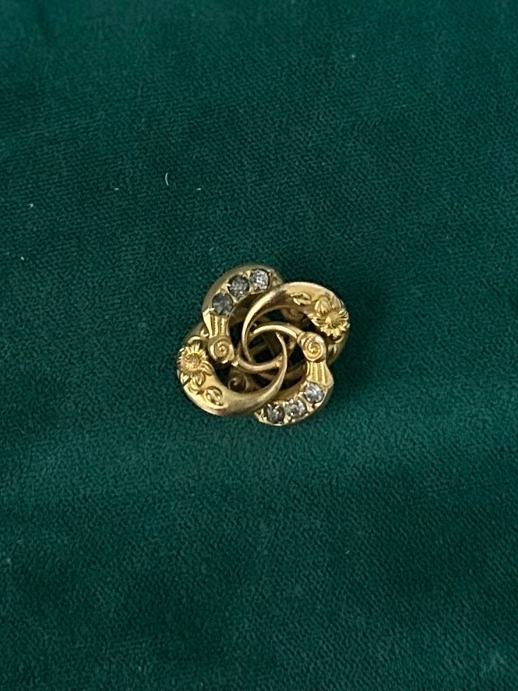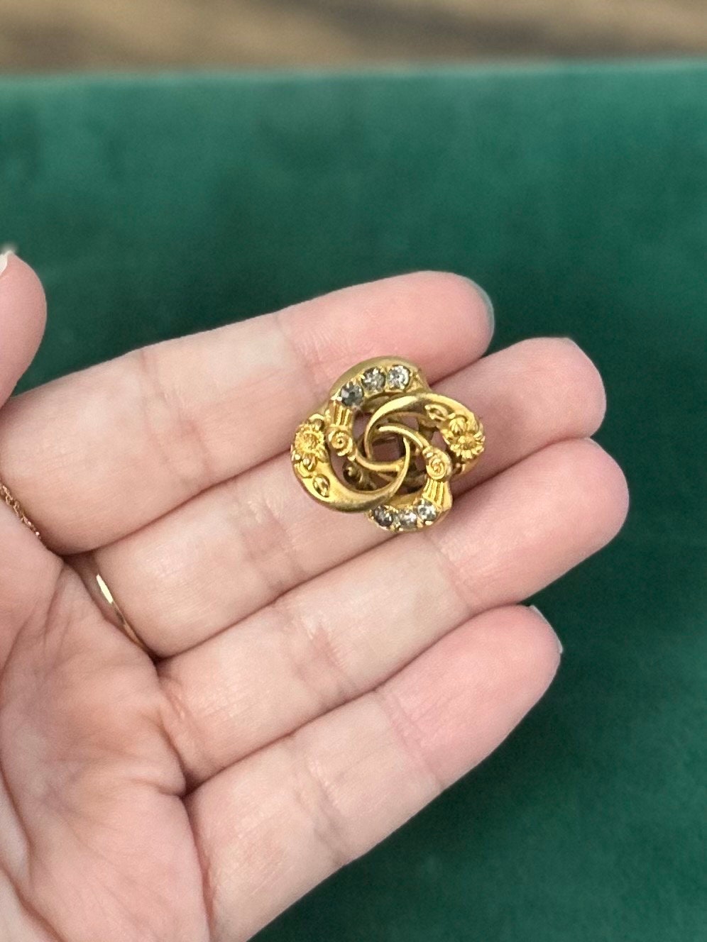 Antique Victorian Gold Tone Rhinestone Floral Love Knot Pin