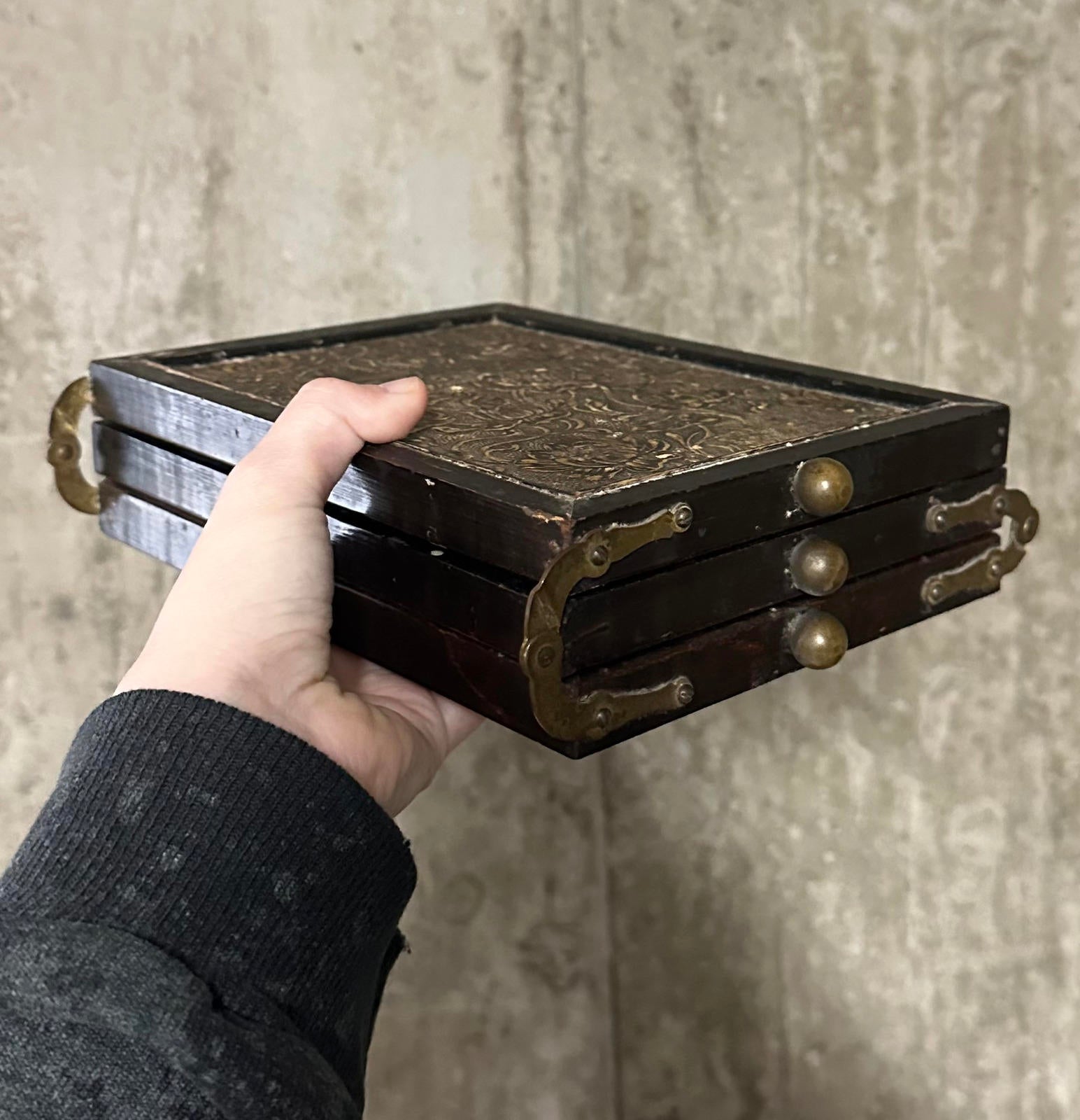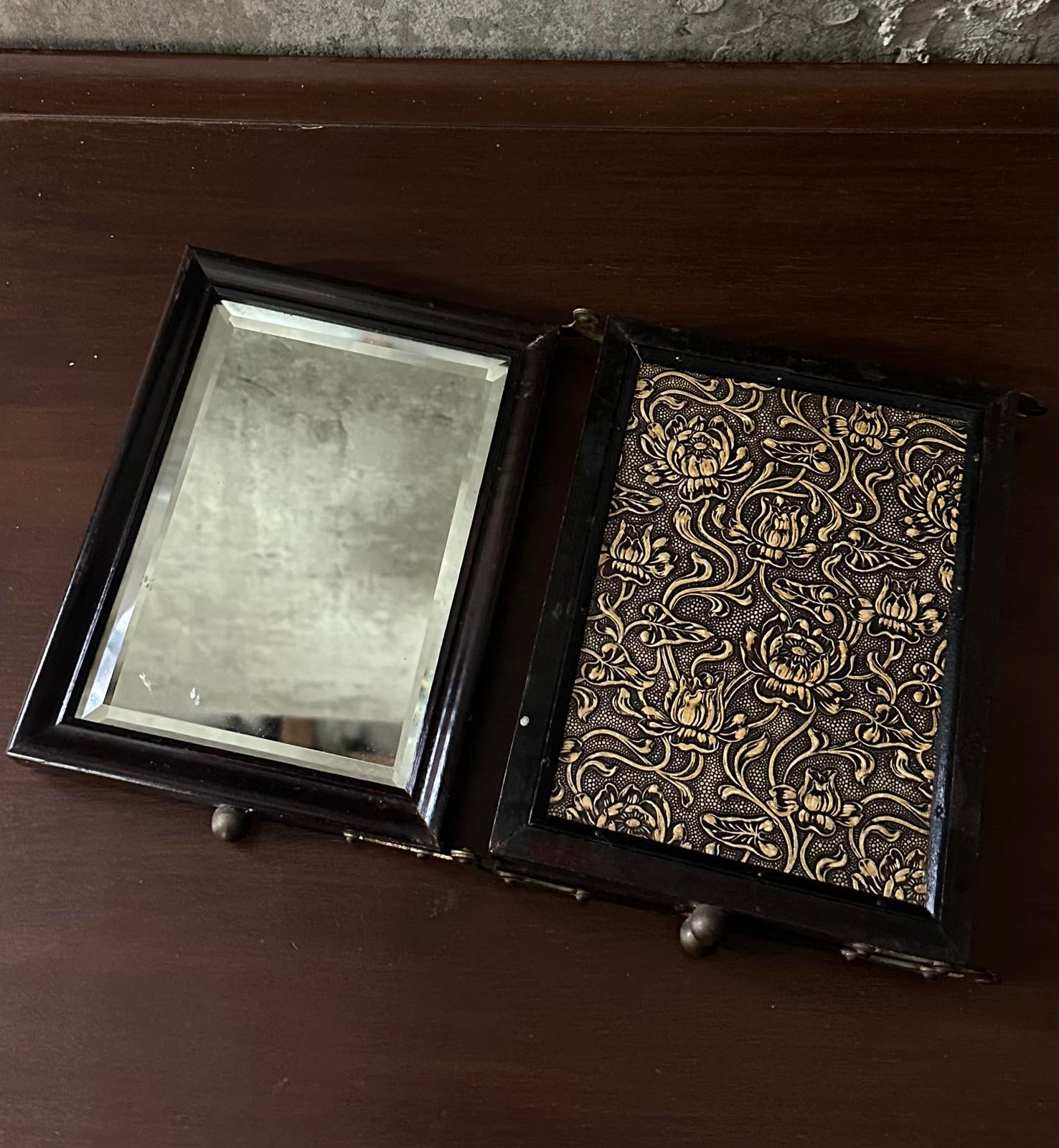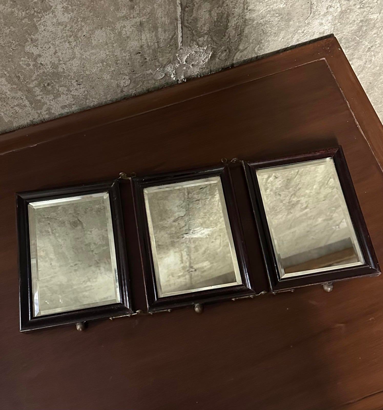 Antique 19th Century Victorian Tabletop Tri-Fold Shaving Mirror Beveled Glass Wood Vanity Mirror