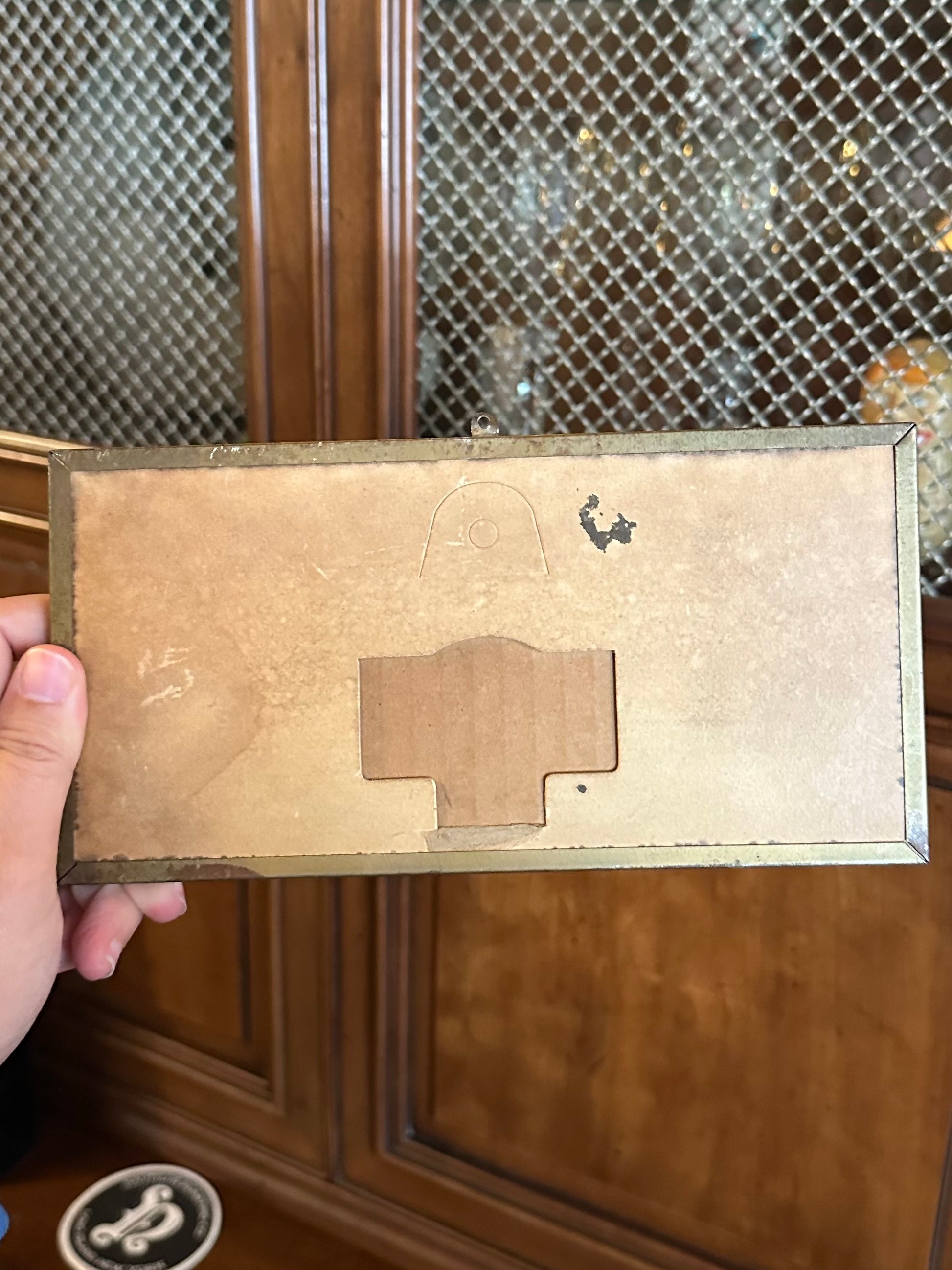 Affixed with a small loop for wall hanging.