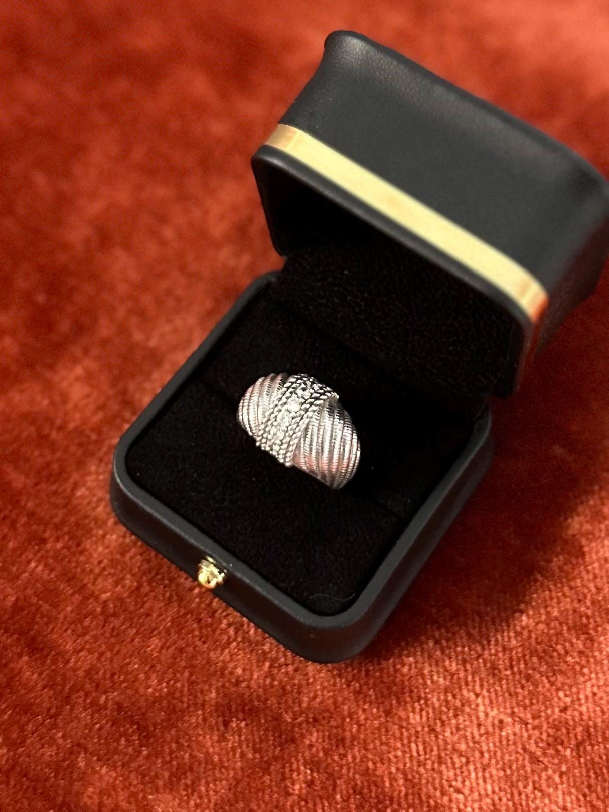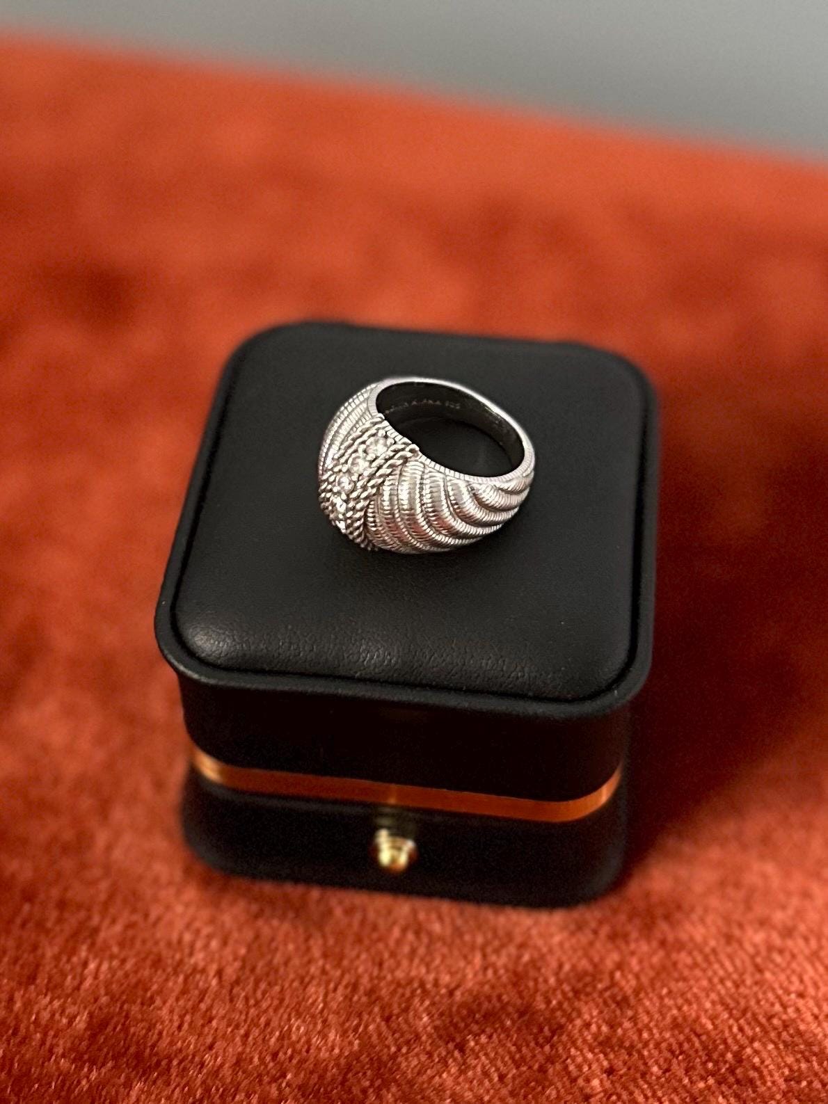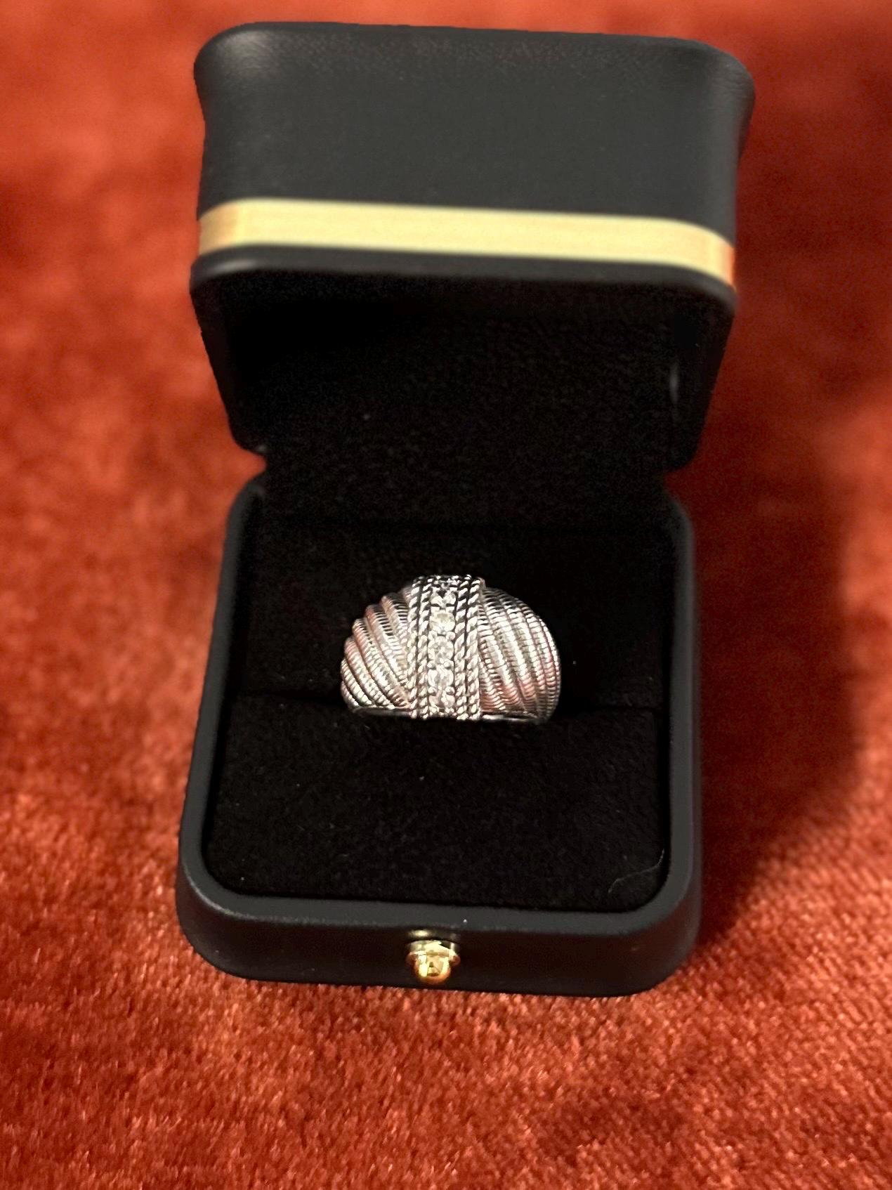 JUDITH RIPKA Sterling Silver Domed Swirl Cubic Zirconia Statement Ring Signed US Size 8