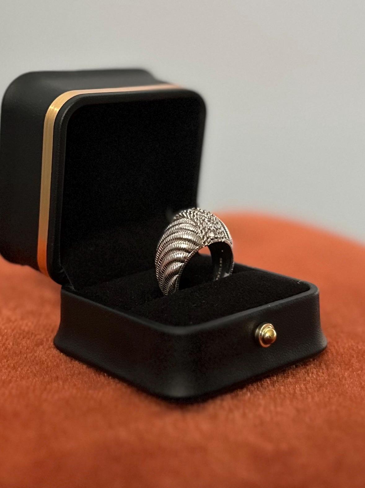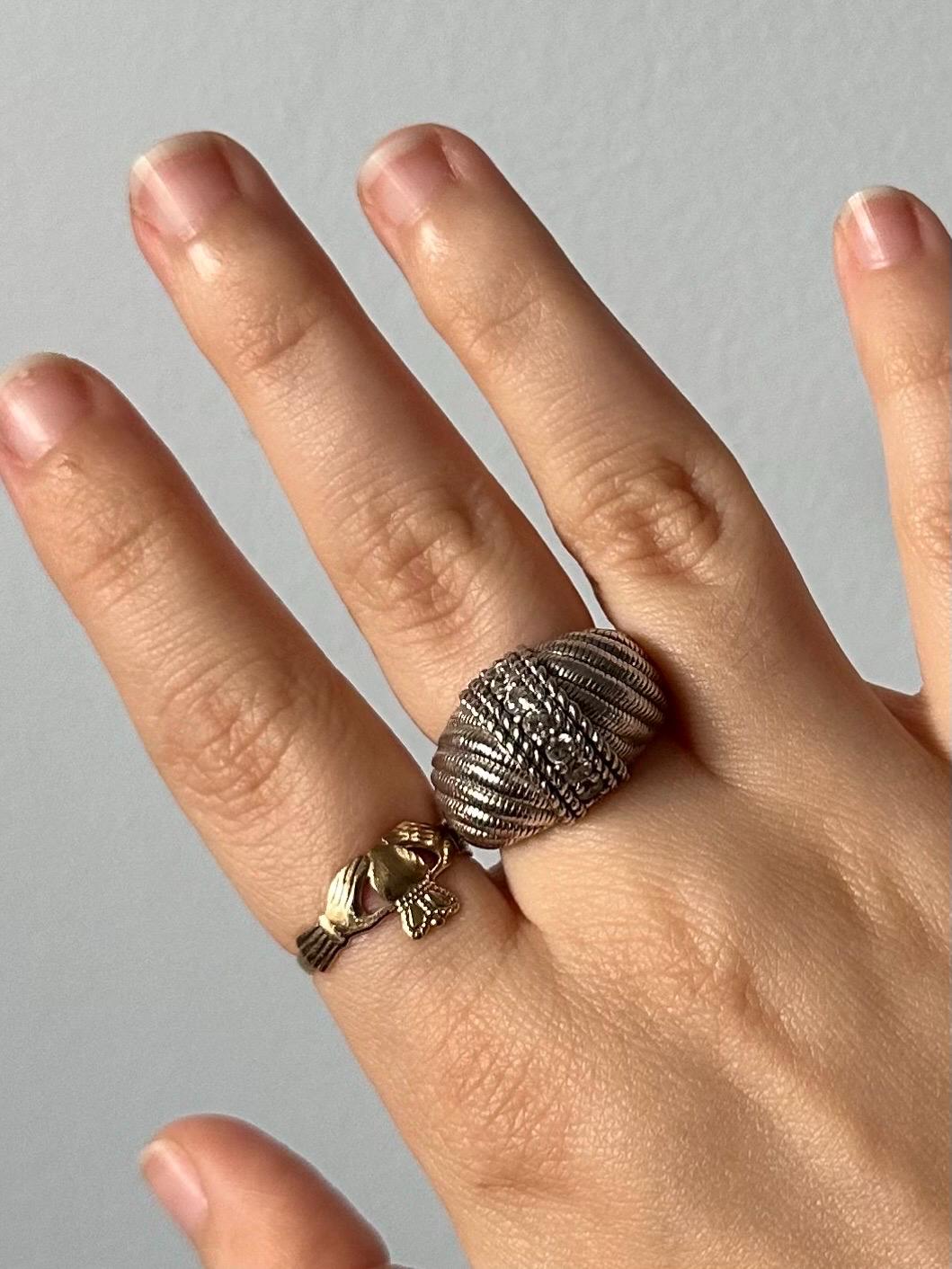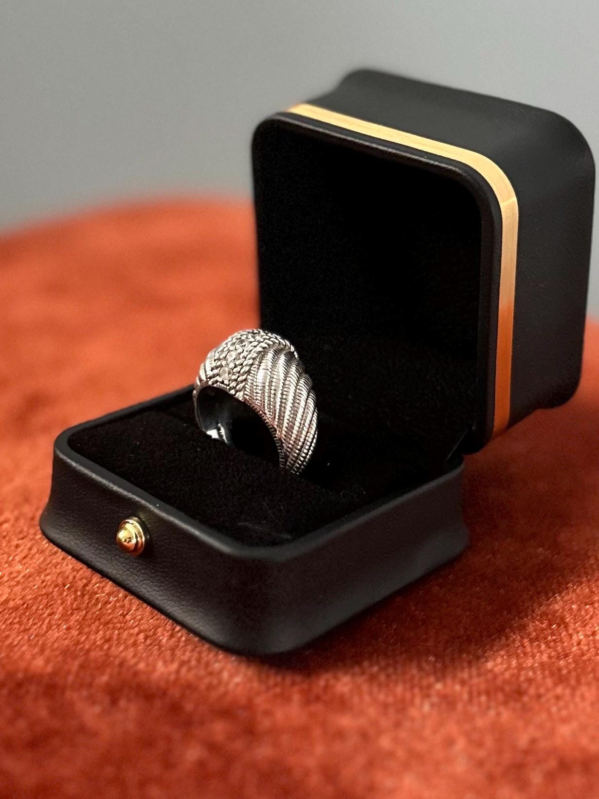 JUDITH RIPKA Sterling Silver Domed Swirl Cubic Zirconia Statement Ring Signed US Size 8