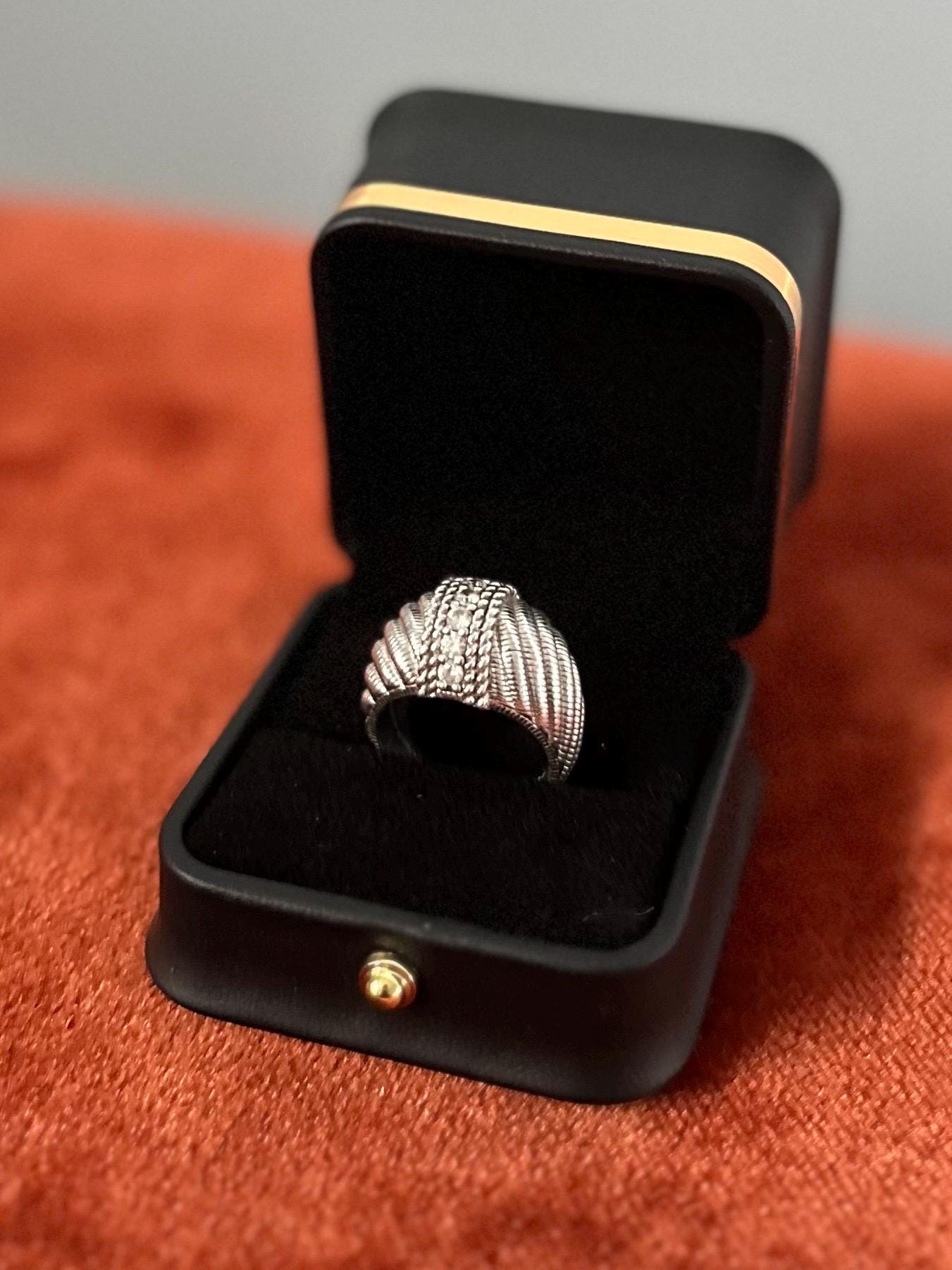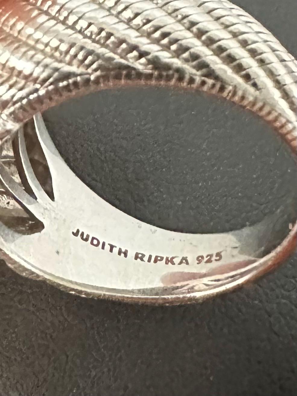 Inside of band is marked “JUDITH RIPKA 925” and “CZ THAILAND”. Inside of band also has signature fleur de lis symbol.