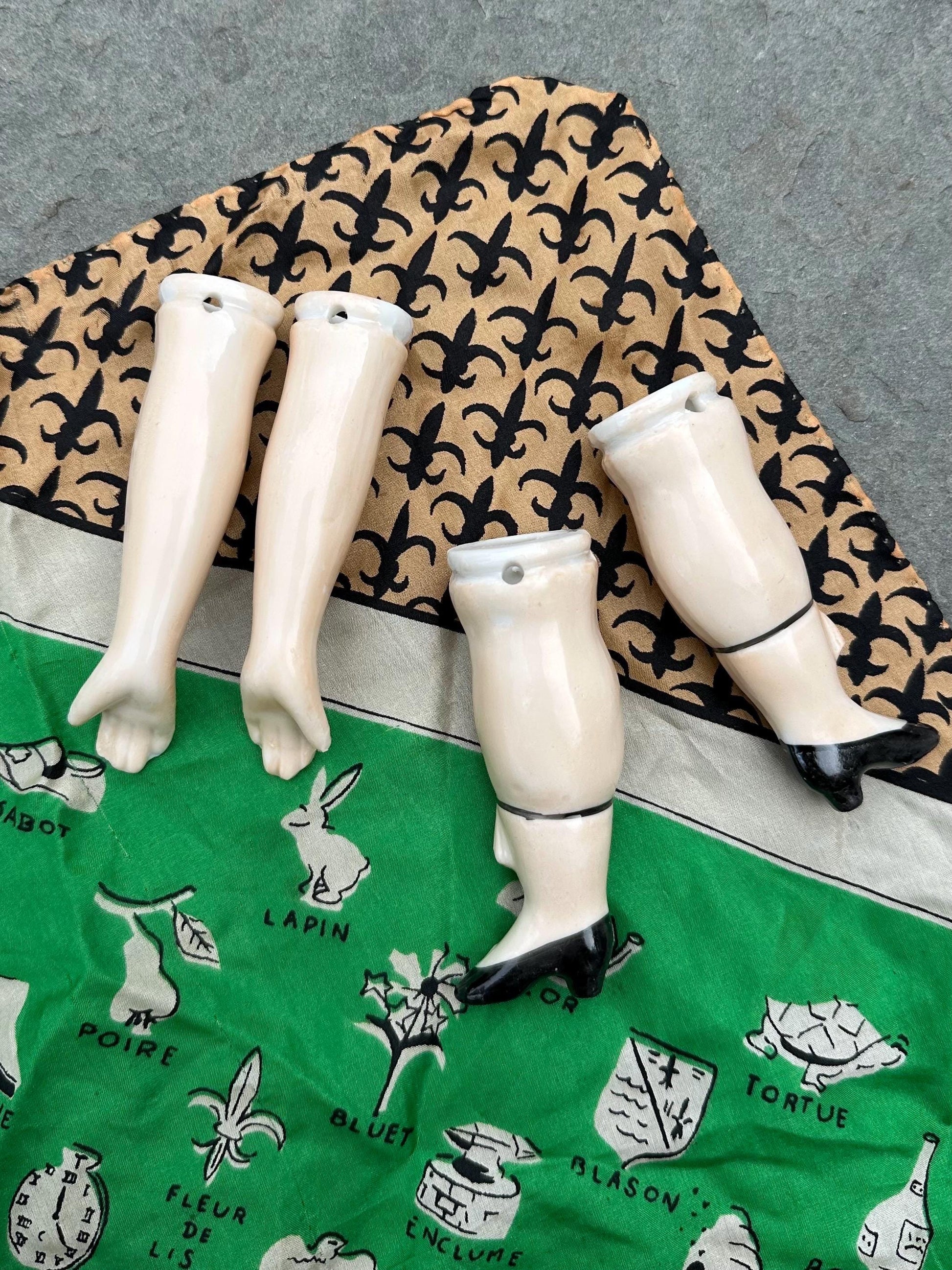 LOT of 4 Vintage Japan Handpainted Bisque Porcelain Doll Parts 2 Arms & 2 Legs