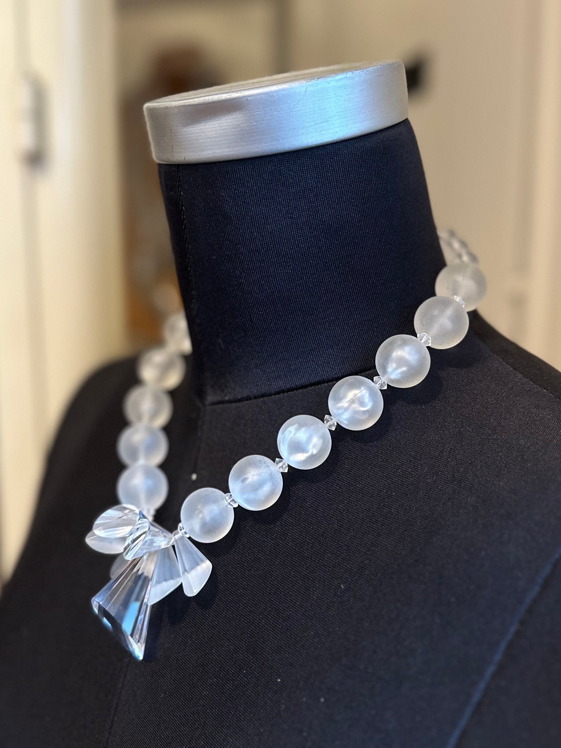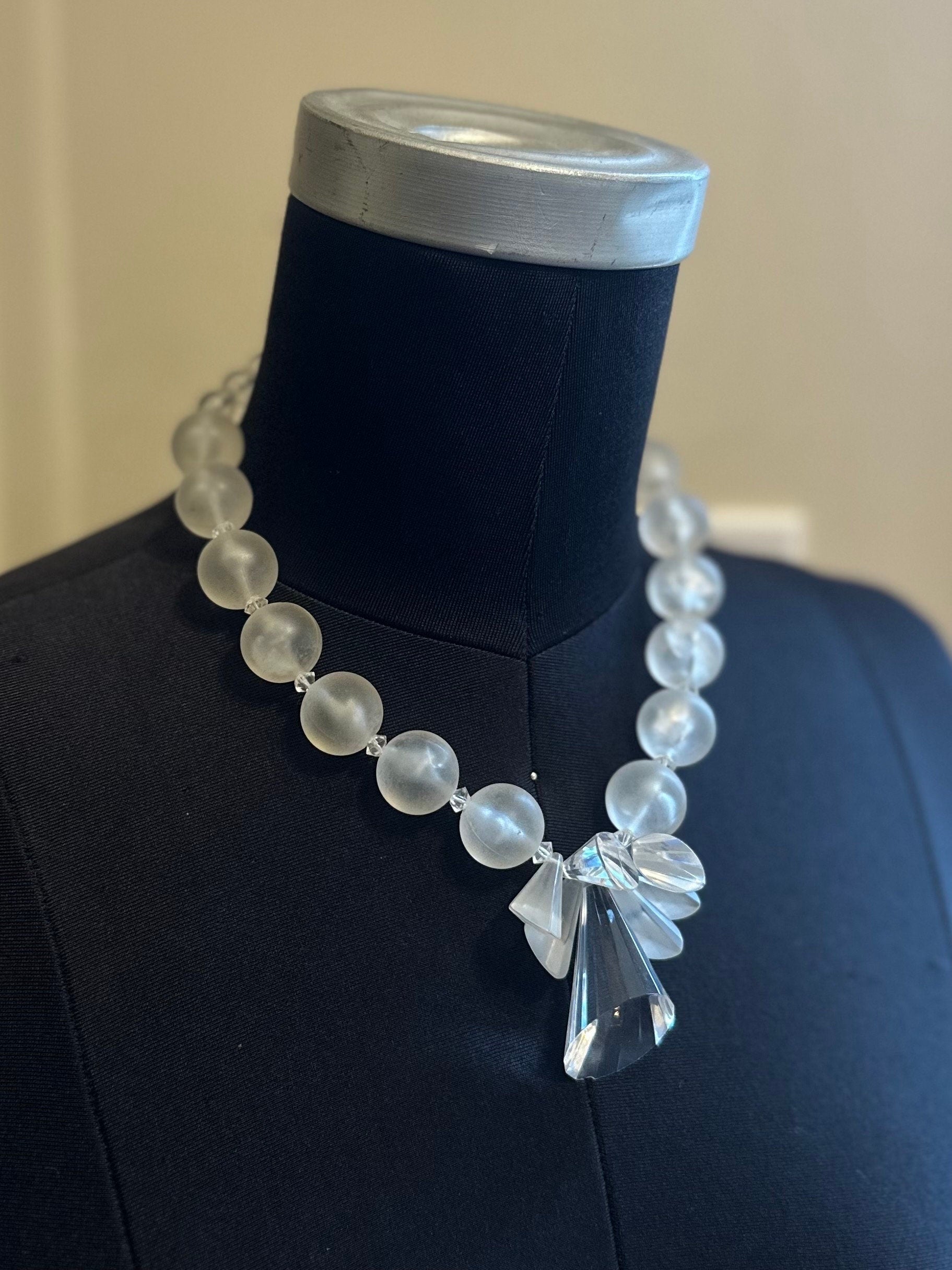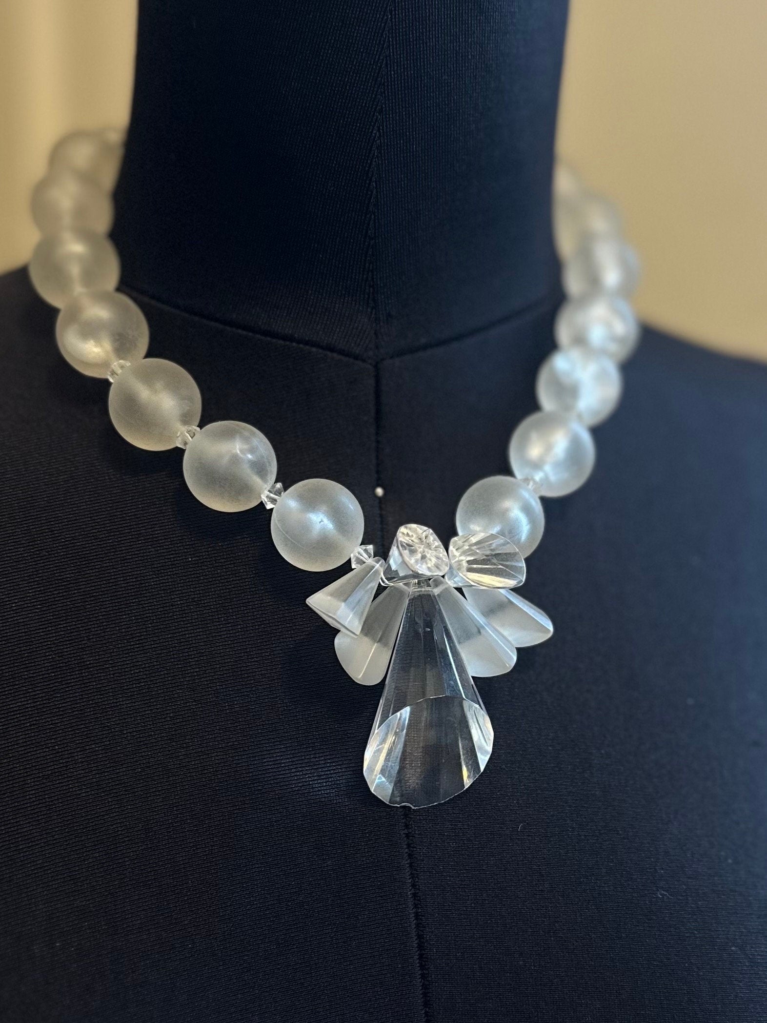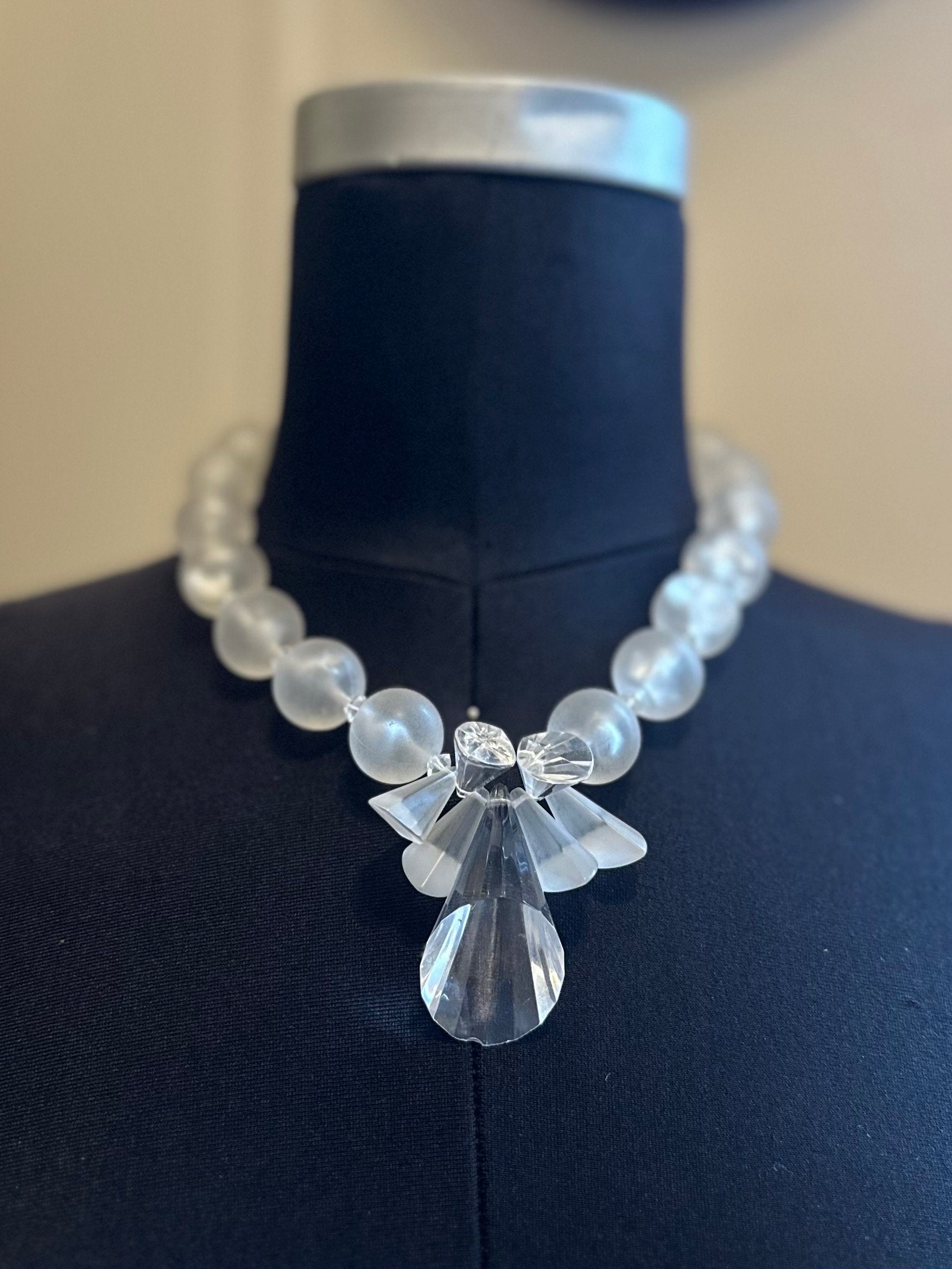 1950s Clear & Frosted Graduated Lucite and Faceted Lucite Cone Beaded Collar Necklace