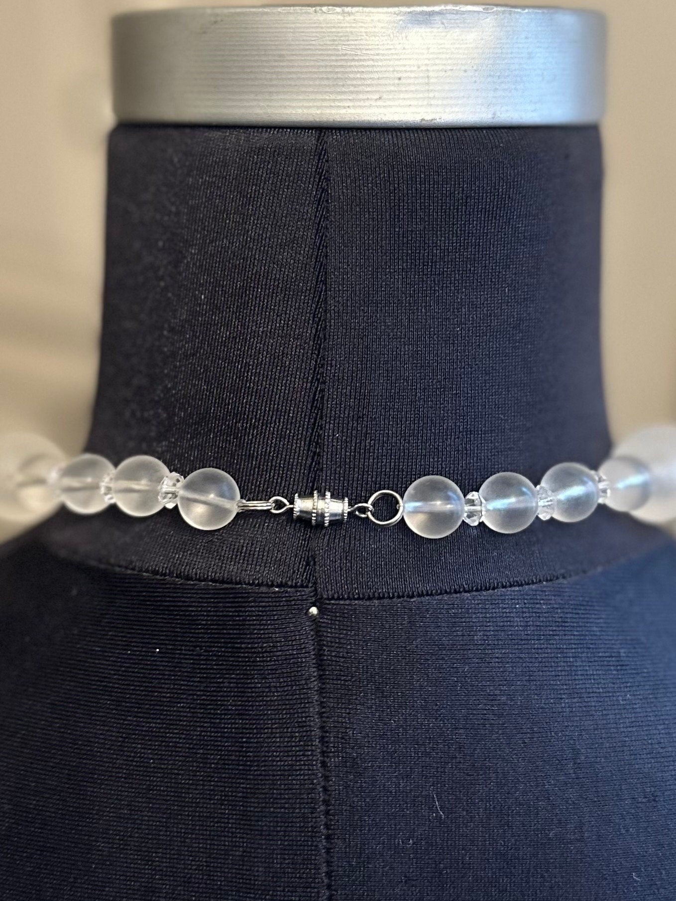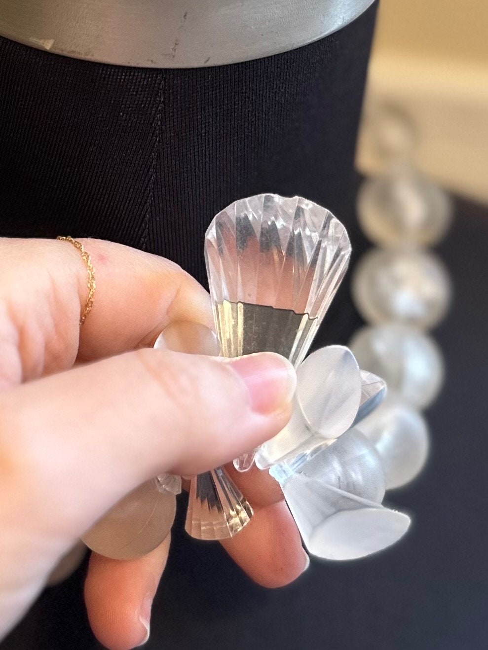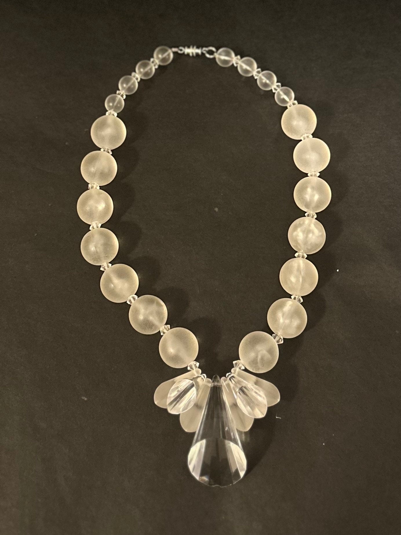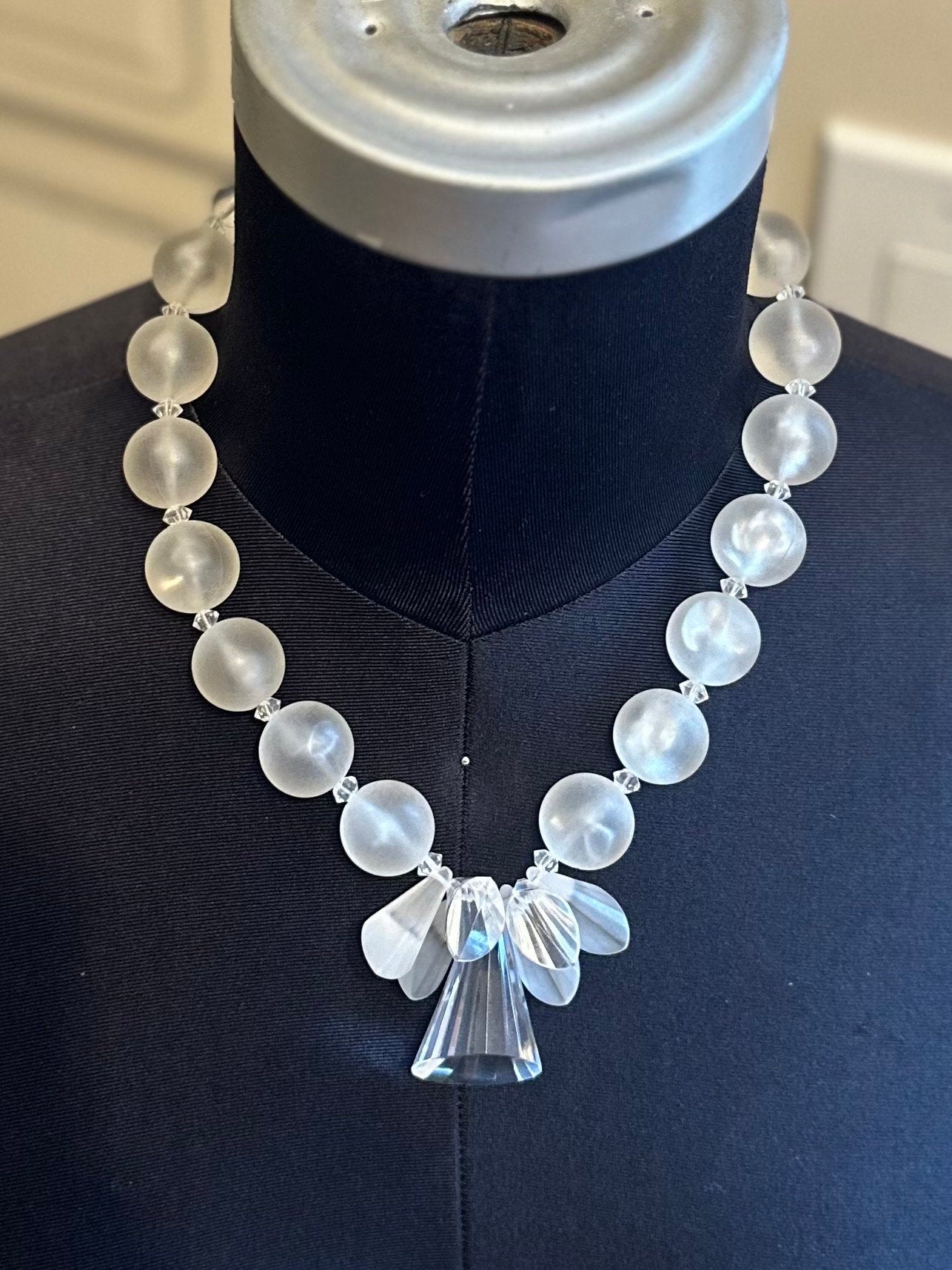 1950s Clear & Frosted Graduated Lucite and Faceted Lucite Cone Beaded Collar Necklace