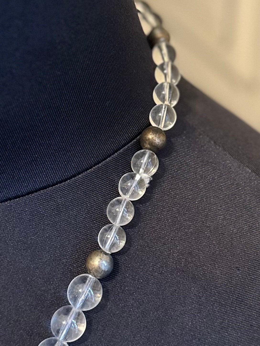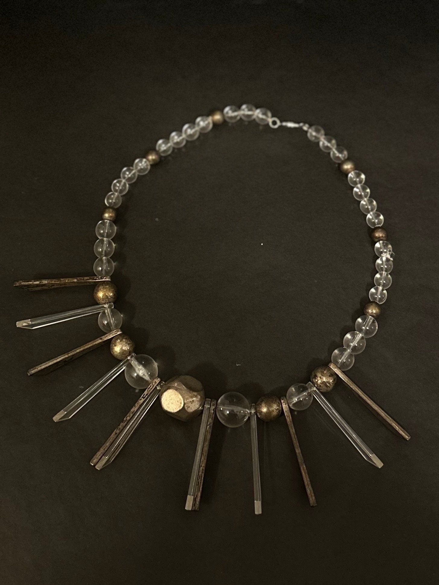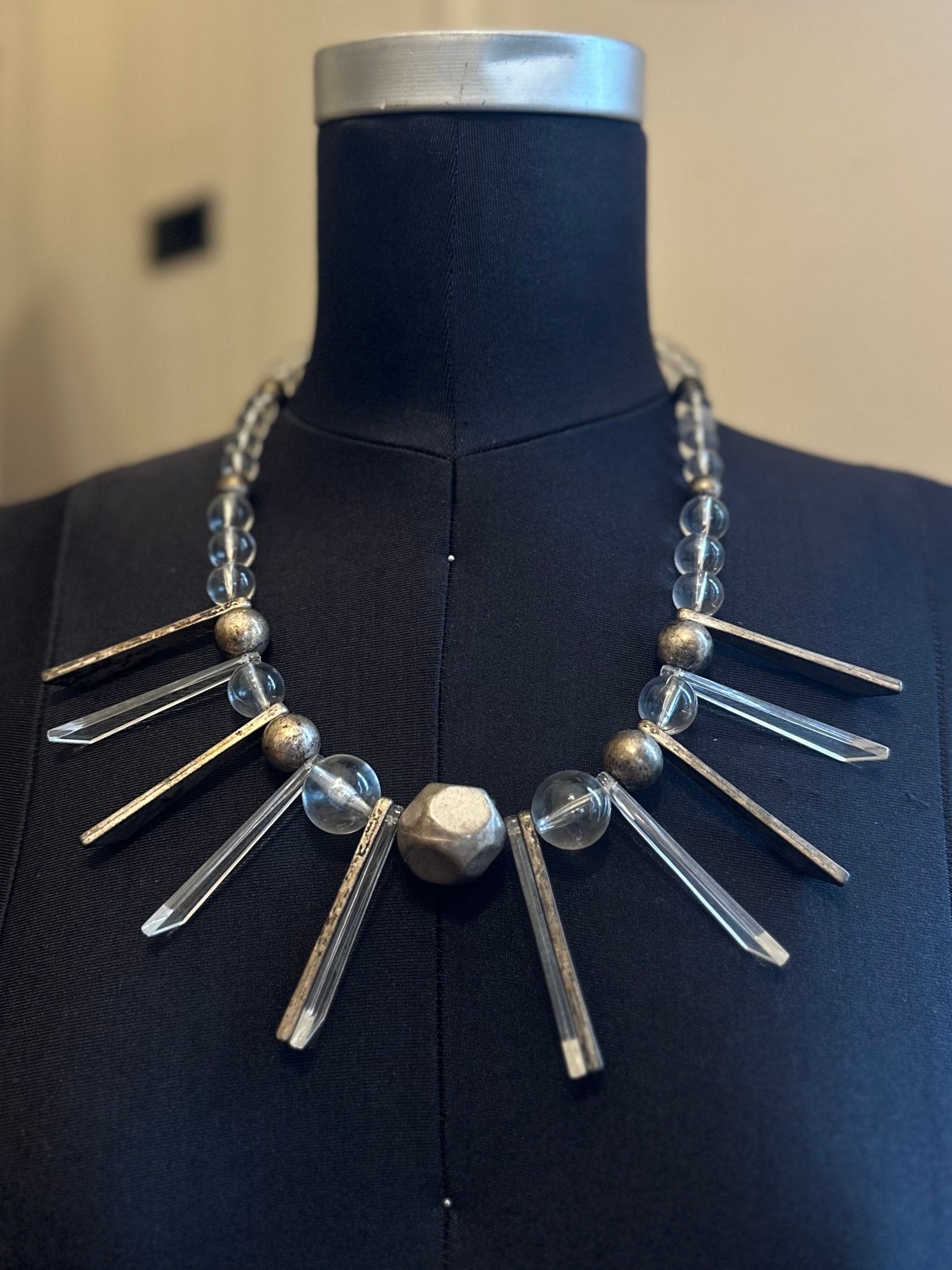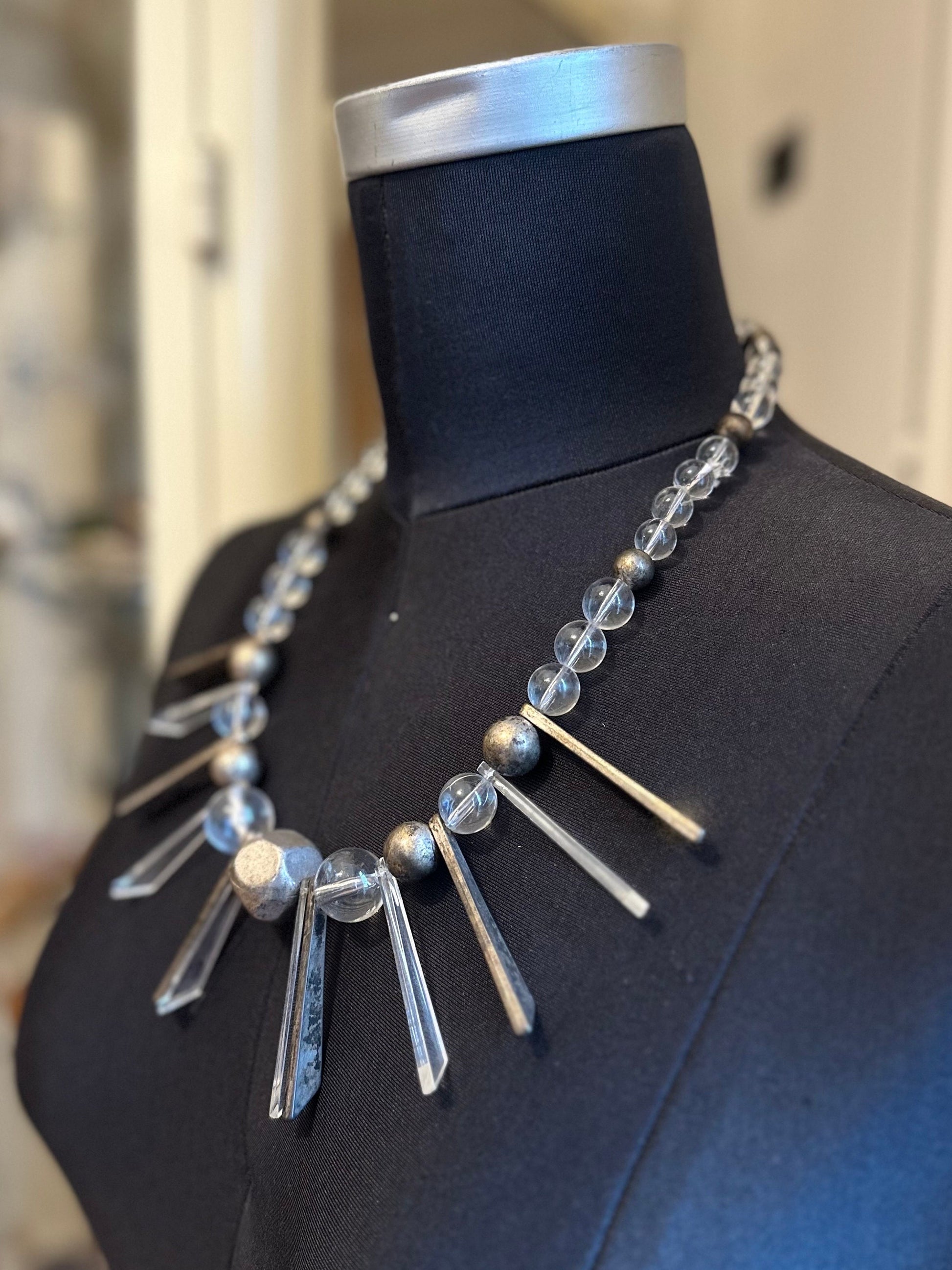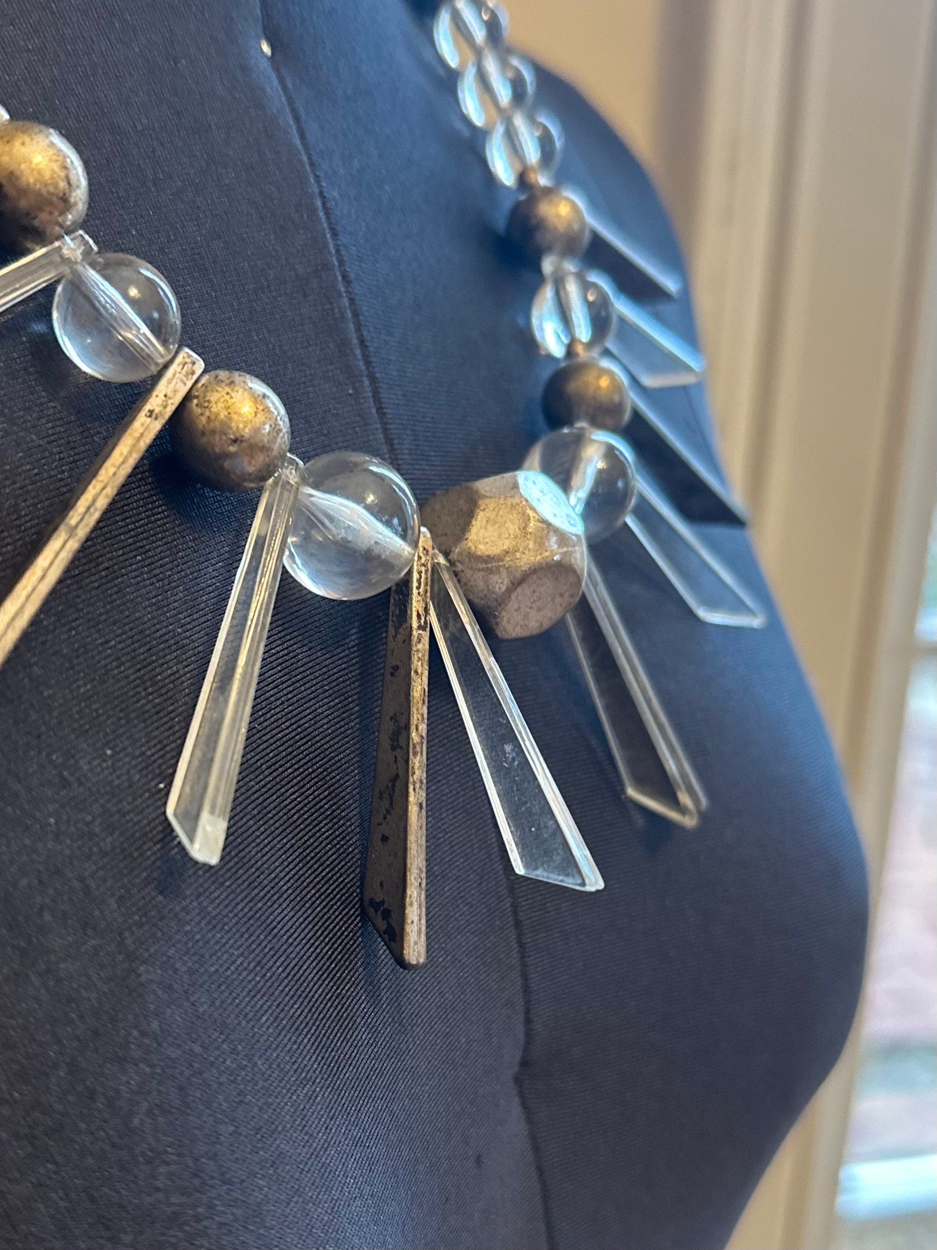 1950s Geometric Daggers & Clear Lucite Silver Tone Graduated Beaded Collar Necklace