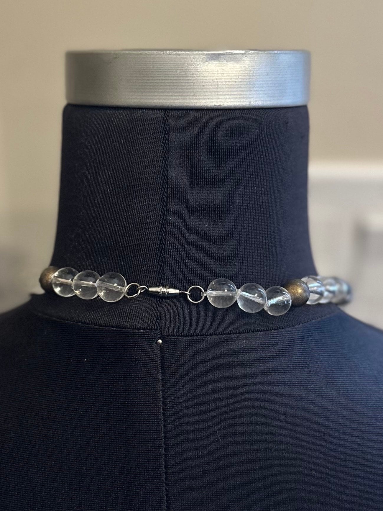 Stunning and rare piece of midcentury statement jewelry! Comprised of lucite & metal coated plastic.