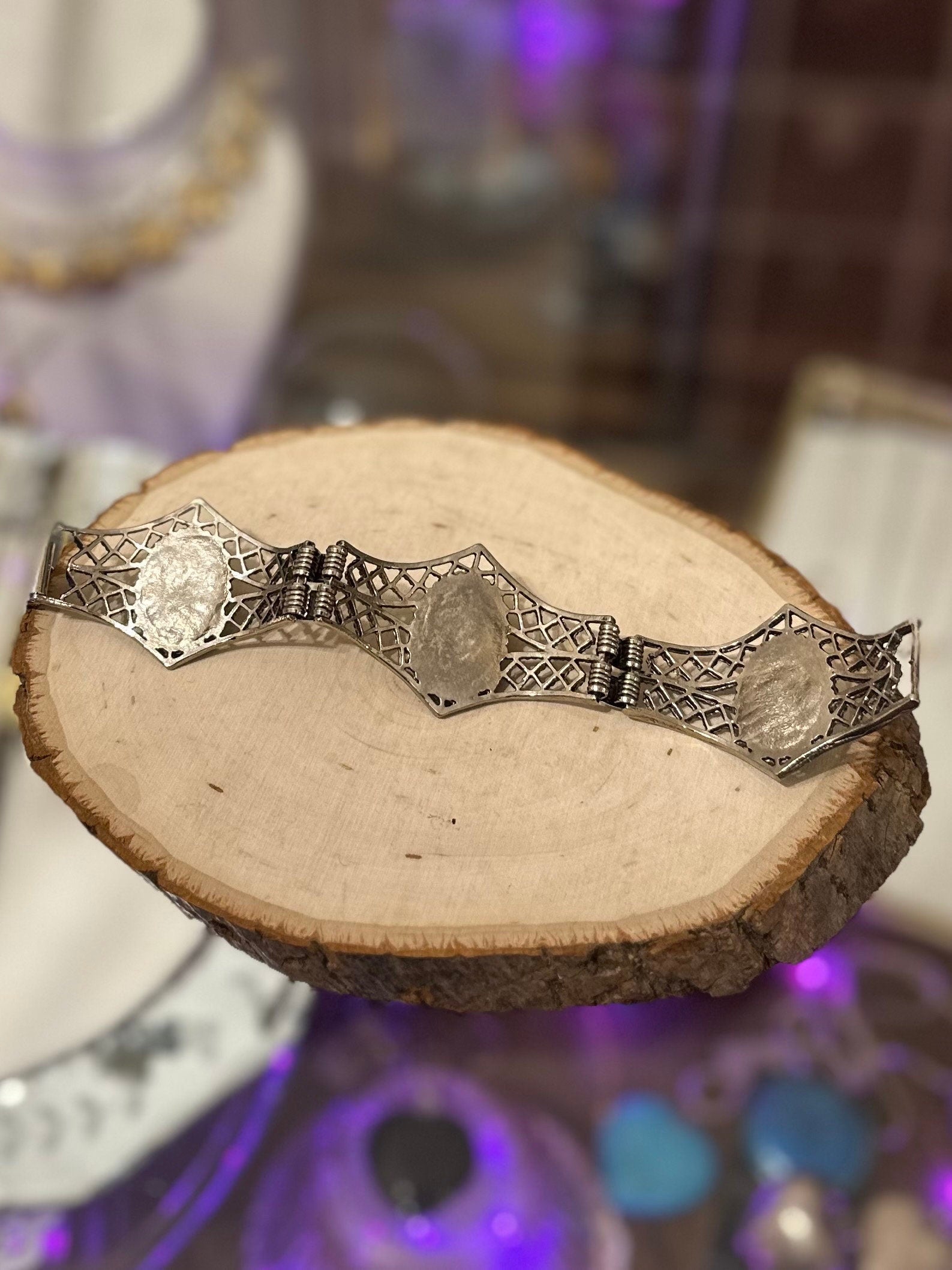 Bracelet measures approximately 7.75 inches long by 1.5 inches wide.