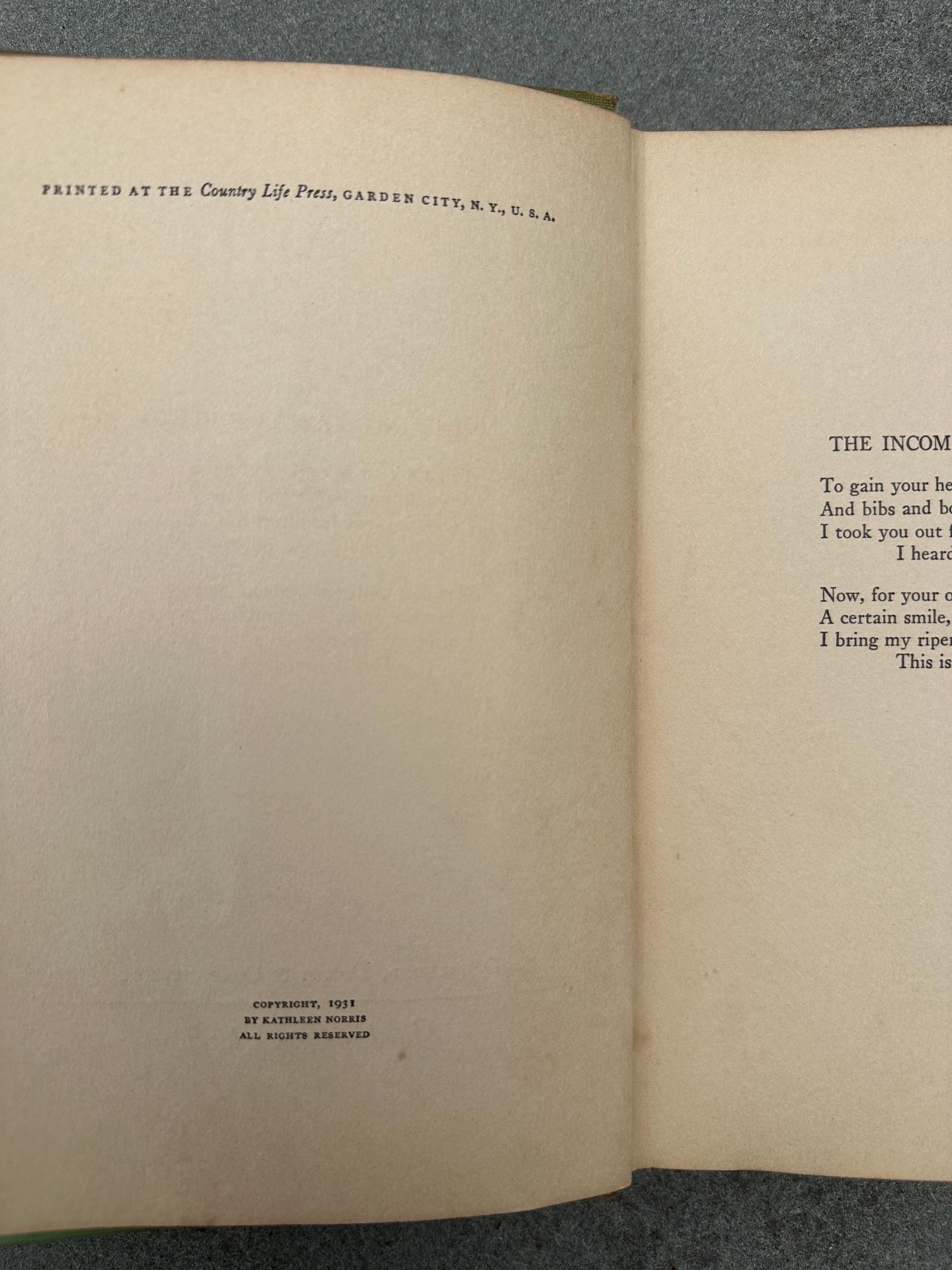 Copyright 1931 by Kathleen Norris. Printed at the Country Life Press, Garden City, NY, USA. Doubleday, Doran, & Company, Inc.