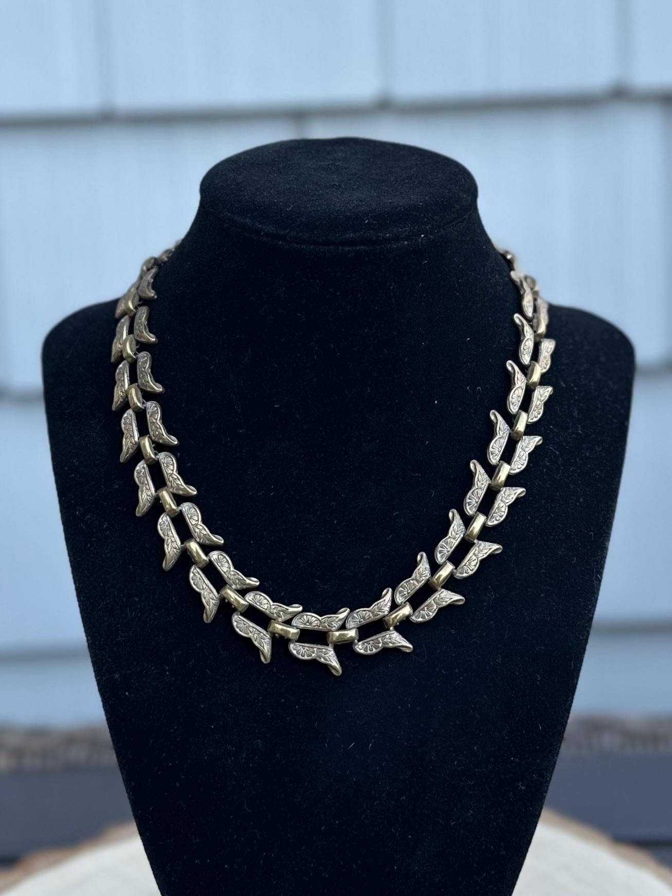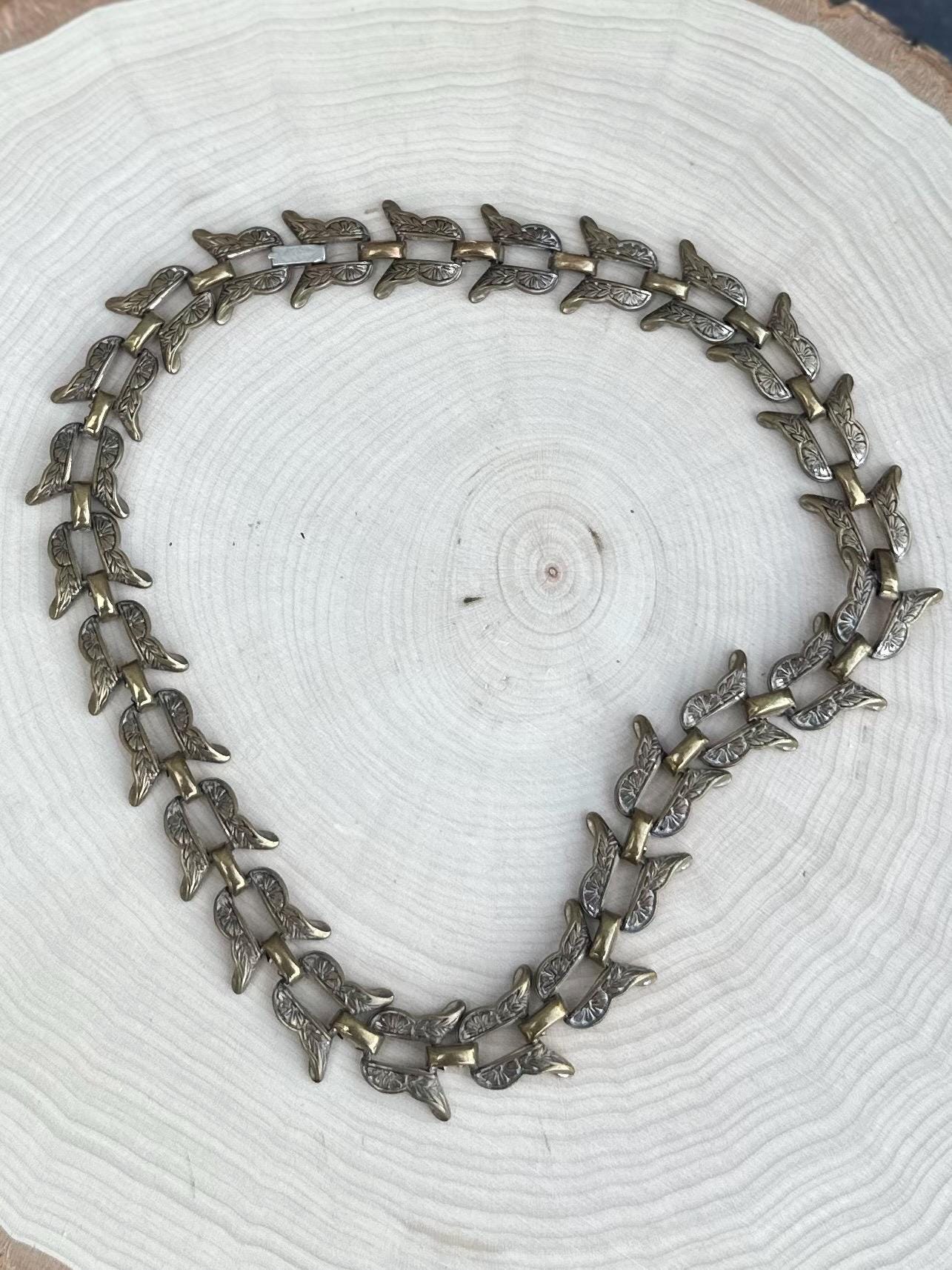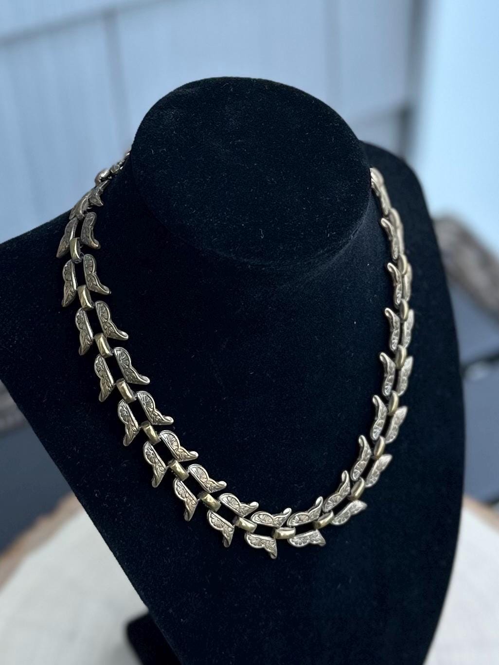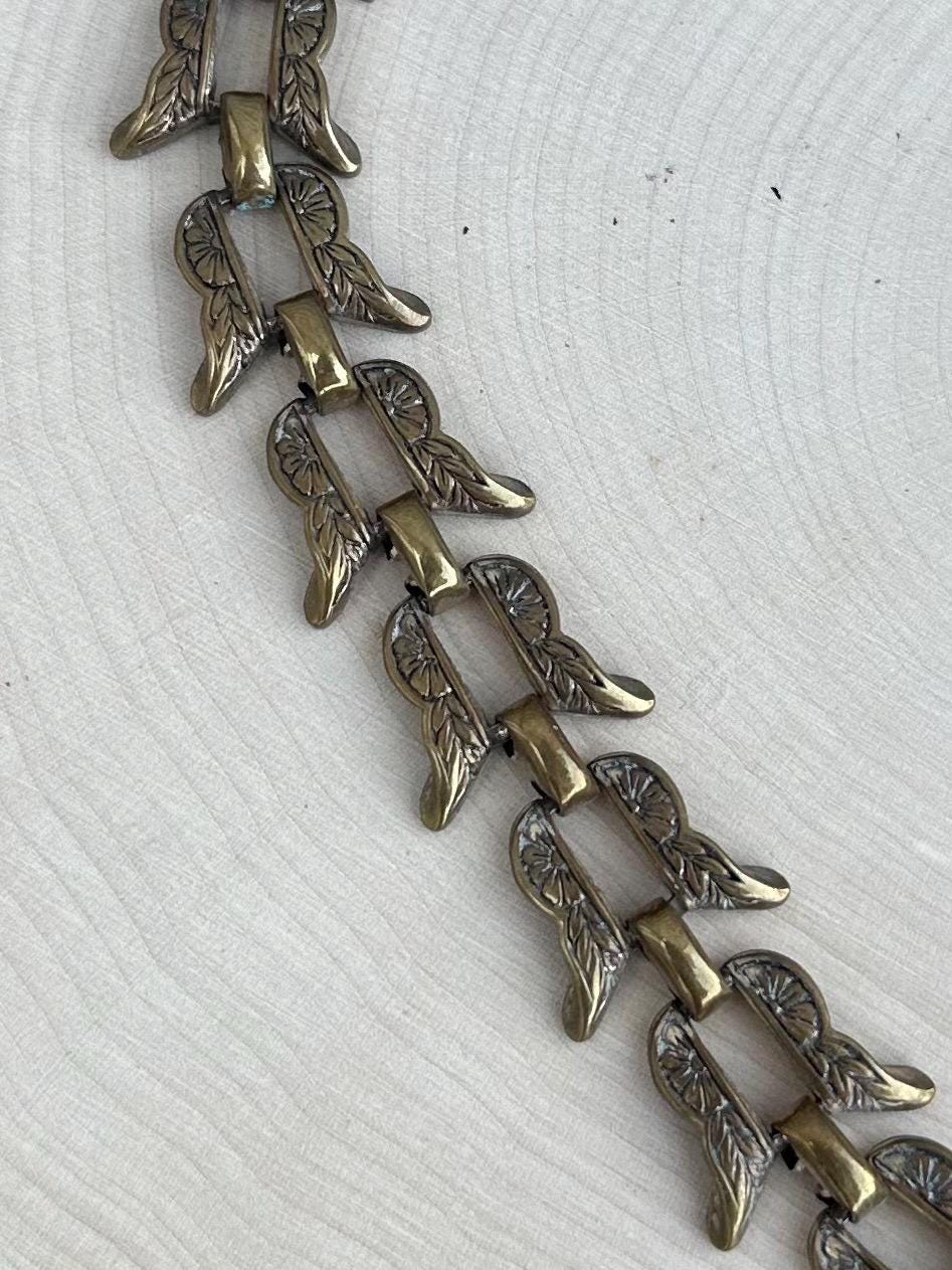 1940s 1950s Signed BY MARINO Bronze Tone Floral Etched Link Chain Necklace