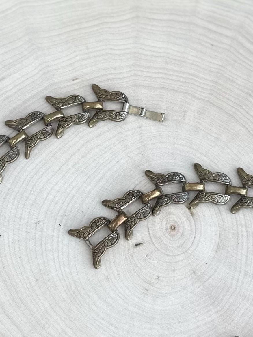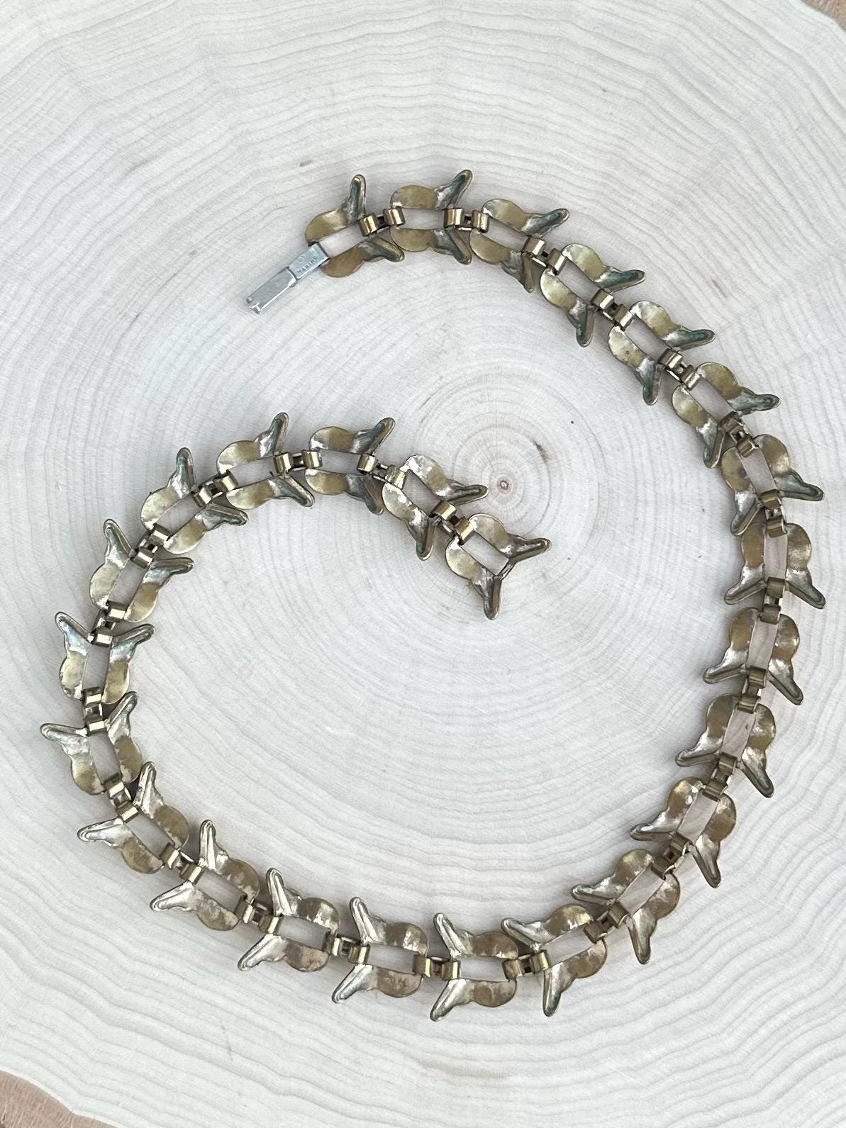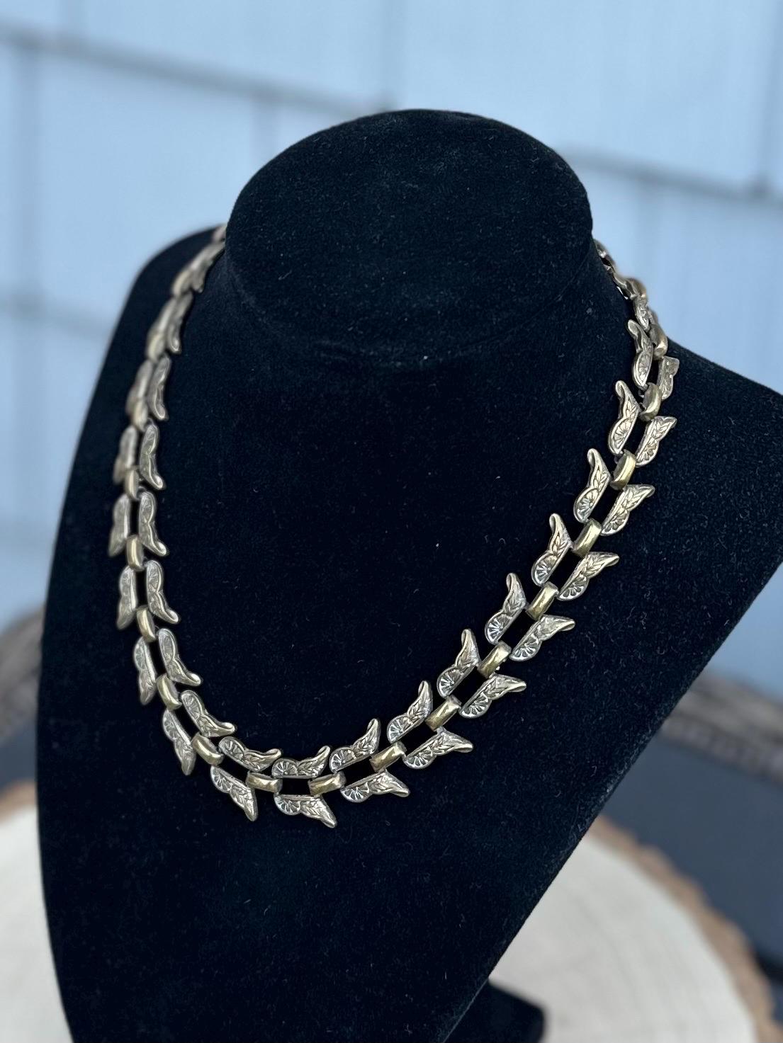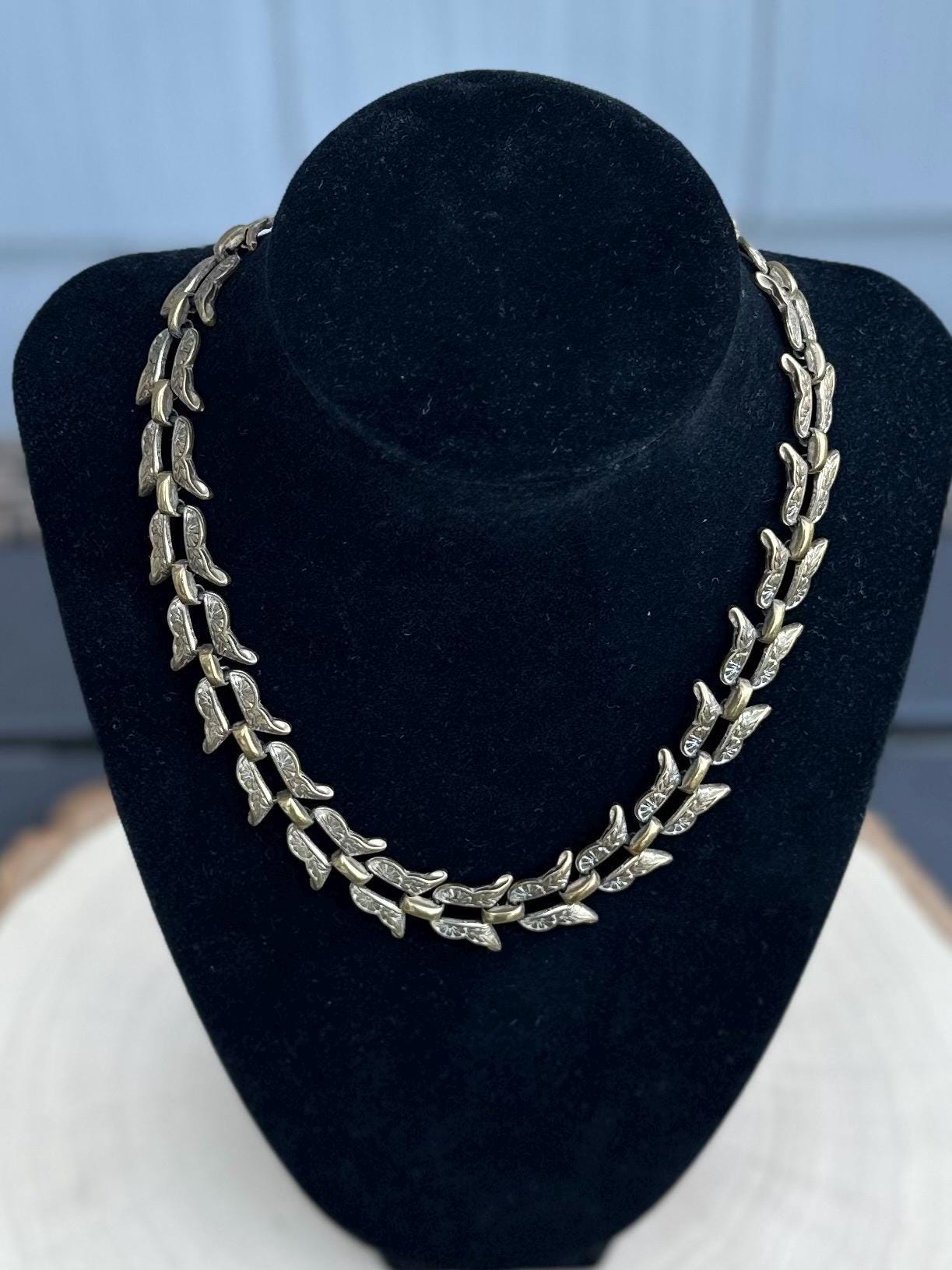 1940s 1950s Signed BY MARINO Bronze Tone Floral Etched Link Chain Necklace