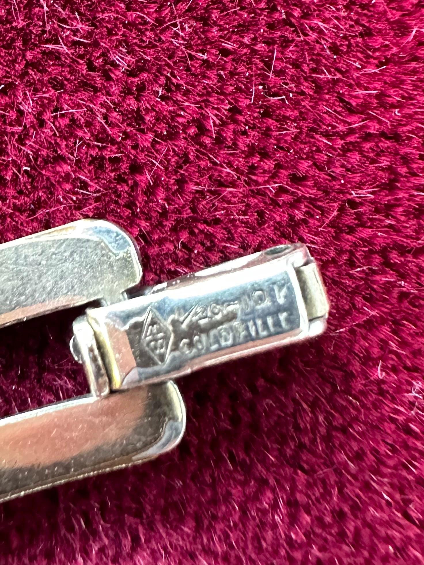 Circa 1940s. Art Deco. Clasp is signed with Engel Brothers maker’s mark and “1/20 10K GOLD FILLED”.