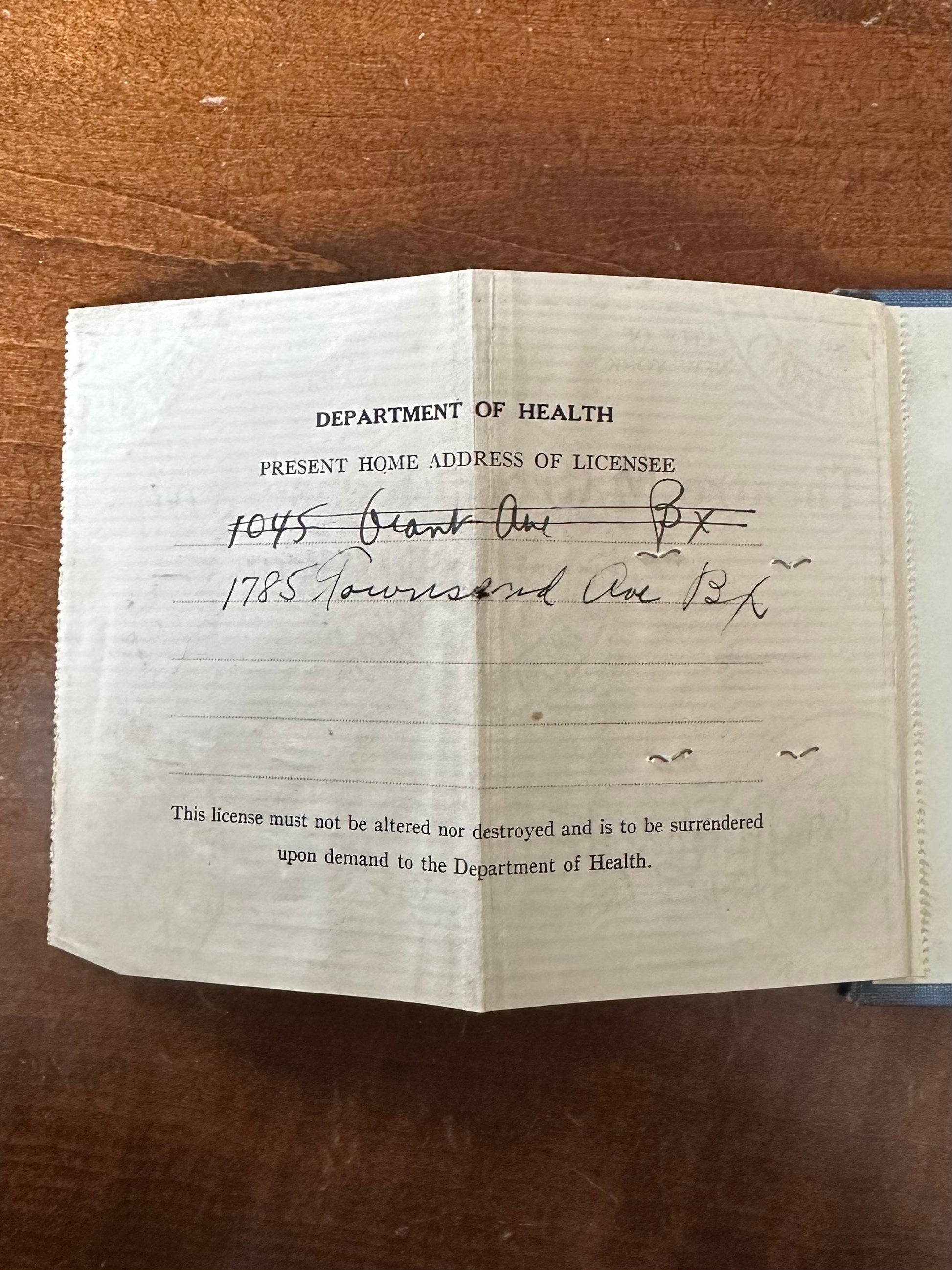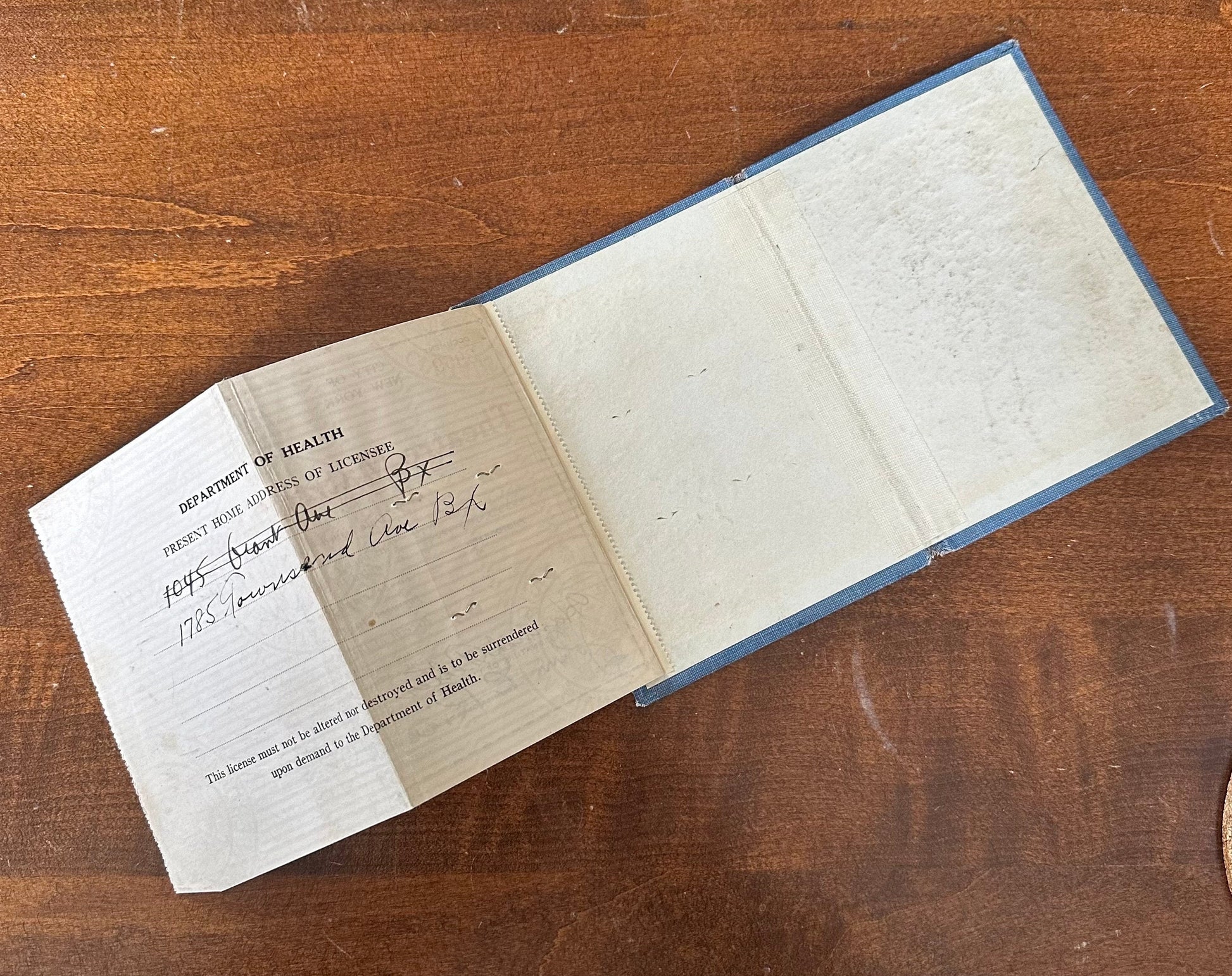 License no. 3940 and is signed NYC Dept. of Health officials. Date issued, September 9th, 1940.