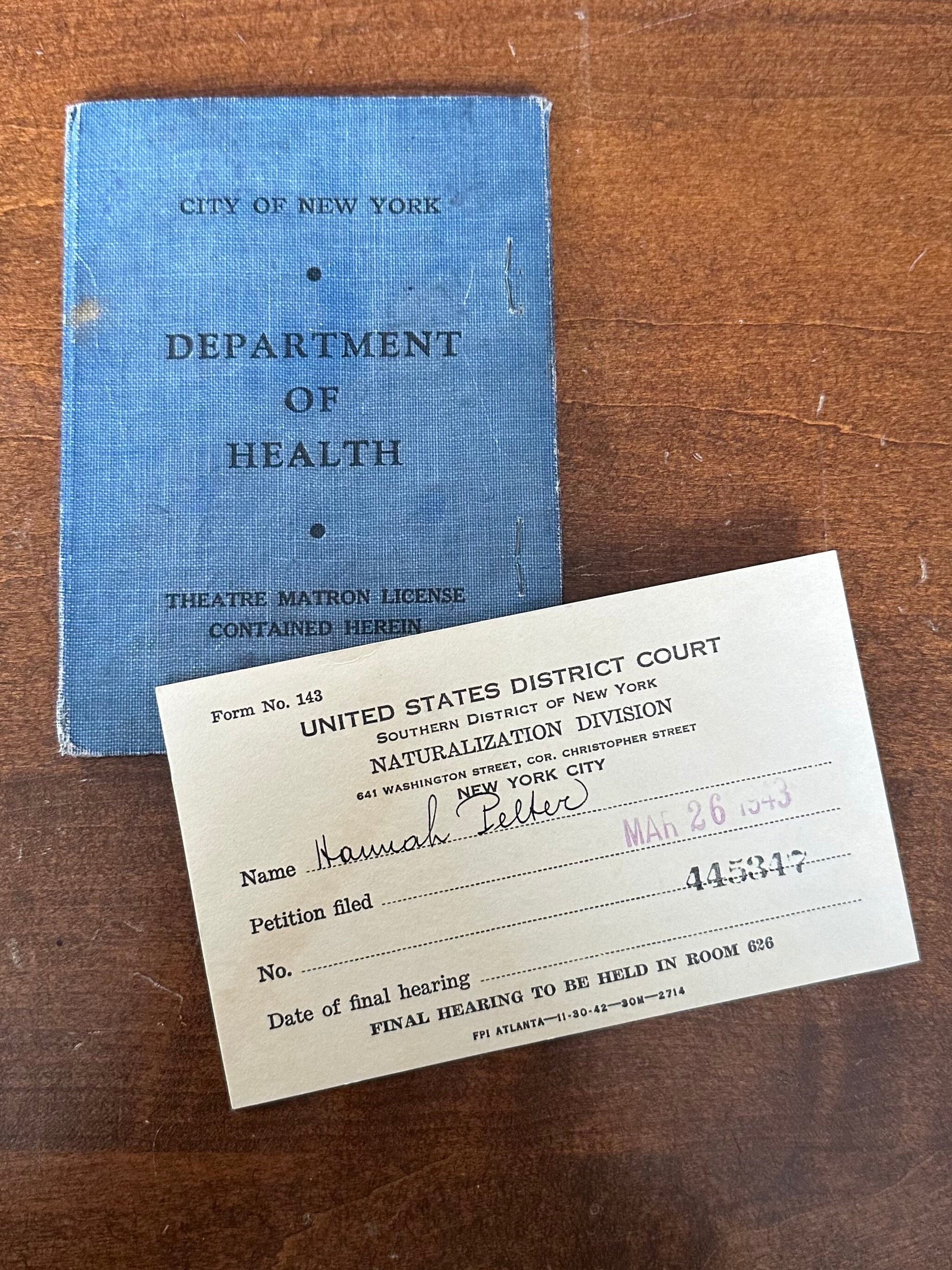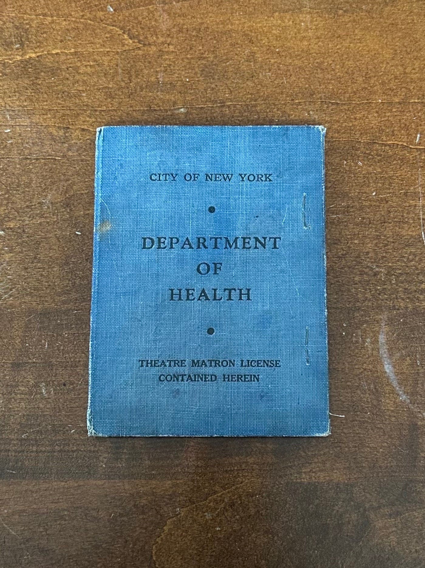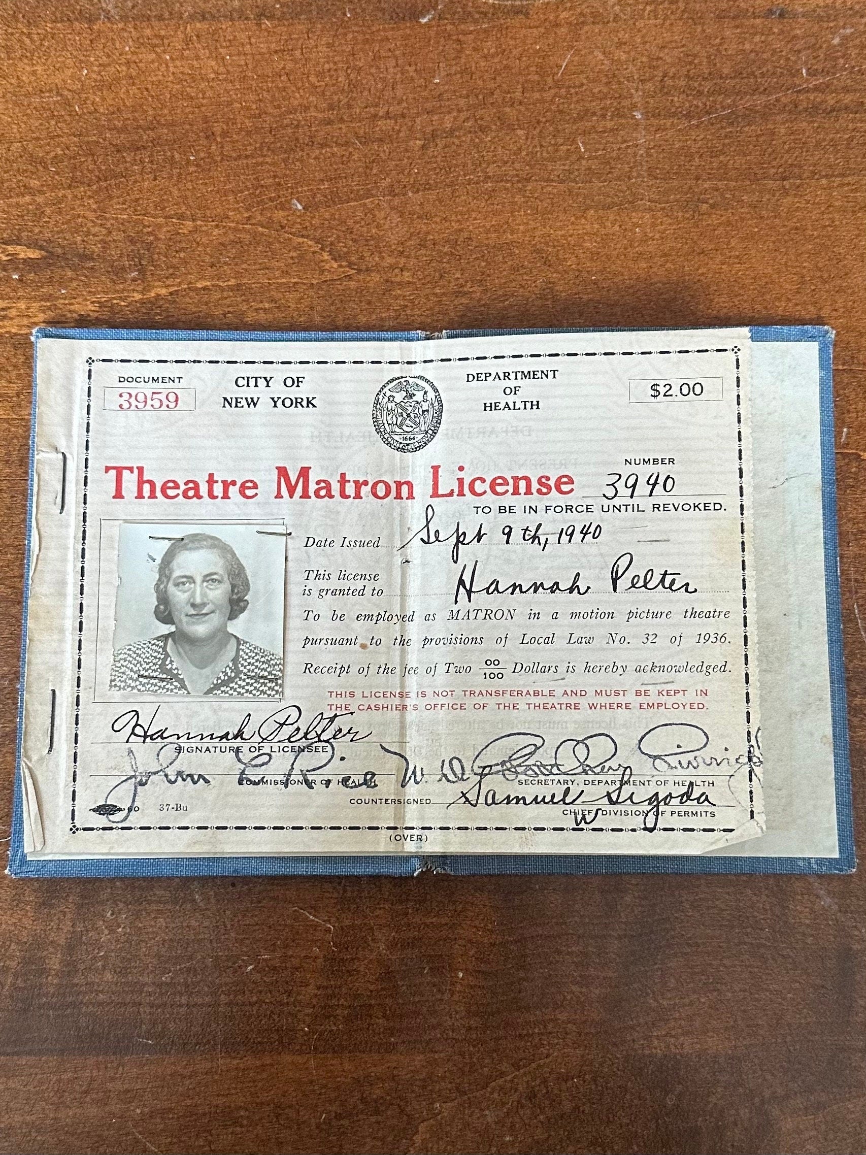 Vintage 1940s Theatre Matron License Issued to Hannah Pelter 1940 New York City