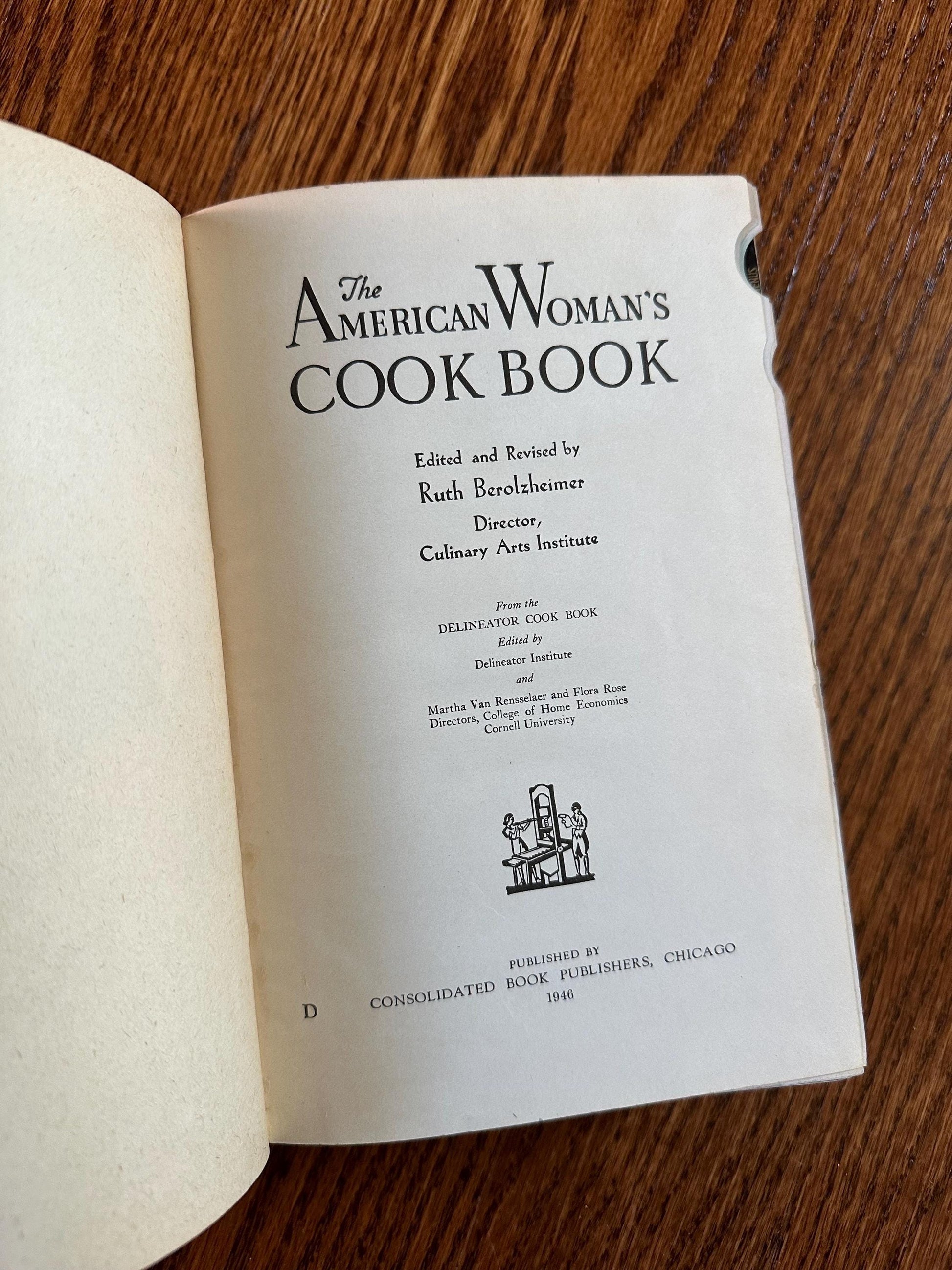 The American Woman’s Cook Book, Edited and Revised by Ruth Berolzheimer (Director, Culinary Art Institute) From the Delineator Cook Book, Edited by Delineator Institute & Martha Van Rensselaer and Flora Rose (Directors, College of Home Economics, Cornell University).
