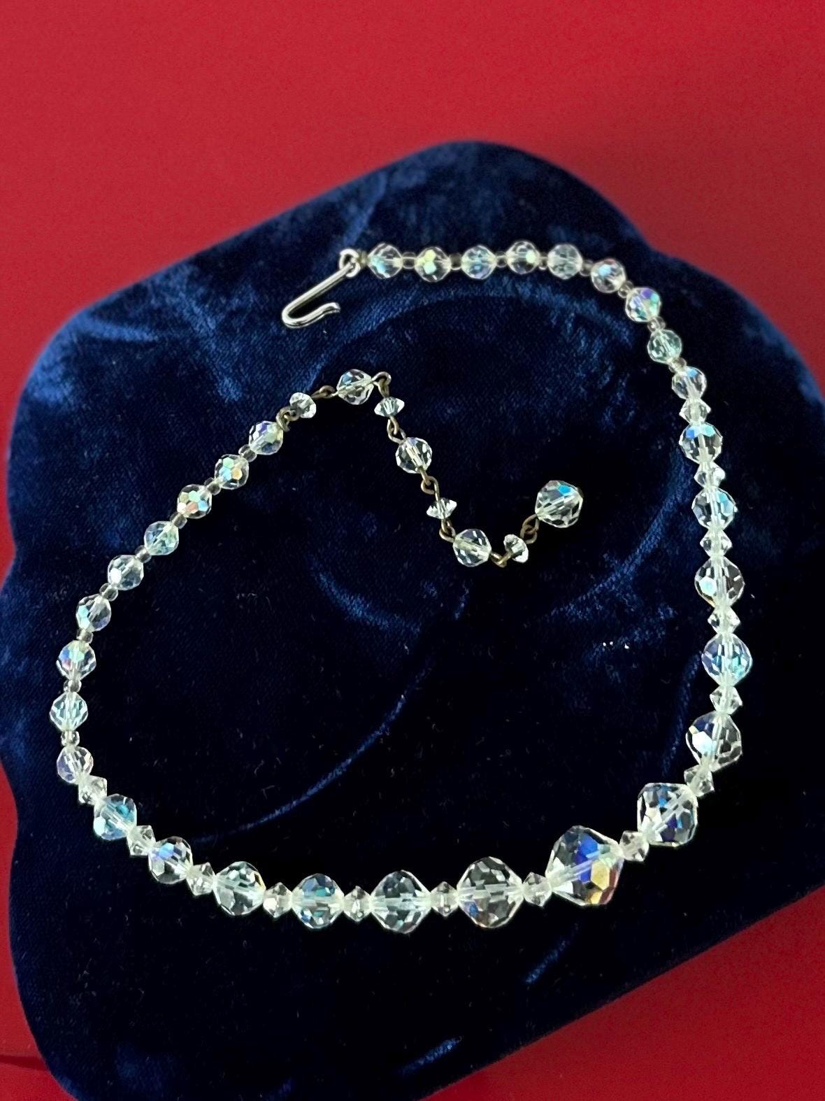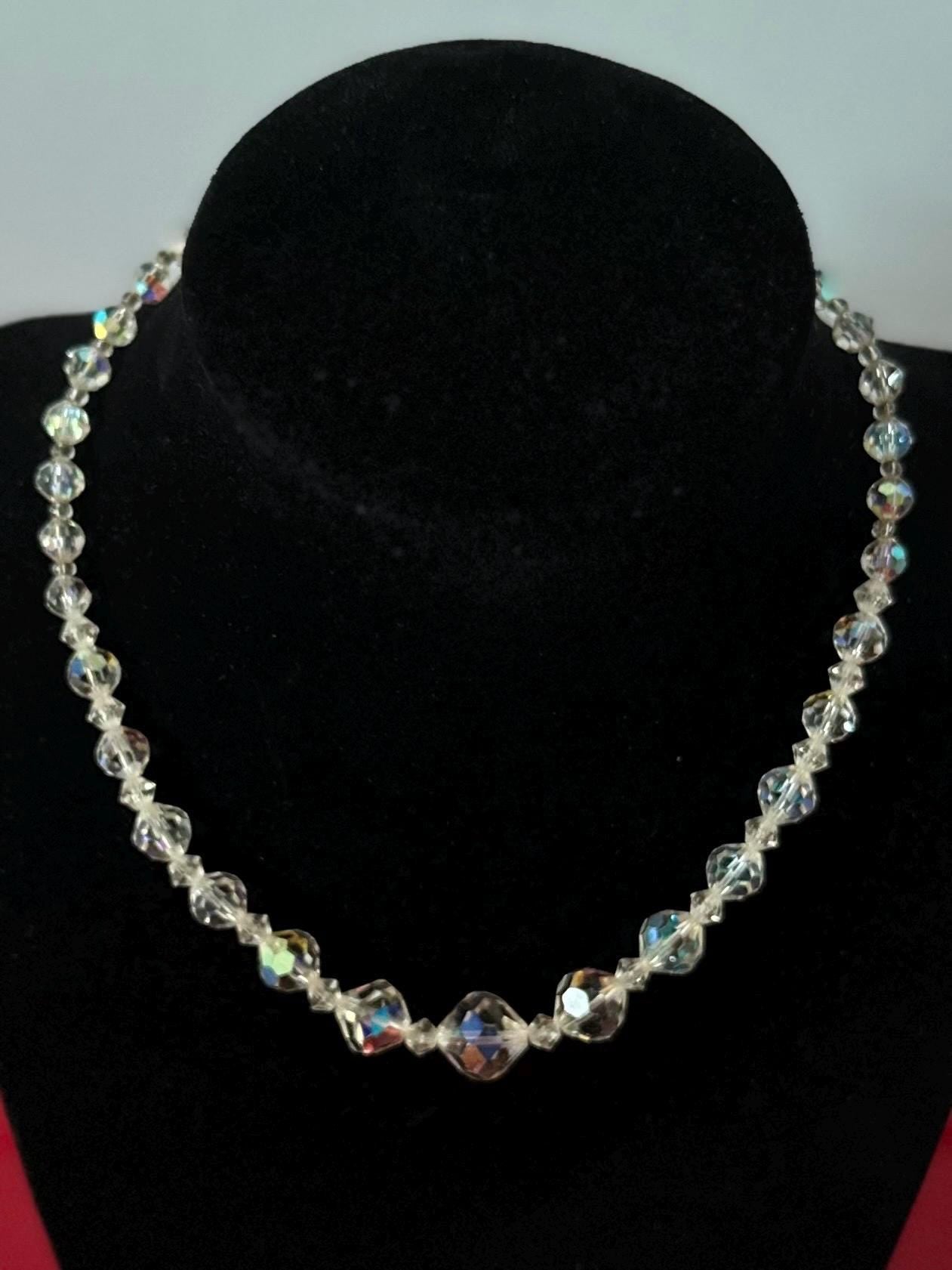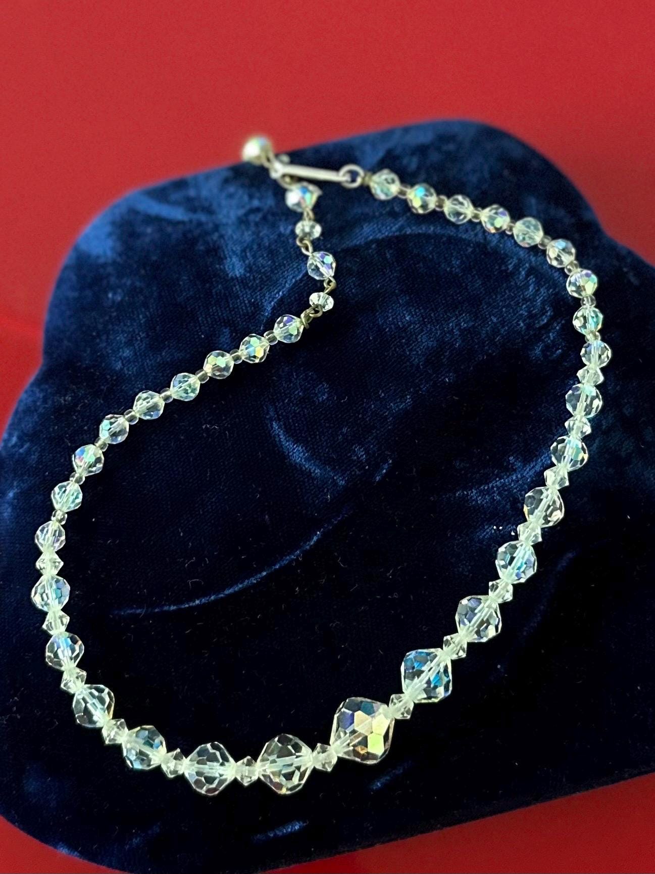 1950s Midcentury Faceted Iridescent Clear Graduated Crystal Beaded Necklace
