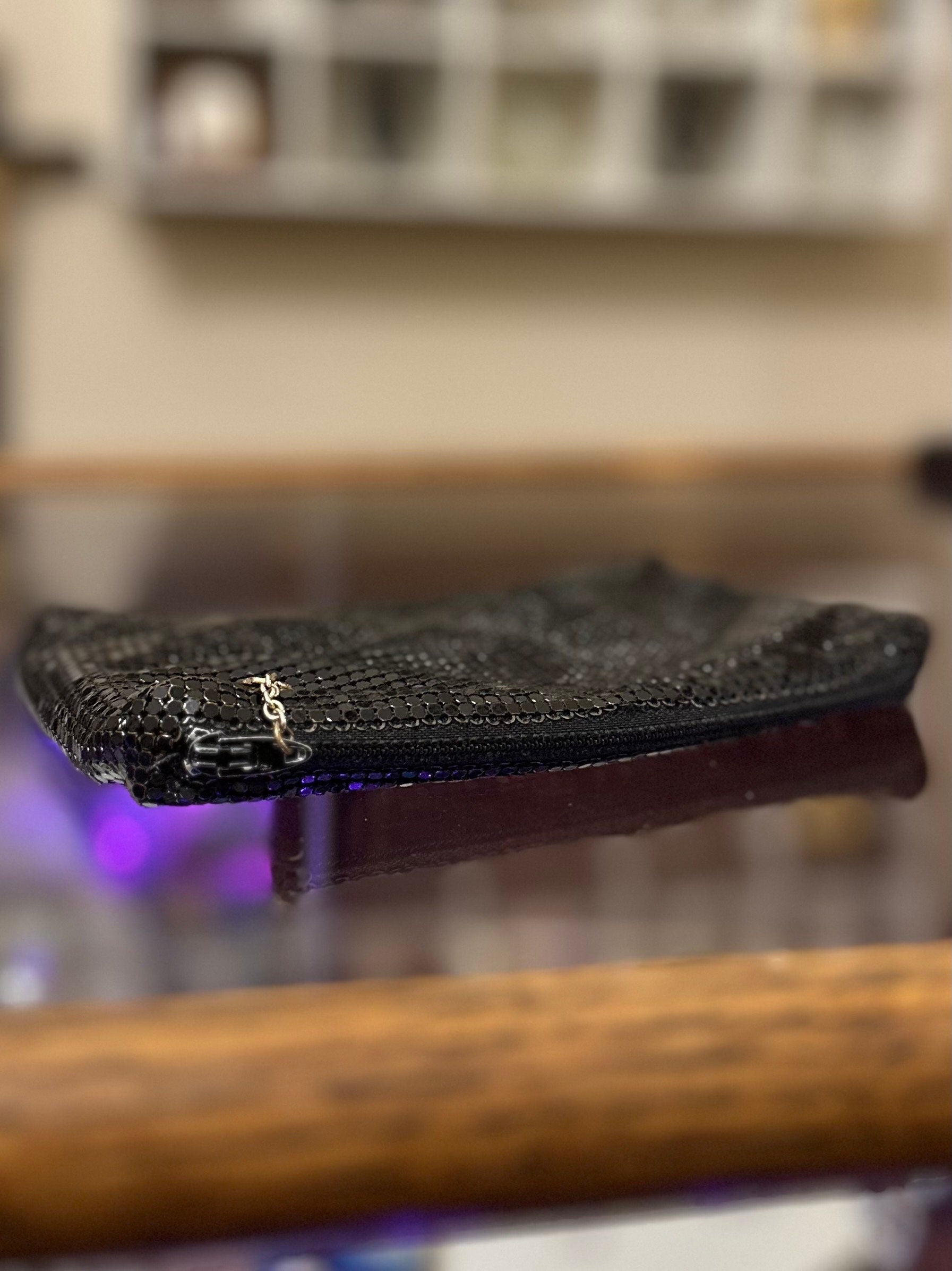1970s Whiting & Davis Black Metal Mesh Zippered Clutch or Pouch