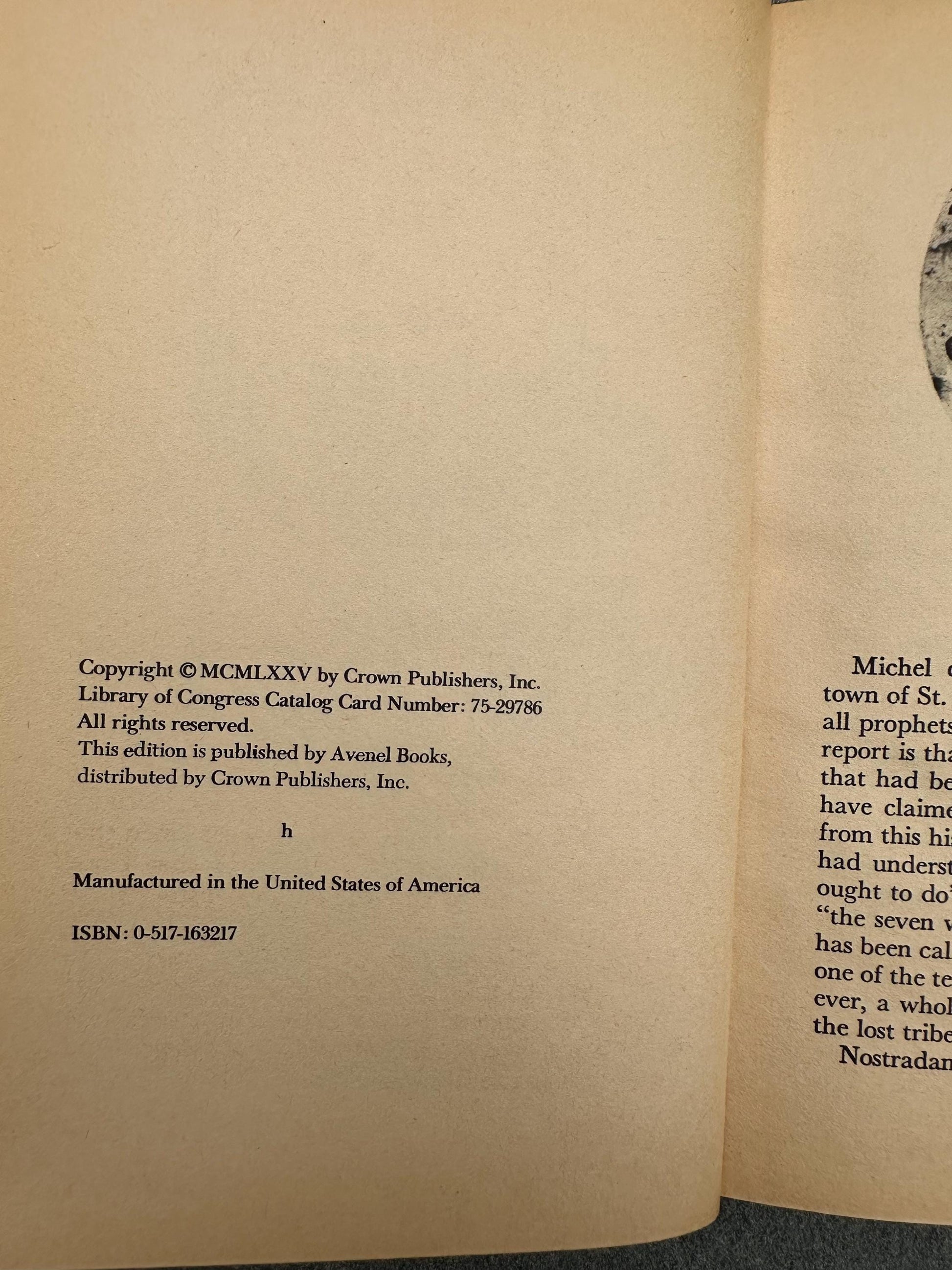 1975 The Prophesies of Nostradamus Including the “Preface to My Son” & the “Epistle to Henry II” Hardcover Illustrated Book