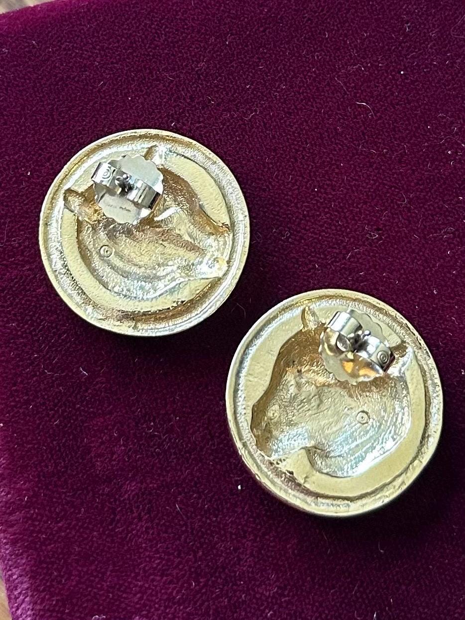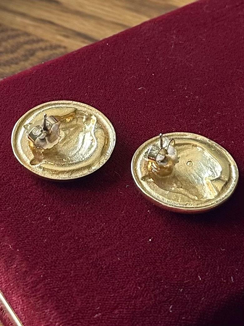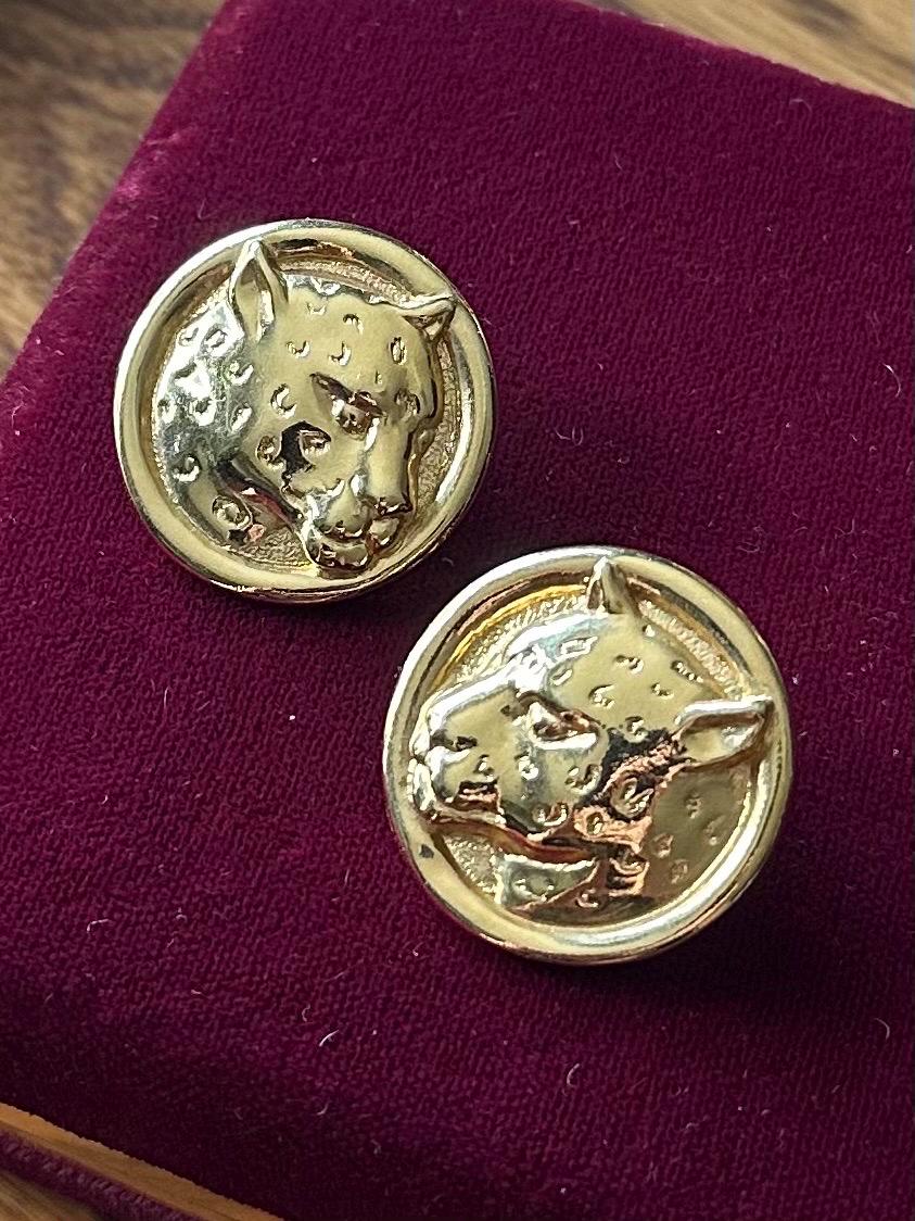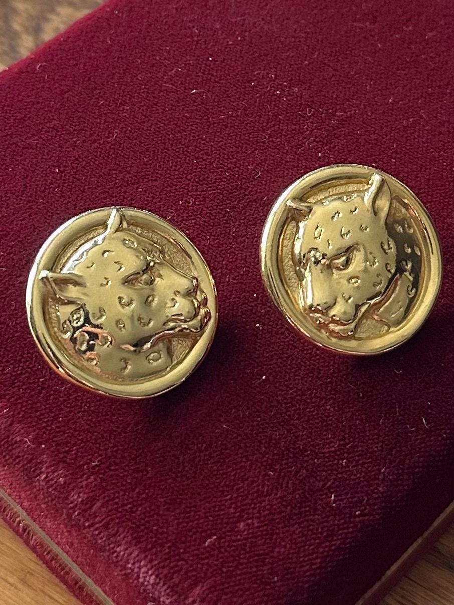 1980s 1990s Gold Tone Large Leopard Cheetah Pierced Statement Earrings