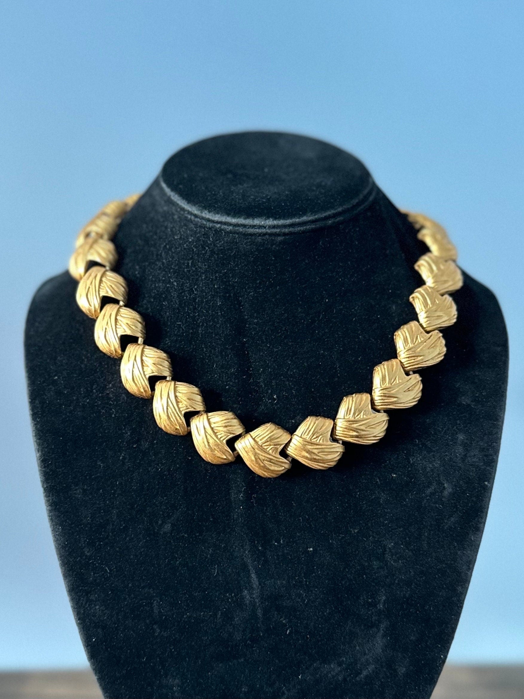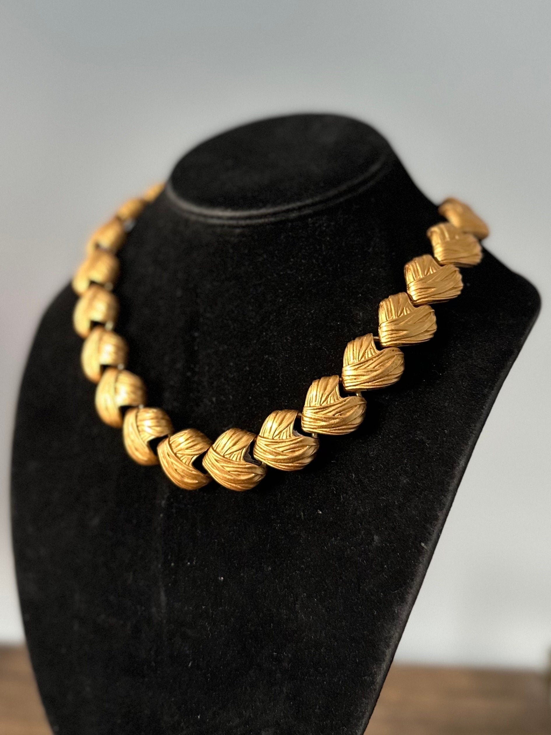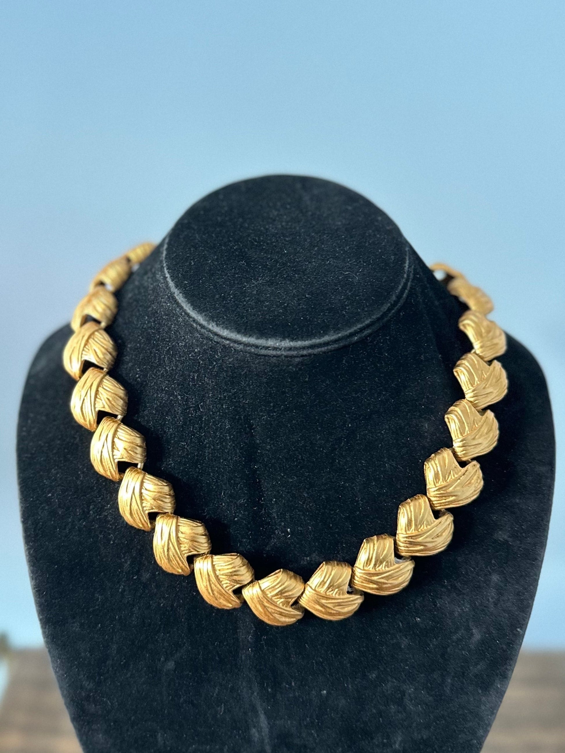 1980s 1990s Signed Lion Anne Klein Chunky Matte Finish Gold Tone Necklace