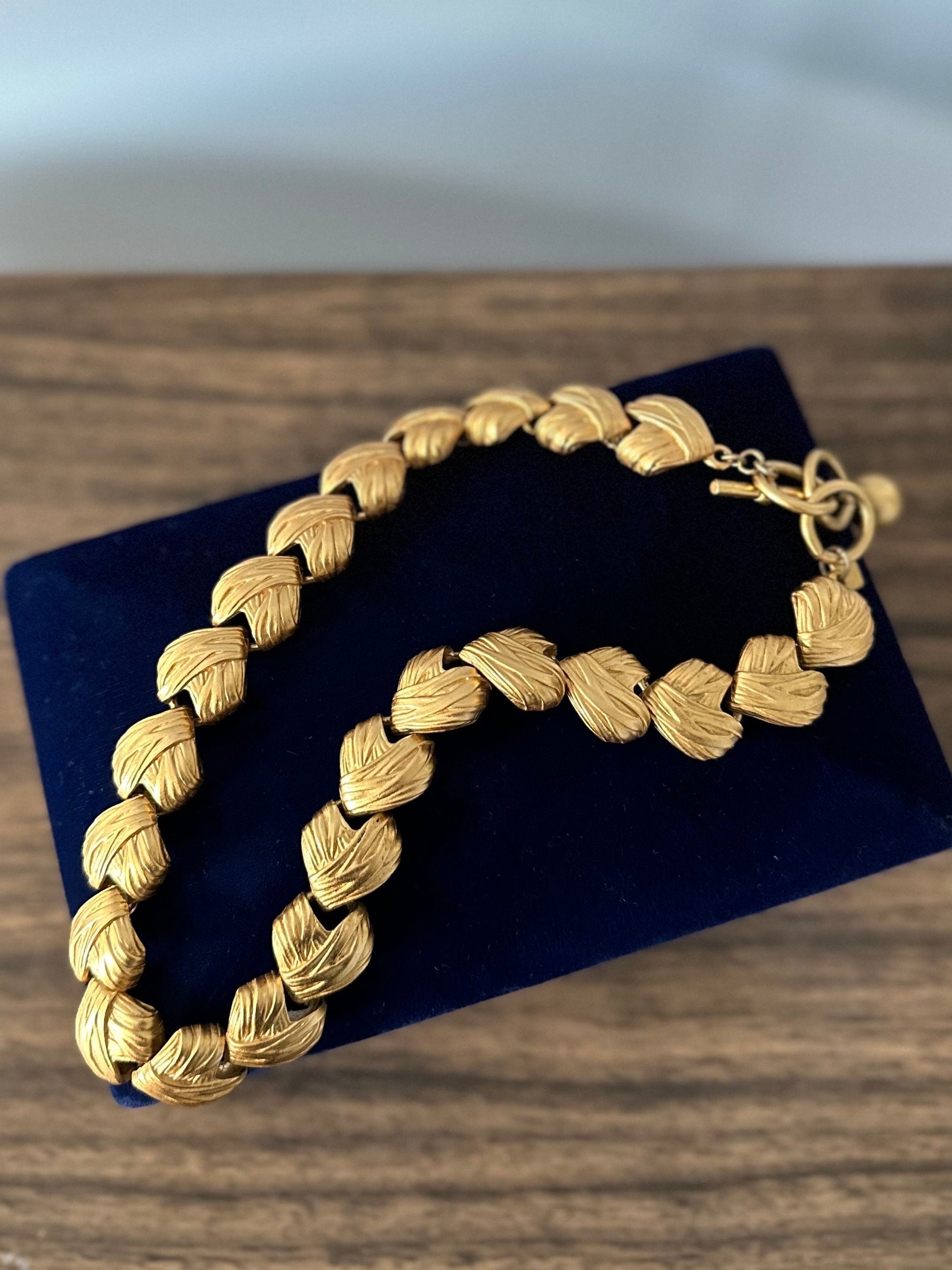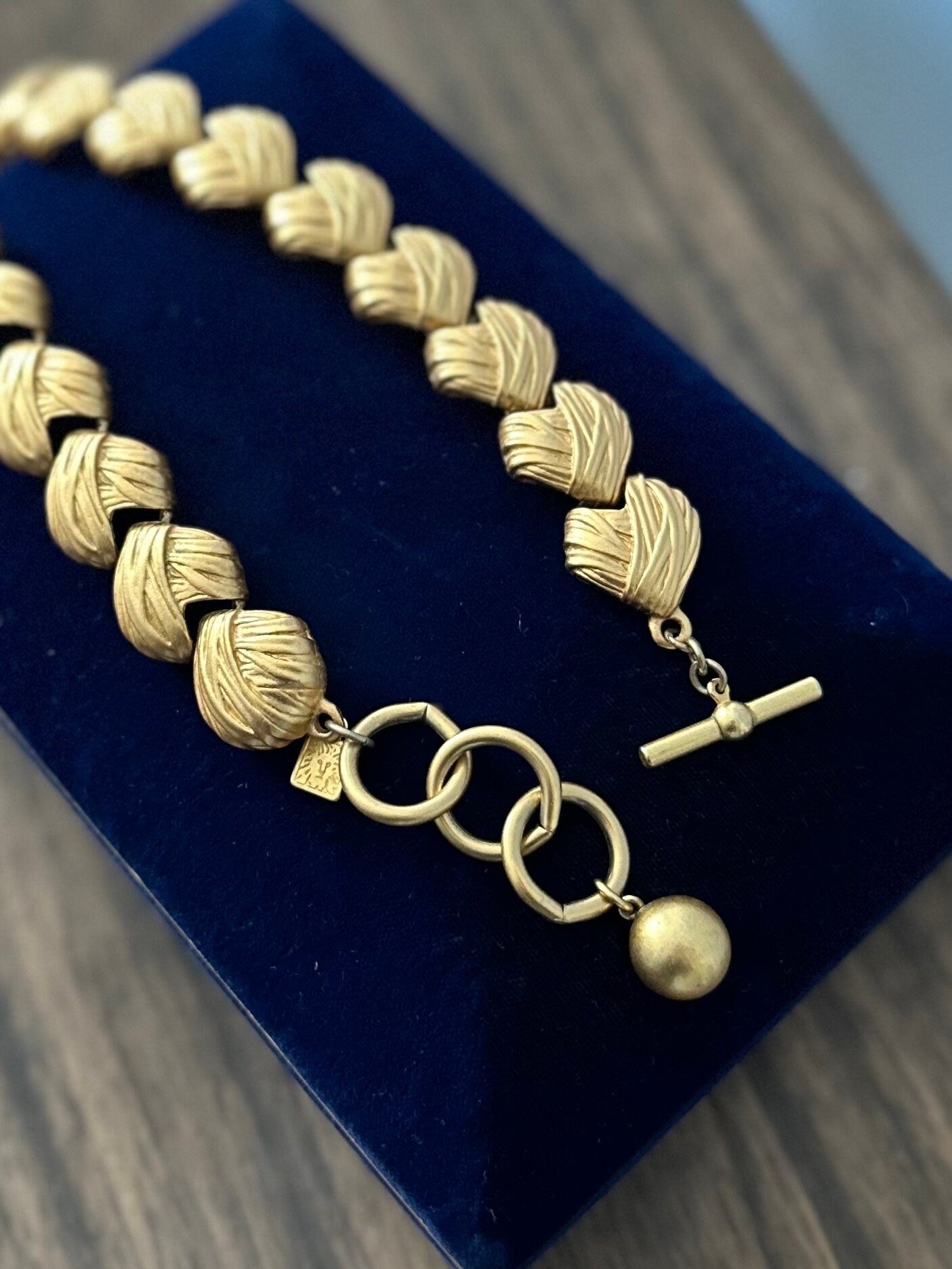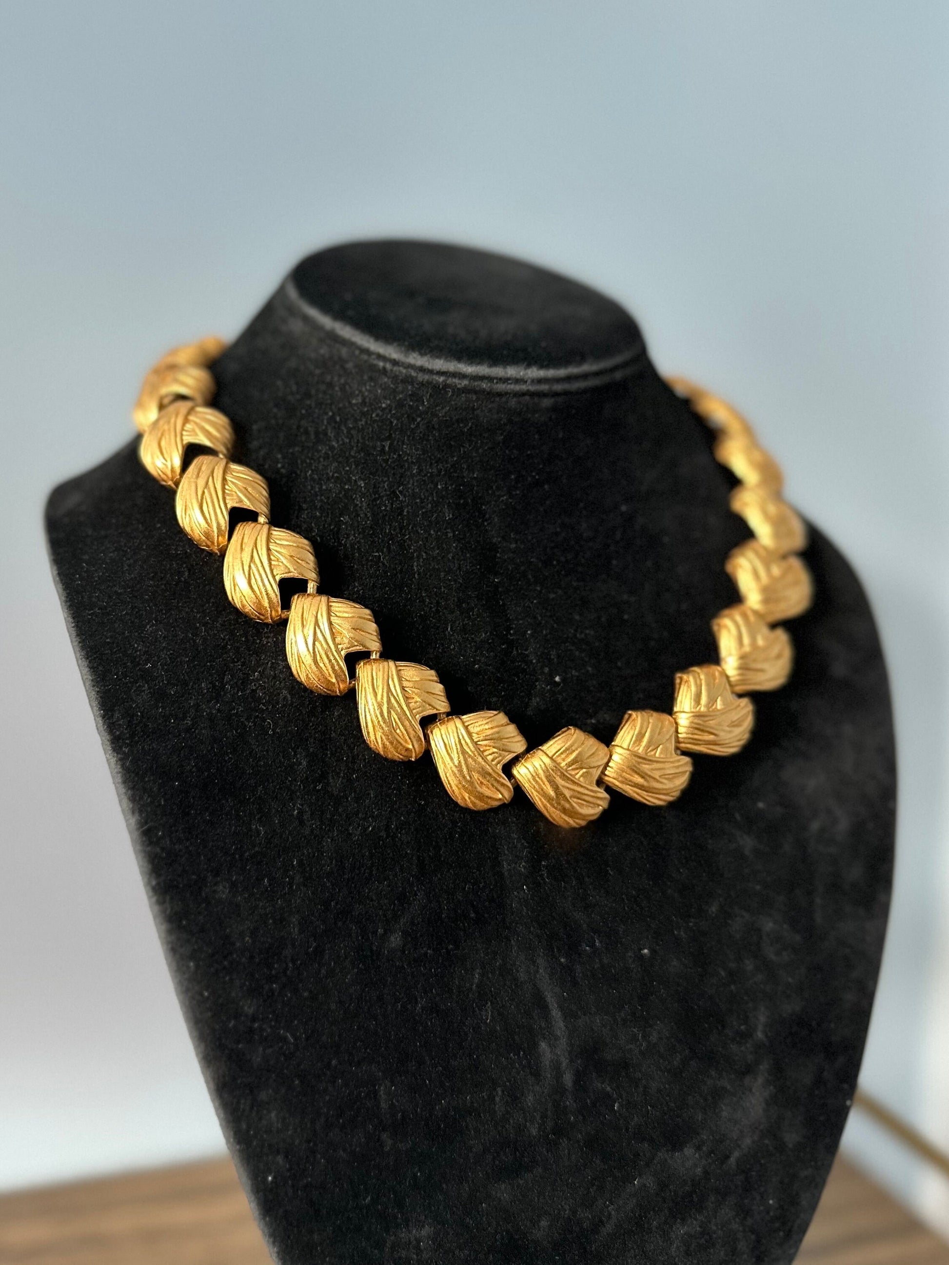 1980s 1990s Signed Lion Anne Klein Chunky Matte Finish Gold Tone Necklace