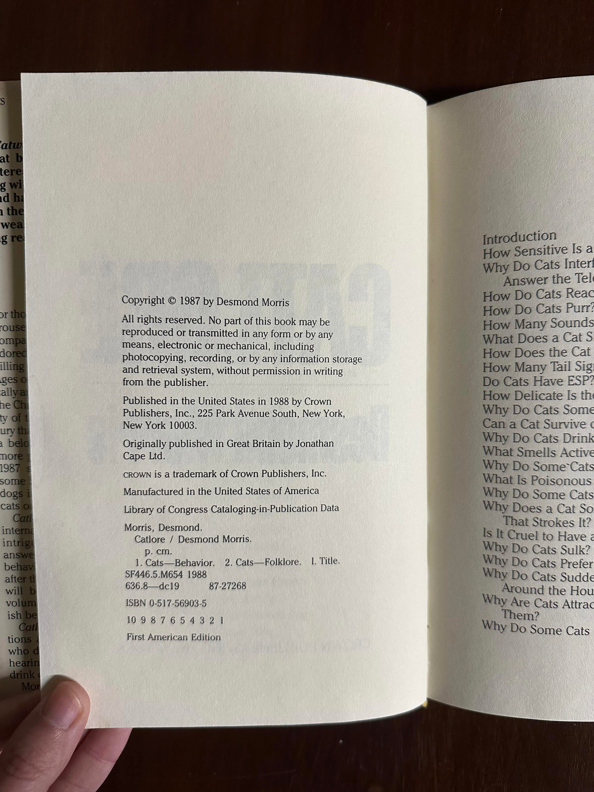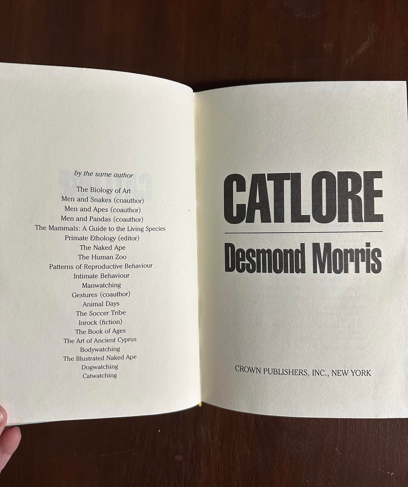 1987 CATLORE by Desmond Morris Hardcover Book with Dust Jacket | First American Edition