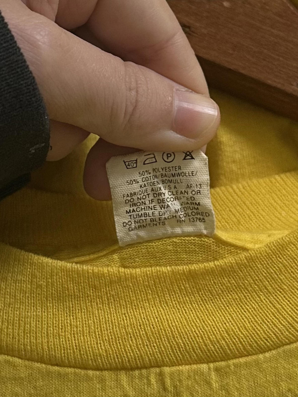 50% Cotton, 50% Polyester. Made in USA. Labeled a size Large.