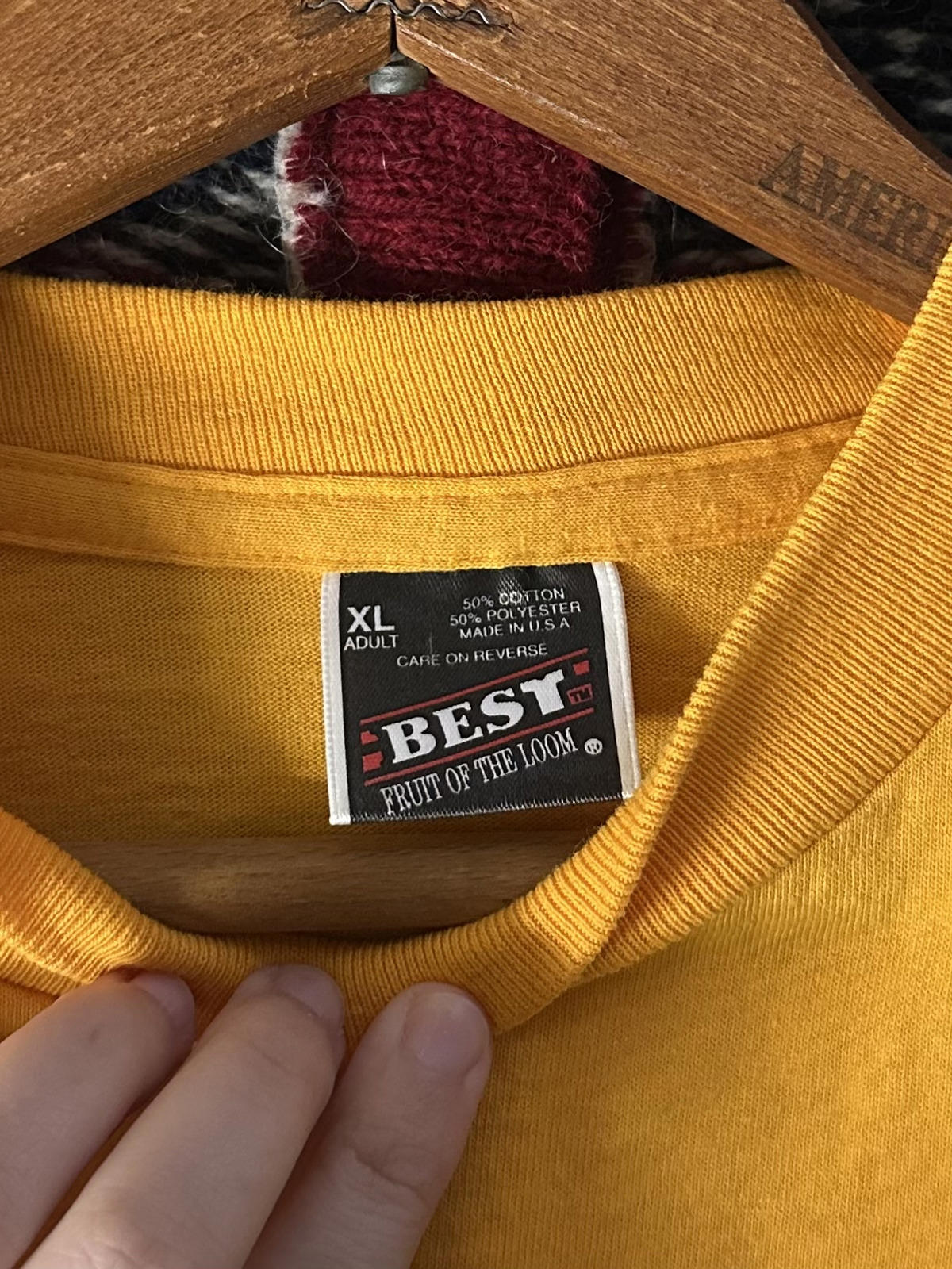 50% Cotton, 50% Polyester. Made in USA. Labeled a size XL.