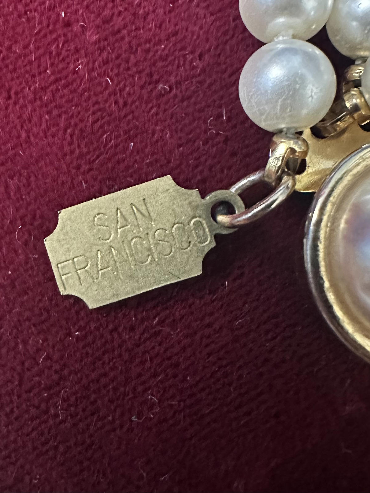 1990s Signed Jest Jewels San Francisco Four Strand Faux Pearl Bracelet