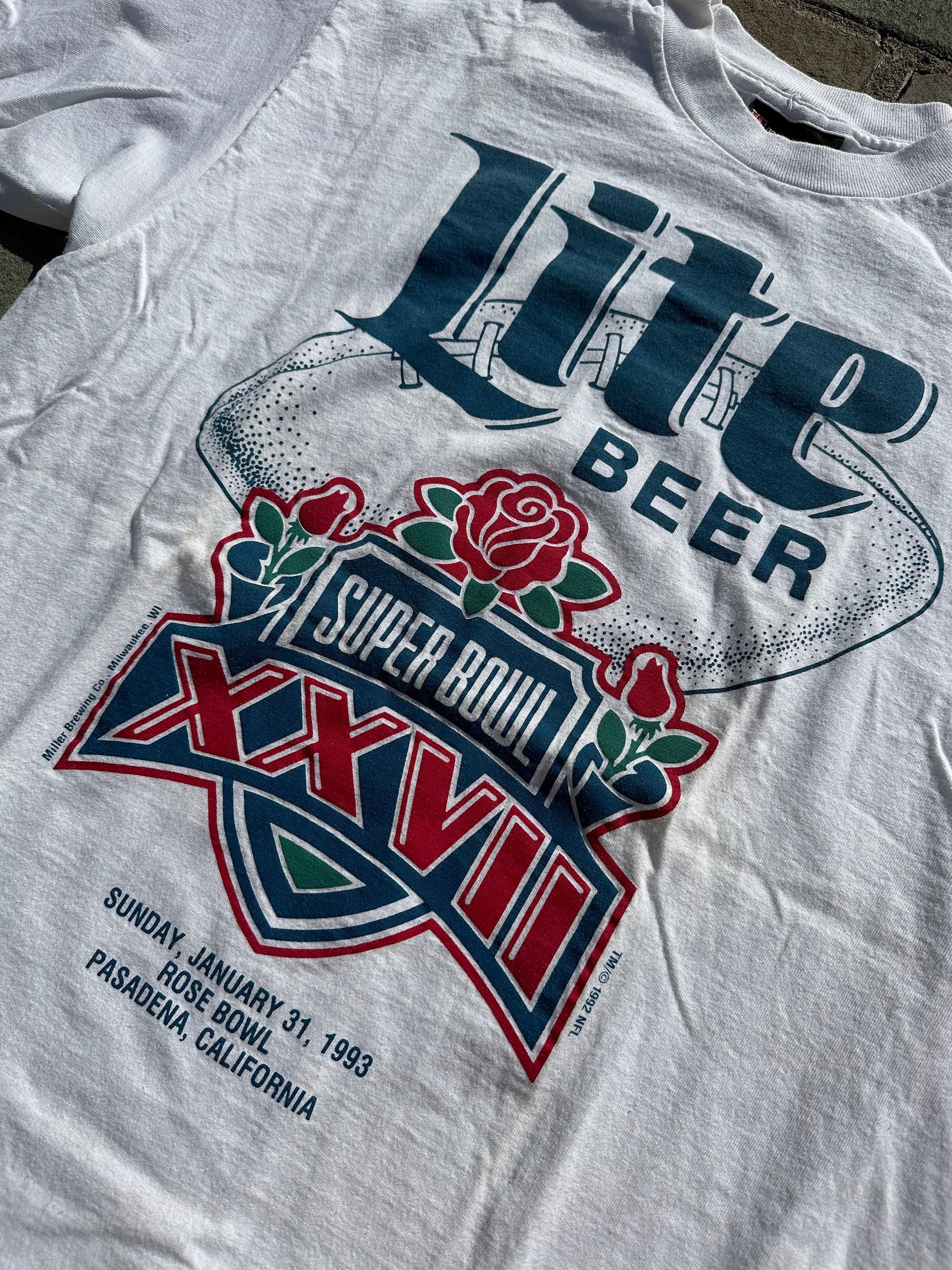 1993 Super Bowl XXVII Rose Bowl Miller Lite Single Stitch Tee