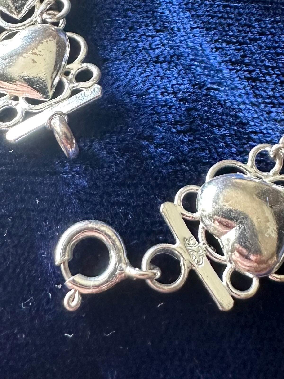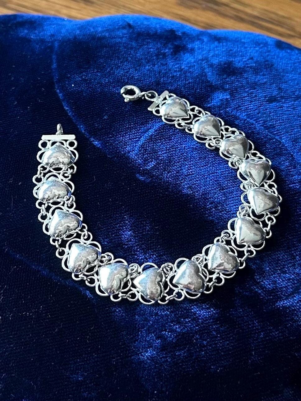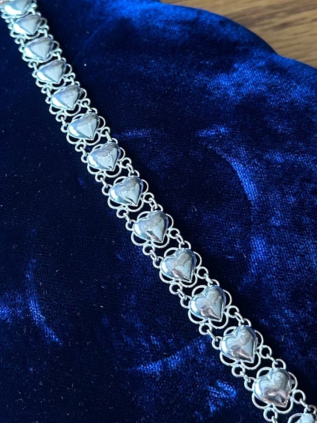 Vintage 925 Sterling Silver Puffy Hearts Open Link Bracelet 7.25"