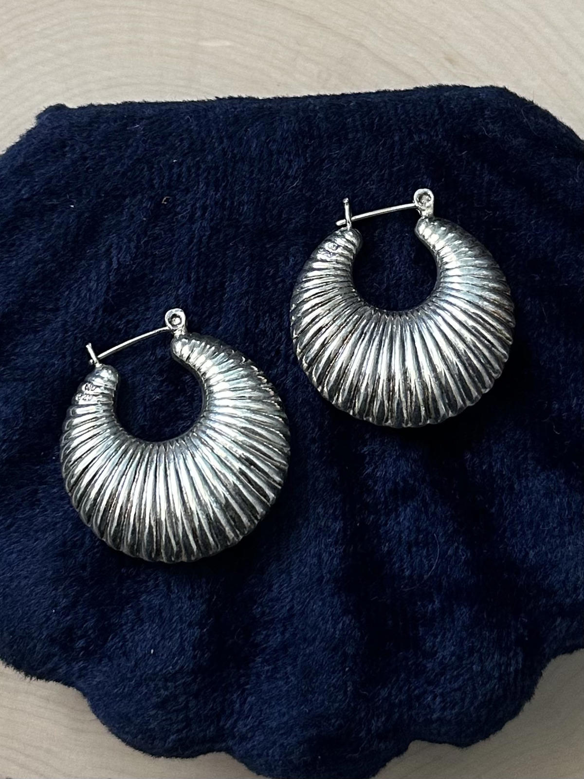 Vintage Chunky Sterling Silver Ribbed Hoop Earrings