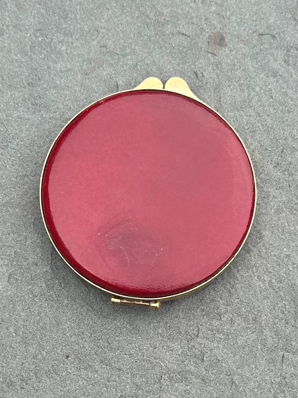 1940s 1950s Florentine Gold Embossed Maroon Italian Genuine Leather Mirror Powder Compact Midcentury | NEVER USED