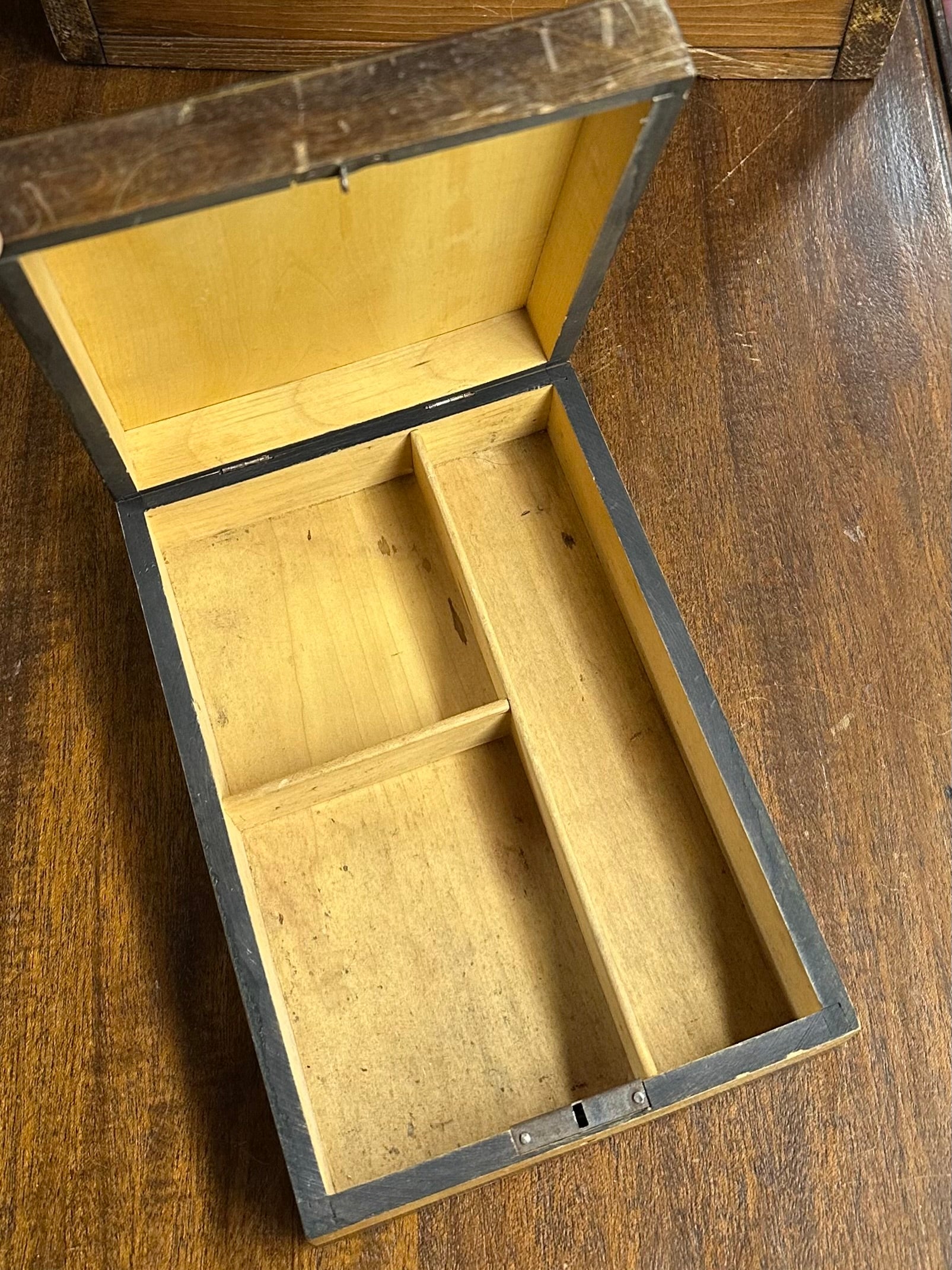 In good condition. Please note there is some minor splitting in the wood in the top right corner, as pictured. It also does not come with a key, but has the capability to be locked, were you to get one made for it. Please see all photos.