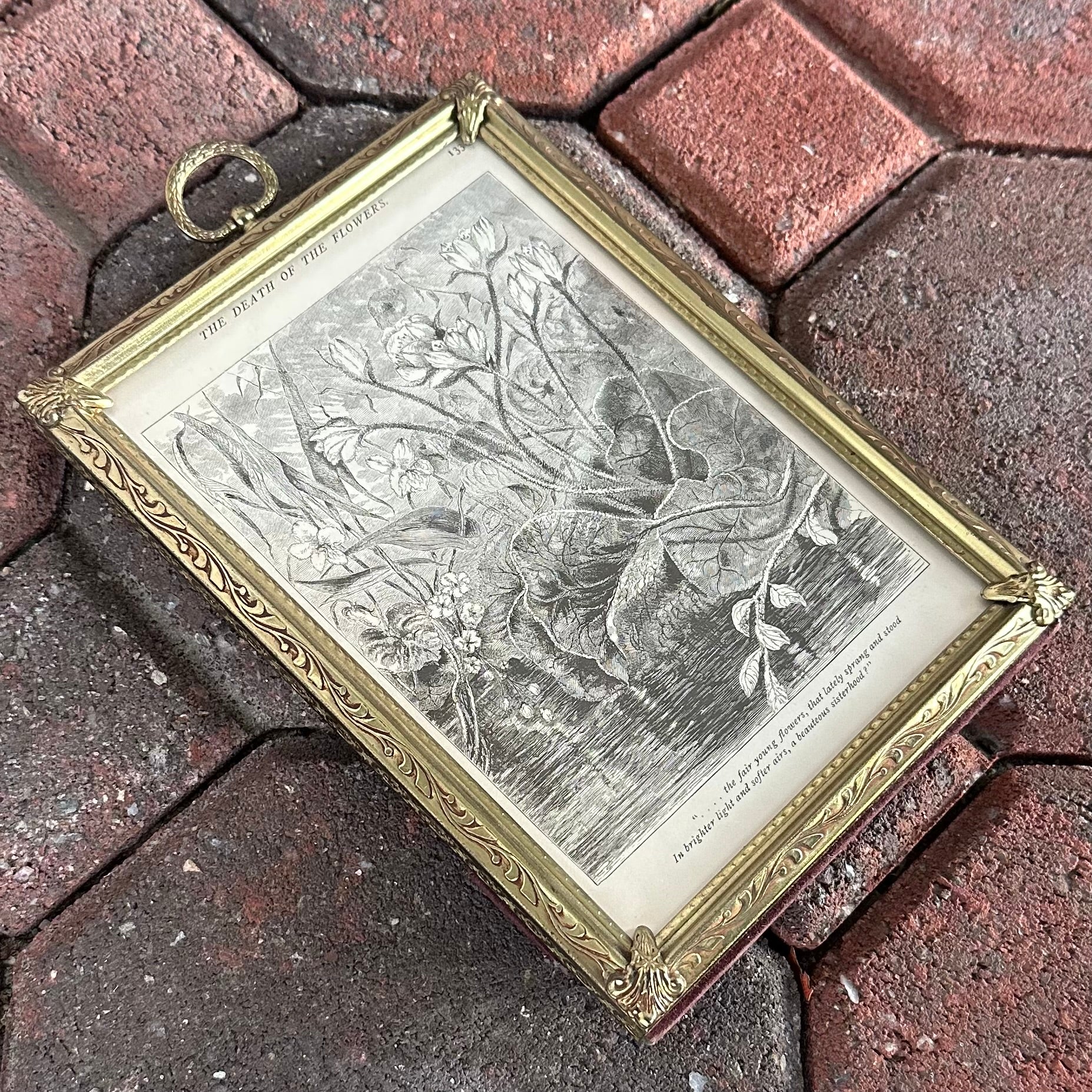 Vintage Framed Engraving "The Death of the Flowers" from 1878 Poetical Works of William Cullen Bryant
